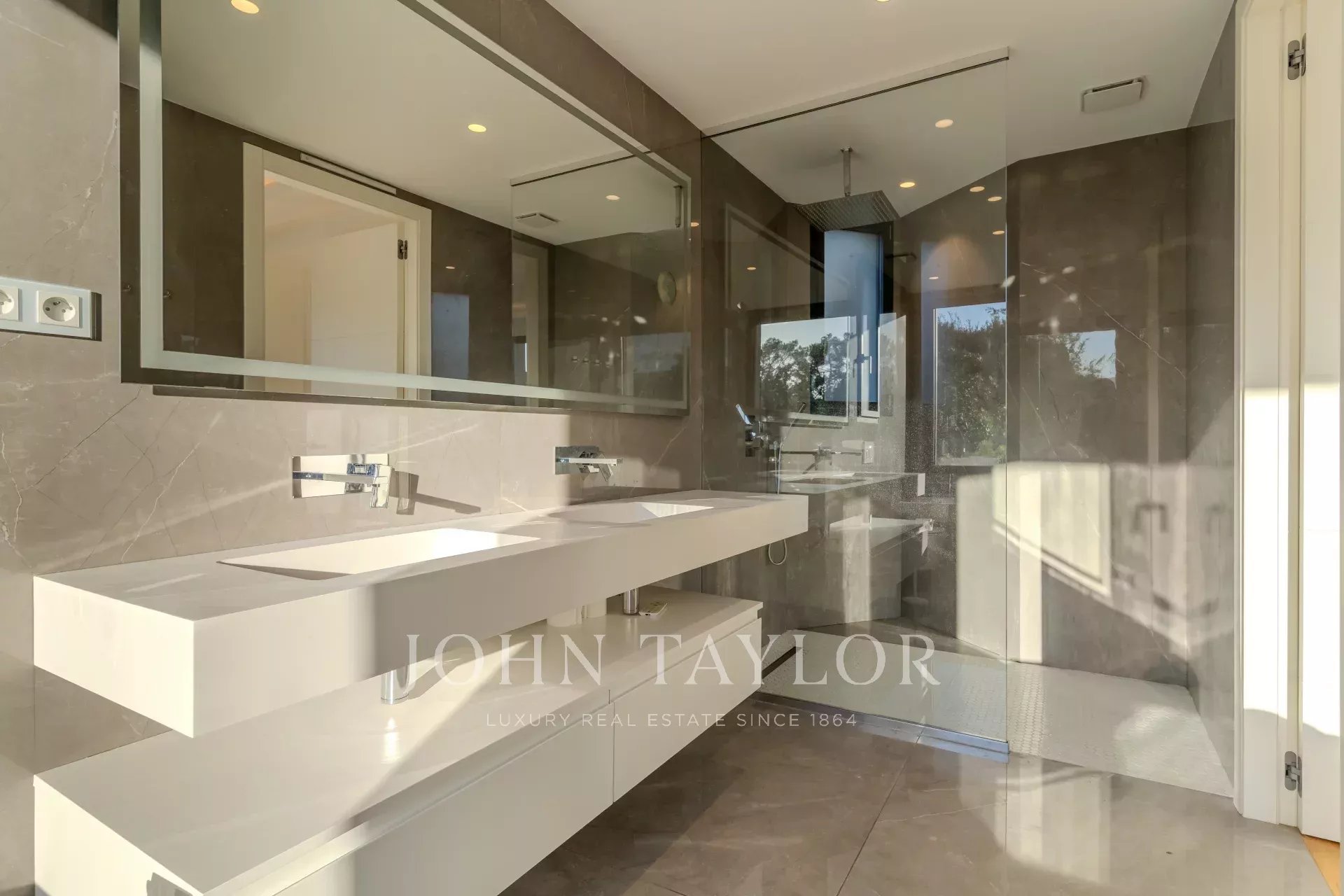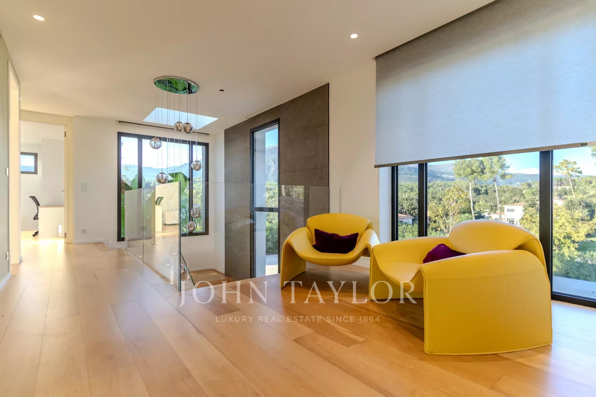 Upstairs are 4 bright and elegant bedrooms, each with its own en-suite shower room and opening onto two large terraces with superb views.