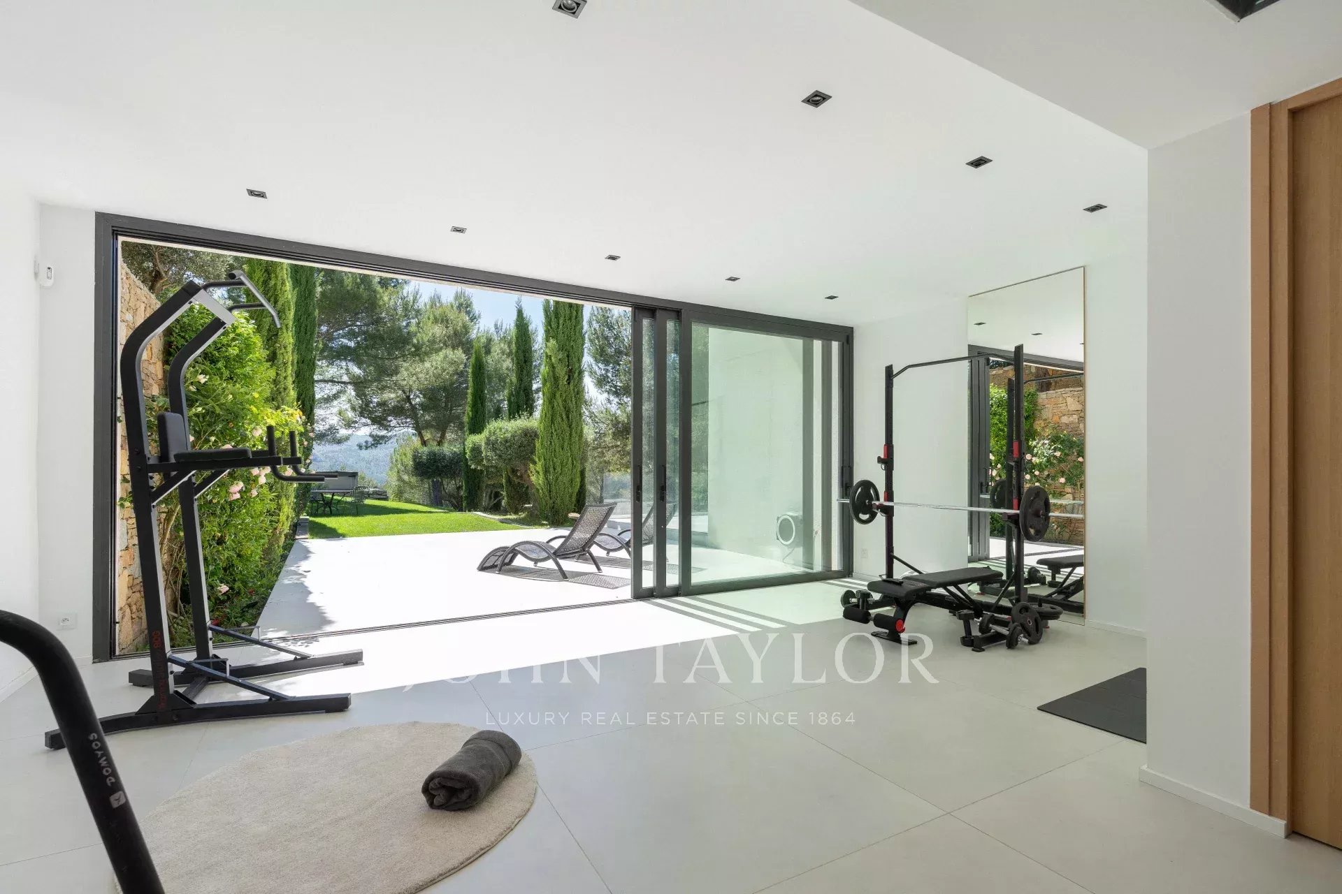Built in 2022, the villa offers 440 sqm of living space on three levels, served by an elevator. Its vast living spaces, bathed in light thanks to its south-facing aspect, open onto a 1.5-hectare landscaped estate with no overlooking views. Six elegant bedrooms, nine toilets, a wine cellar and a 50 sqm gym make up this exclusive property, fully furnished with absolute attention to detail.