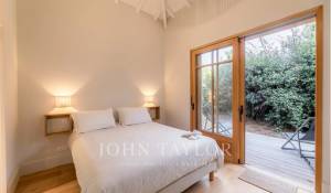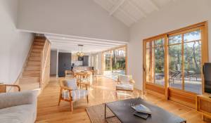 The bright and airy living area opens onto a beautiful wooded garden, immersing guests in a preserved natural setting. The outdoor spaces are thoughtfully designed for socializing: lounging by the heated pool, lively games of pétanque, or memorable dinners prepared in the summer kitchen.