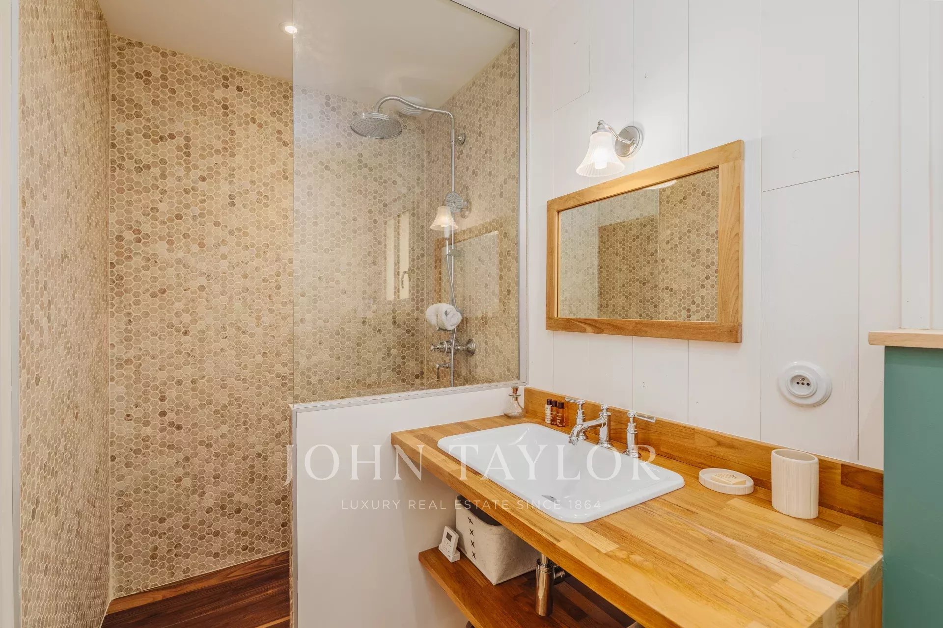 From the entrance, Villa Azur exudes charm with its refined atmosphere and elegant decor, combining comfort and luxury. It offers three spacious suites, each with its own private bathroom and toilet, ensuring absolute comfort. Two additional bedrooms share a contemporary, well-equipped bathroom, ideal for family and guests.