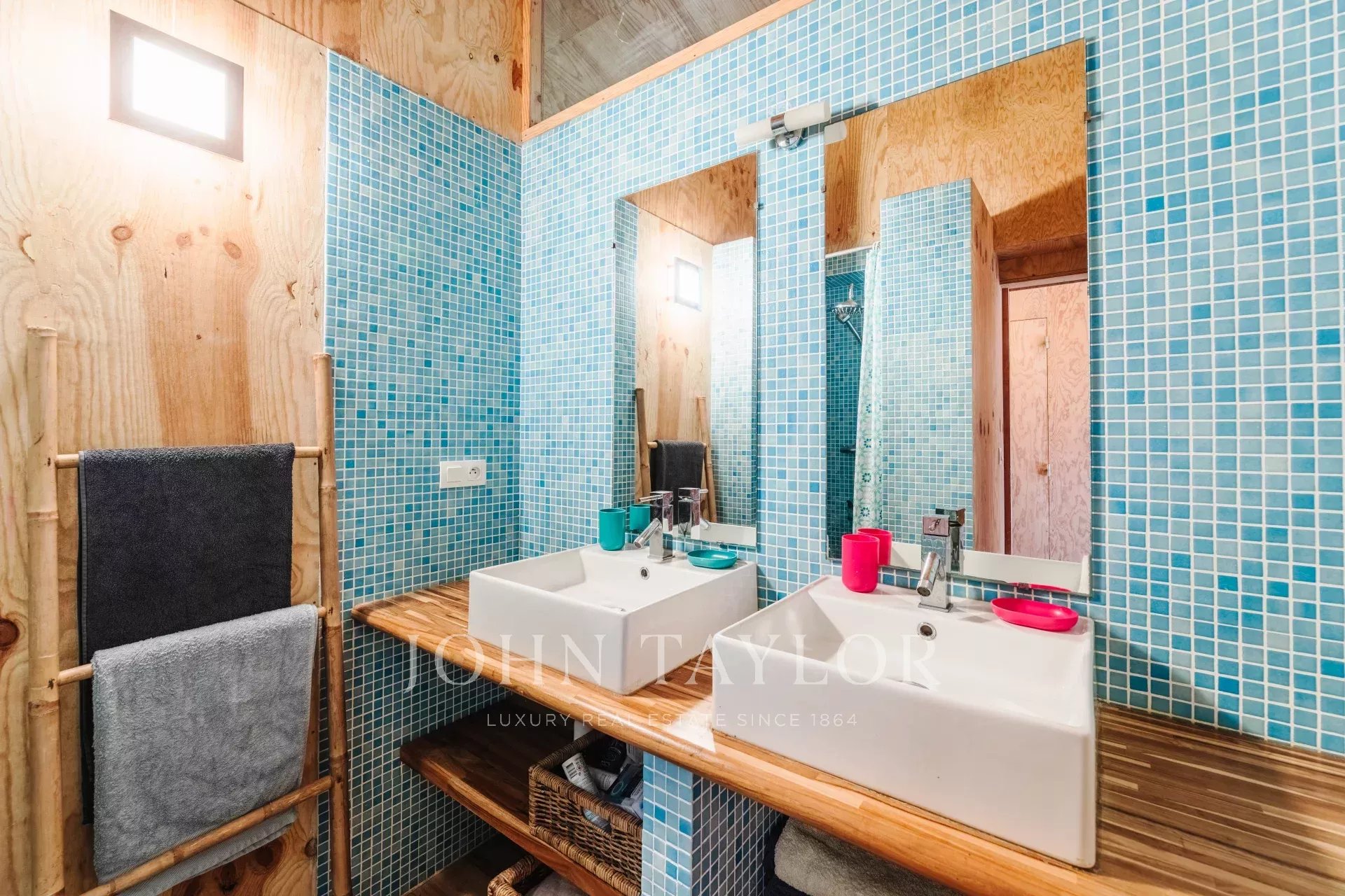 This charming villa, styled like a surf house and perched on stilts, invites you to escape the hustle and bustle of everyday life. Its sun-drenched terraces and refreshing pool promise unforgettable moments of relaxation, where time seems to stand still.