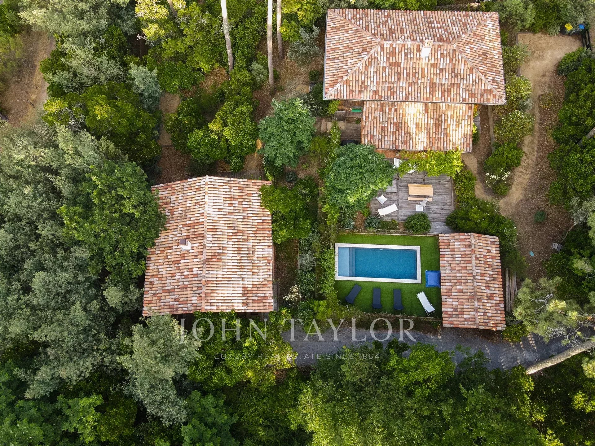 Set on a 1,600 m² plot, you will find a 7x3 m swimming pool, outdoor spaces with deckchairs, dining tables, garden lounges, a plancha, and a pétanque court. Parking is available in the garden area at the entrance to the property.