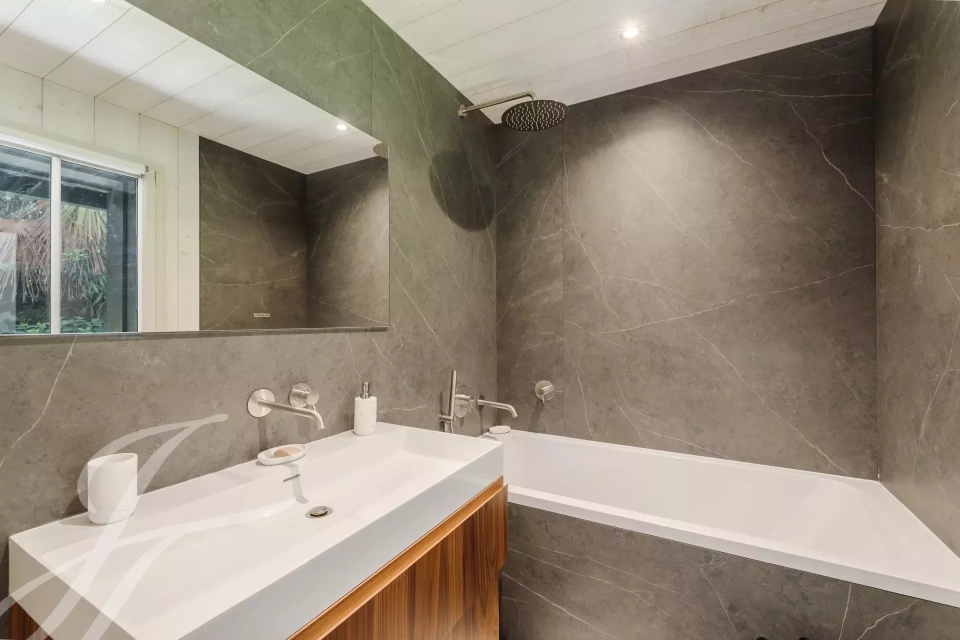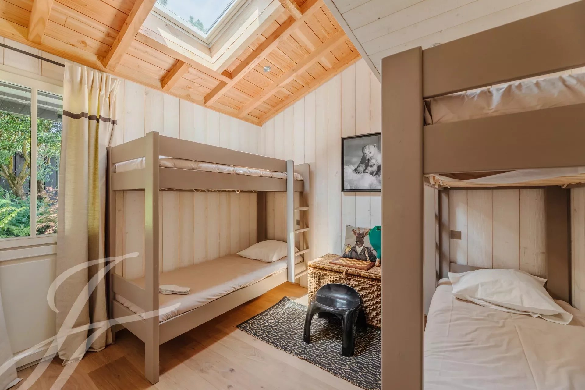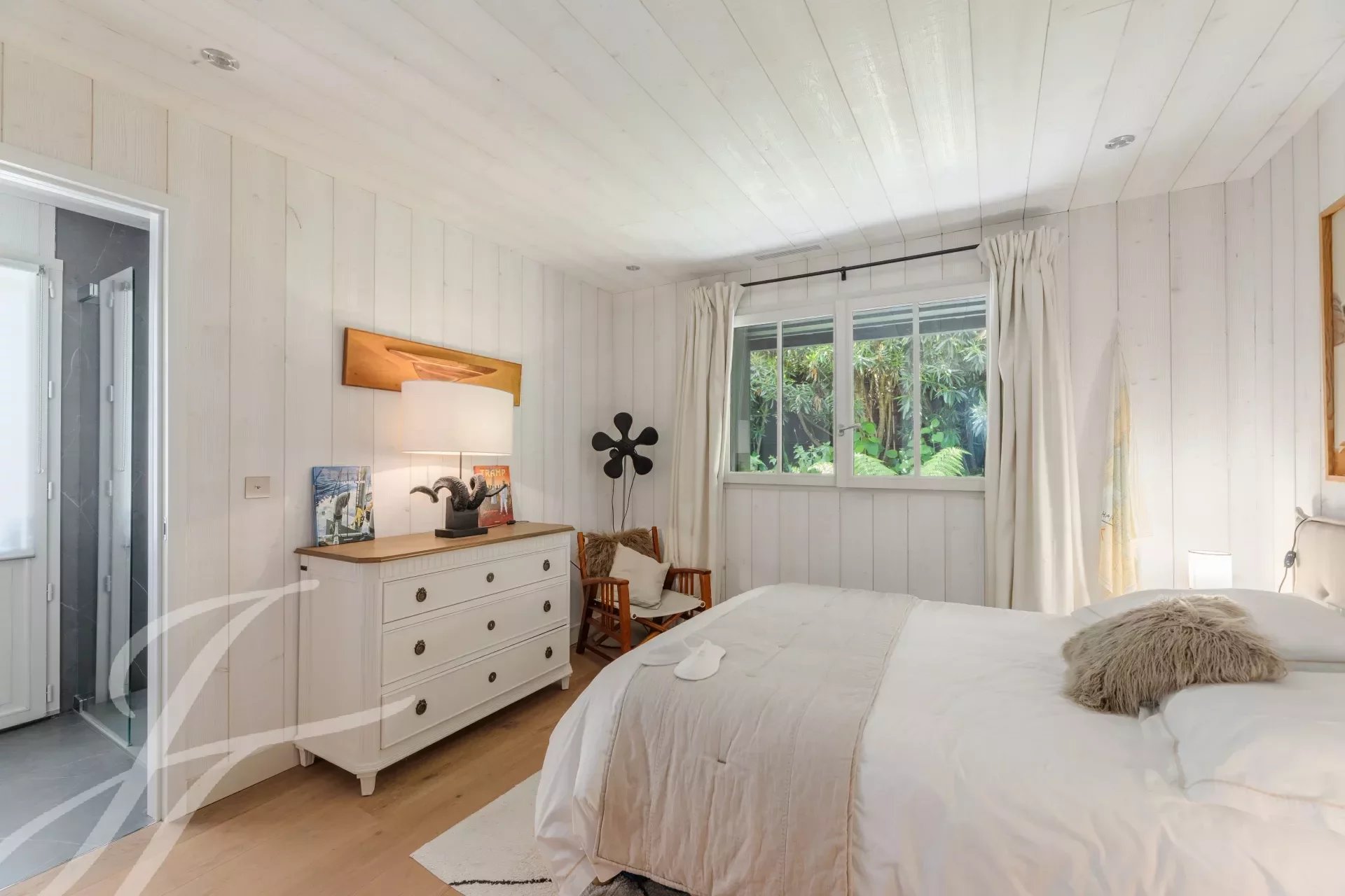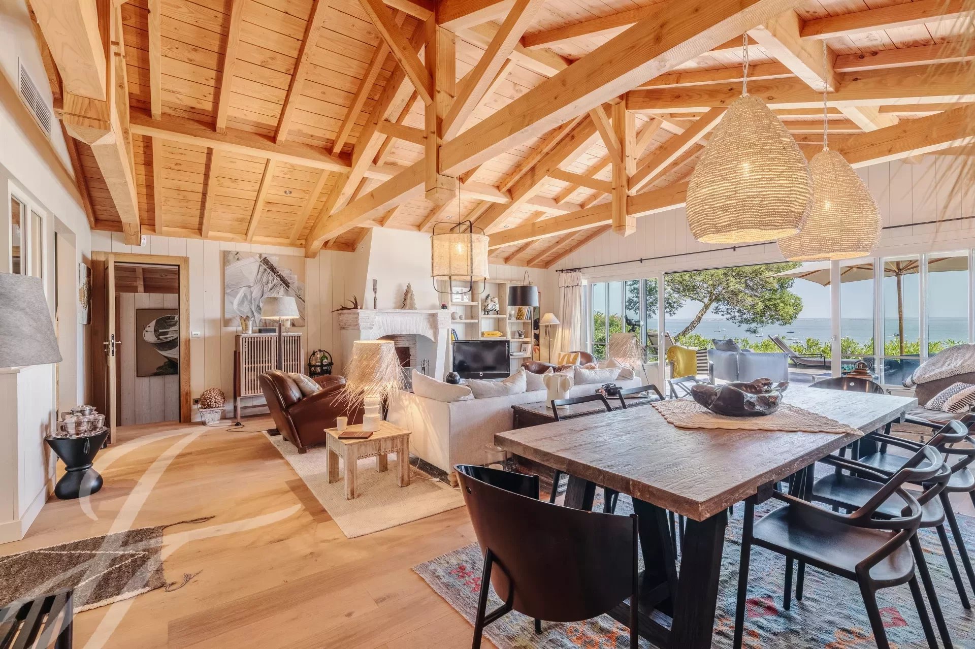 Relax in complete privacy, hidden from view in this lush setting. A spacious exotic wood terrace awaits you, perfect for enjoying meals, aperitifs, or an afternoon by the heated pool, all while never losing sight of the shimmering waters of the basin.