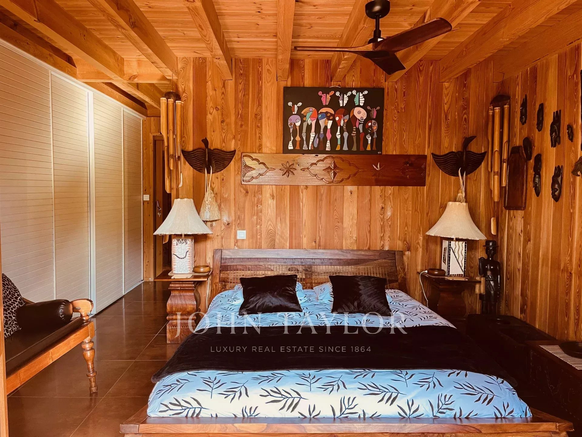 Here, every detail tells a story: dark woods, objects from afar, muted ambiances, African influences… A place full of soul and exoticism, for travelers who seek to be transported the moment they arrive.