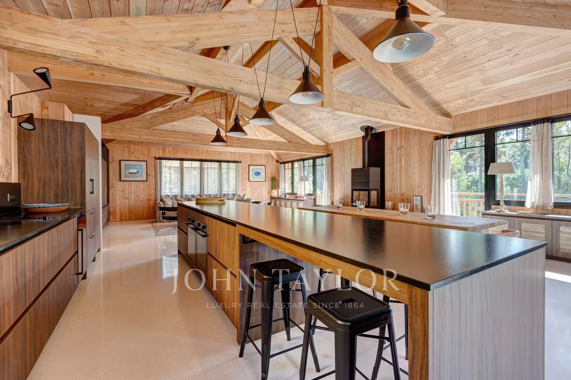The magnificent 80 m² living area is perfect for unforgettable moments of conviviality, whether enjoying family dinners or gatherings with friends. The fully equipped open kitchen serves as the ideal hub for your stays. The living space seamlessly extends onto the terrace, offering a multifunctional, comfortable area by the heated pool, perfect for relaxing at any time of the day.