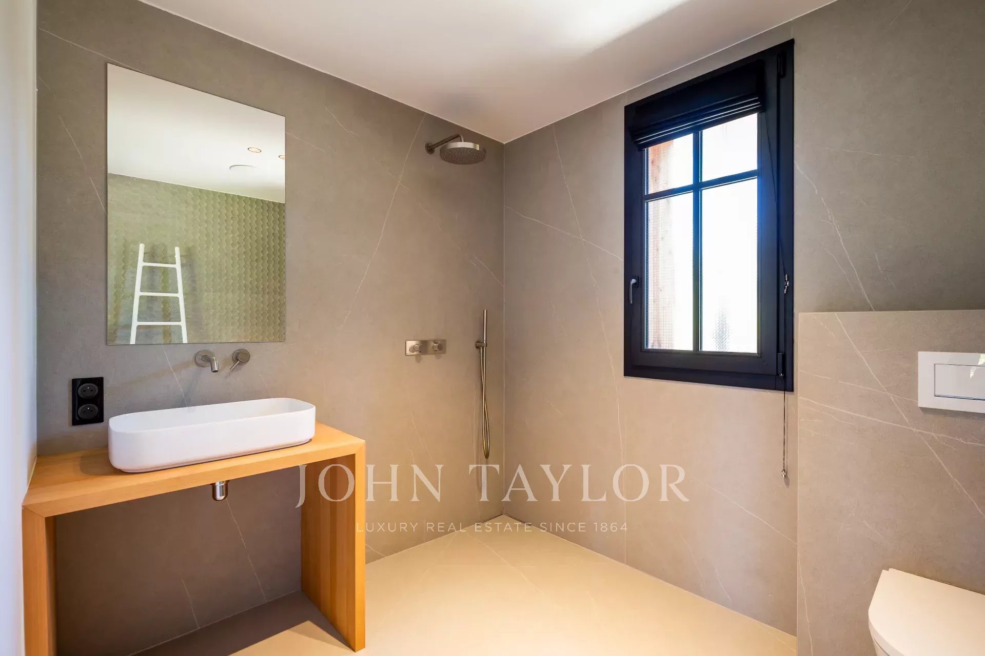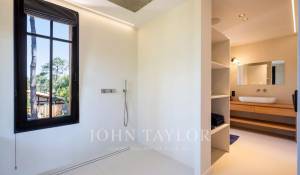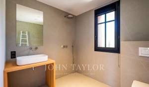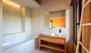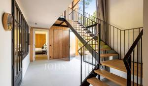 The refined and elegant decor highlights generous spaces and a layout designed for comfort. On the ground floor of the main house, the spacious living area opens onto the garden. Here you’ll find a fully equipped Bulthaup kitchen, a dining room, and a cozy living room with a fireplace. This level also includes a suite accessible to people with reduced mobility, a laundry room, and separate toilets. Upstairs, there is an office area and four suites.