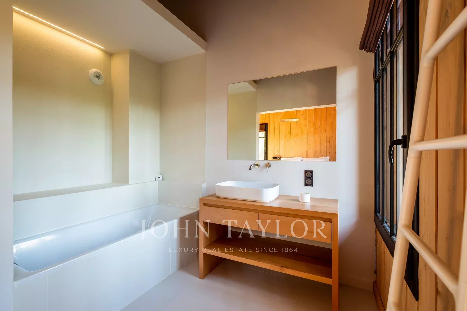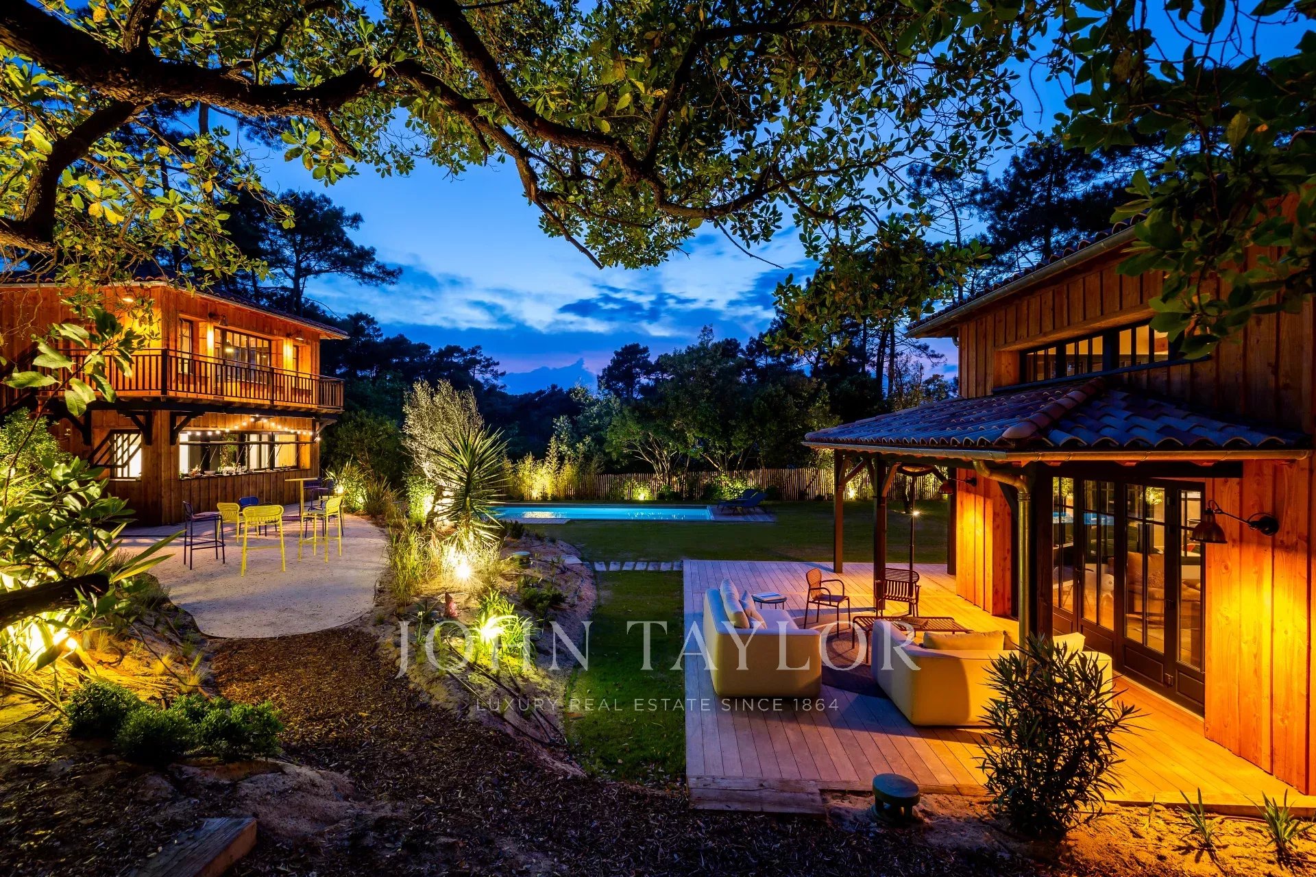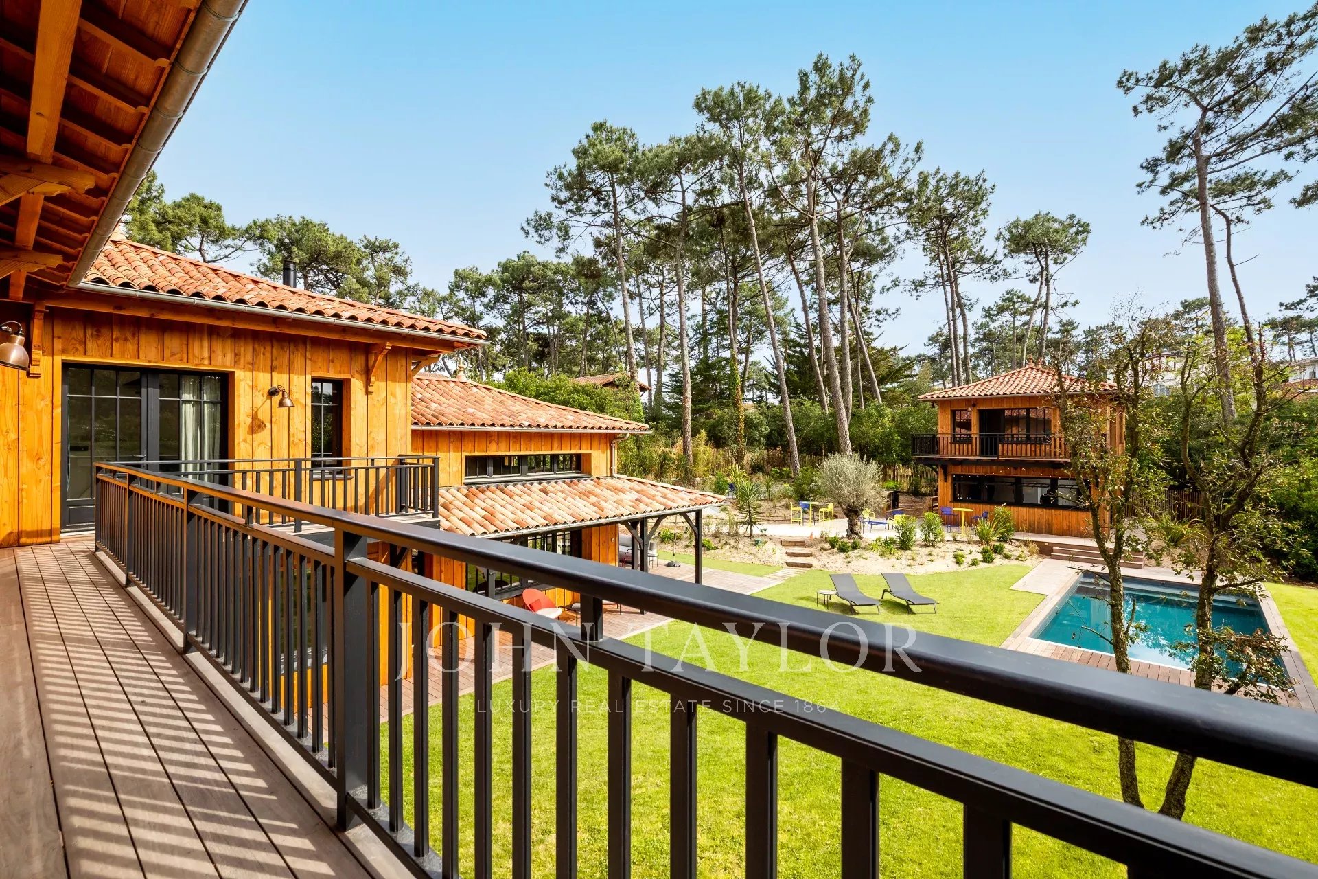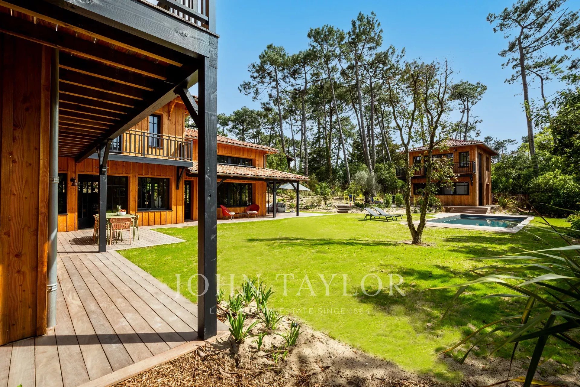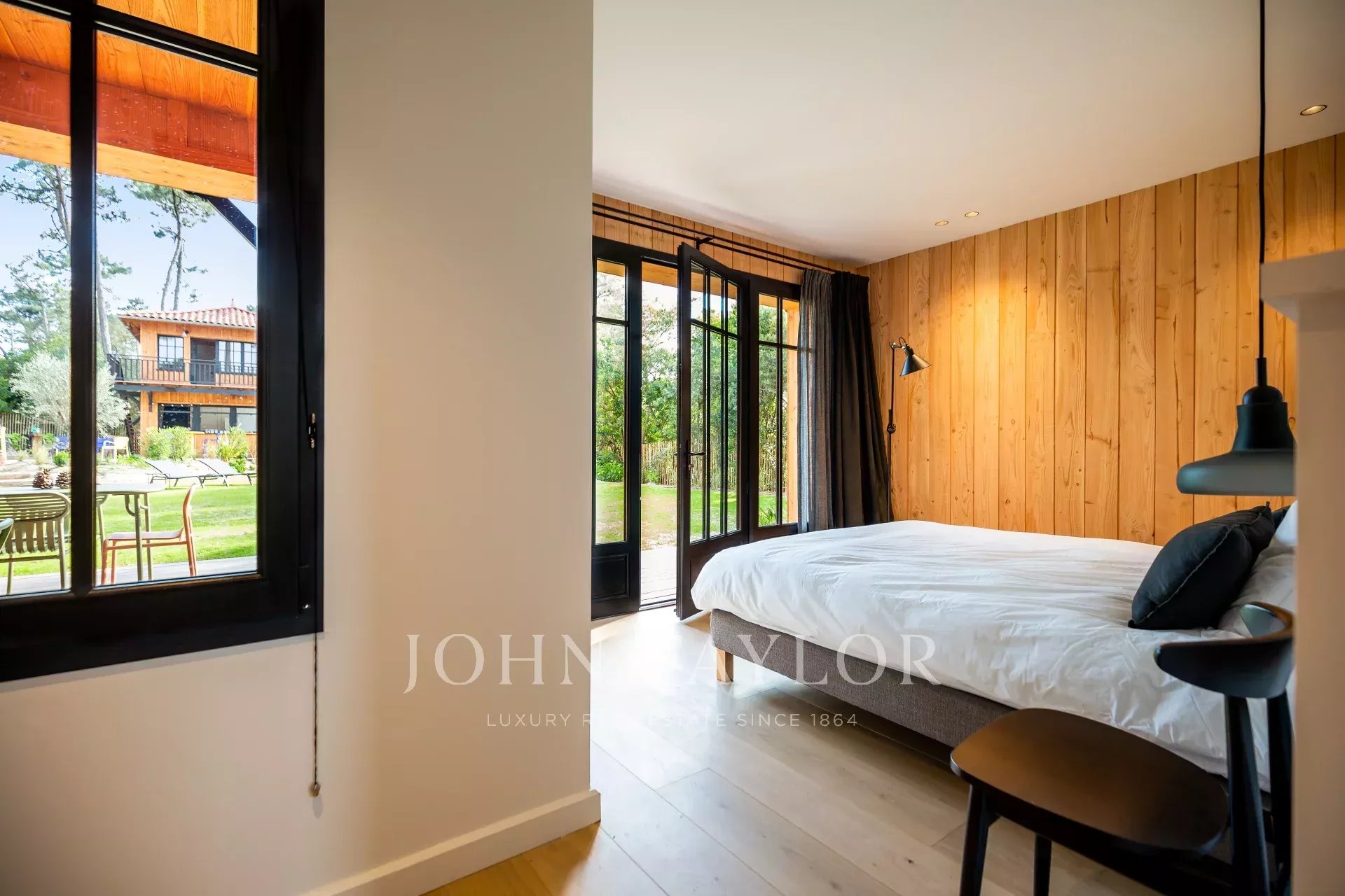 This wooden architectural villa combines natural charm and contemporary refinement to offer a unique experience. Designed to accommodate up to 14 guests, it spans a main house and an annex, all surrounded by a vast landscaped garden.