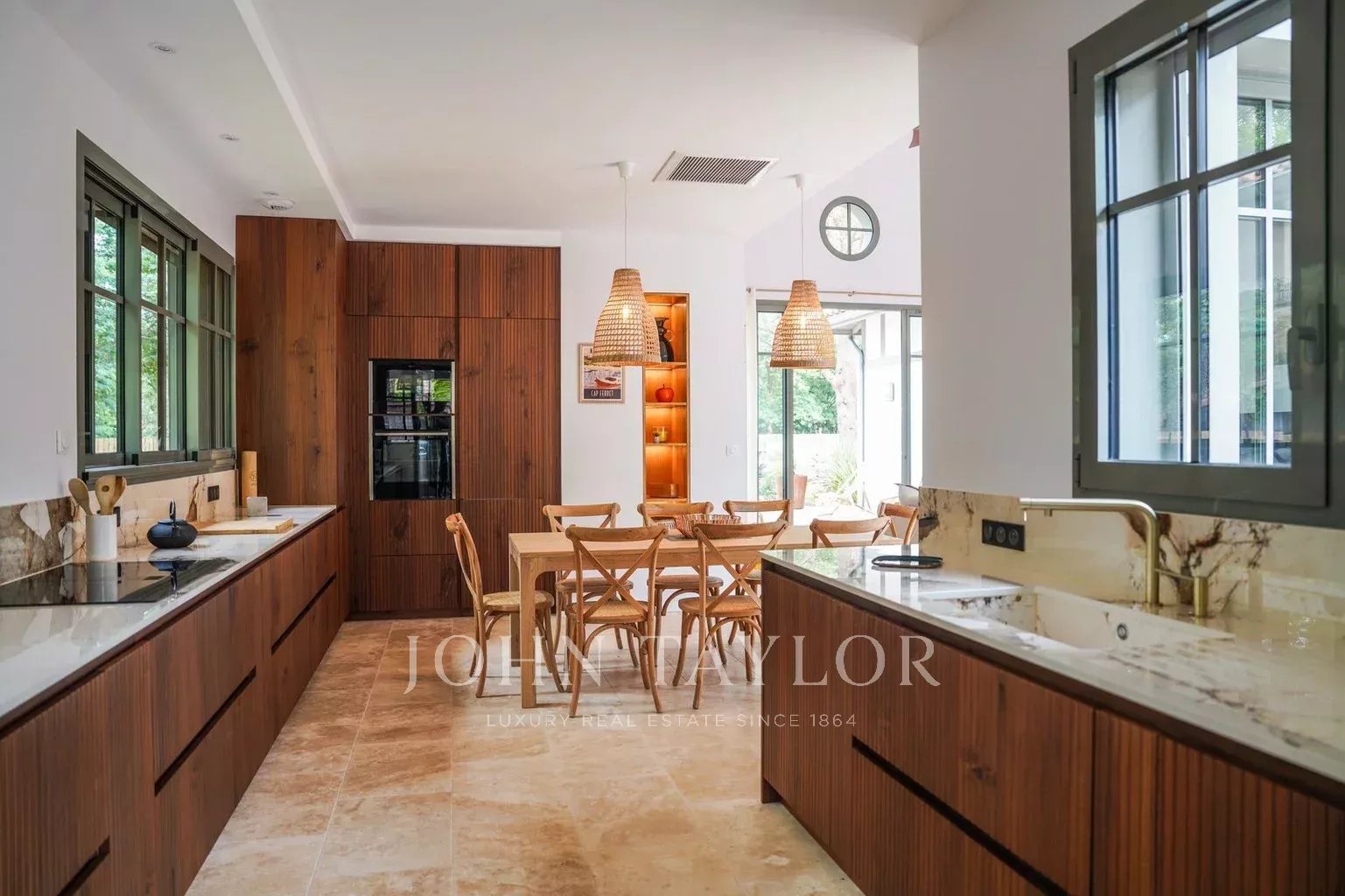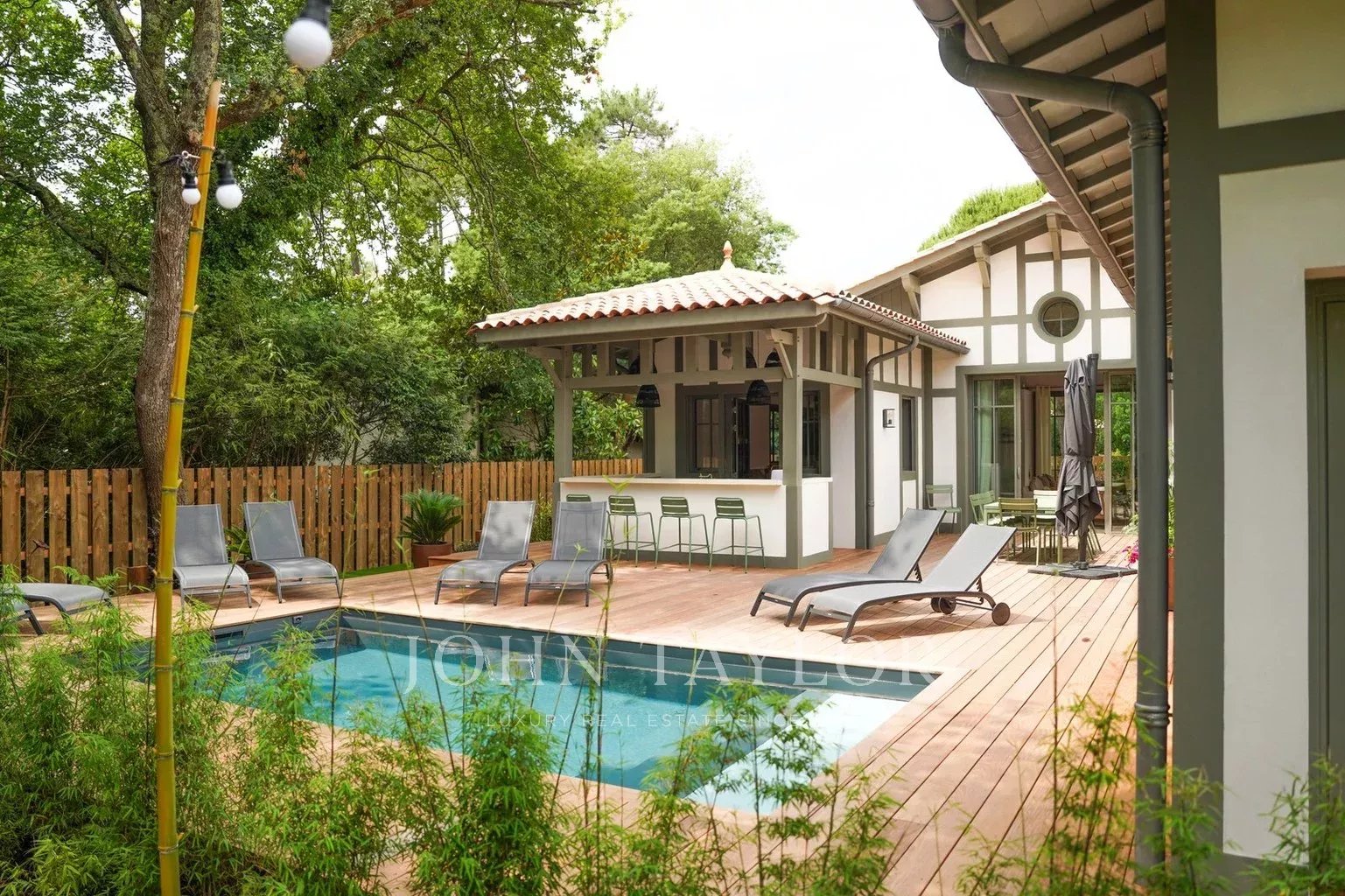 Two east- and west-facing terraces let you soak up the sun at any time of day. Outside, you'll find a 6 x 2.5 m heated swimming pool secured by an immersed roller shutter, a summer kitchen with plancha and sink, an outdoor toilet and a pétanque court lit by guinguette lights. FERMOB garden furniture includes a large table for 10 to 12 people, sun loungers and garden furniture.