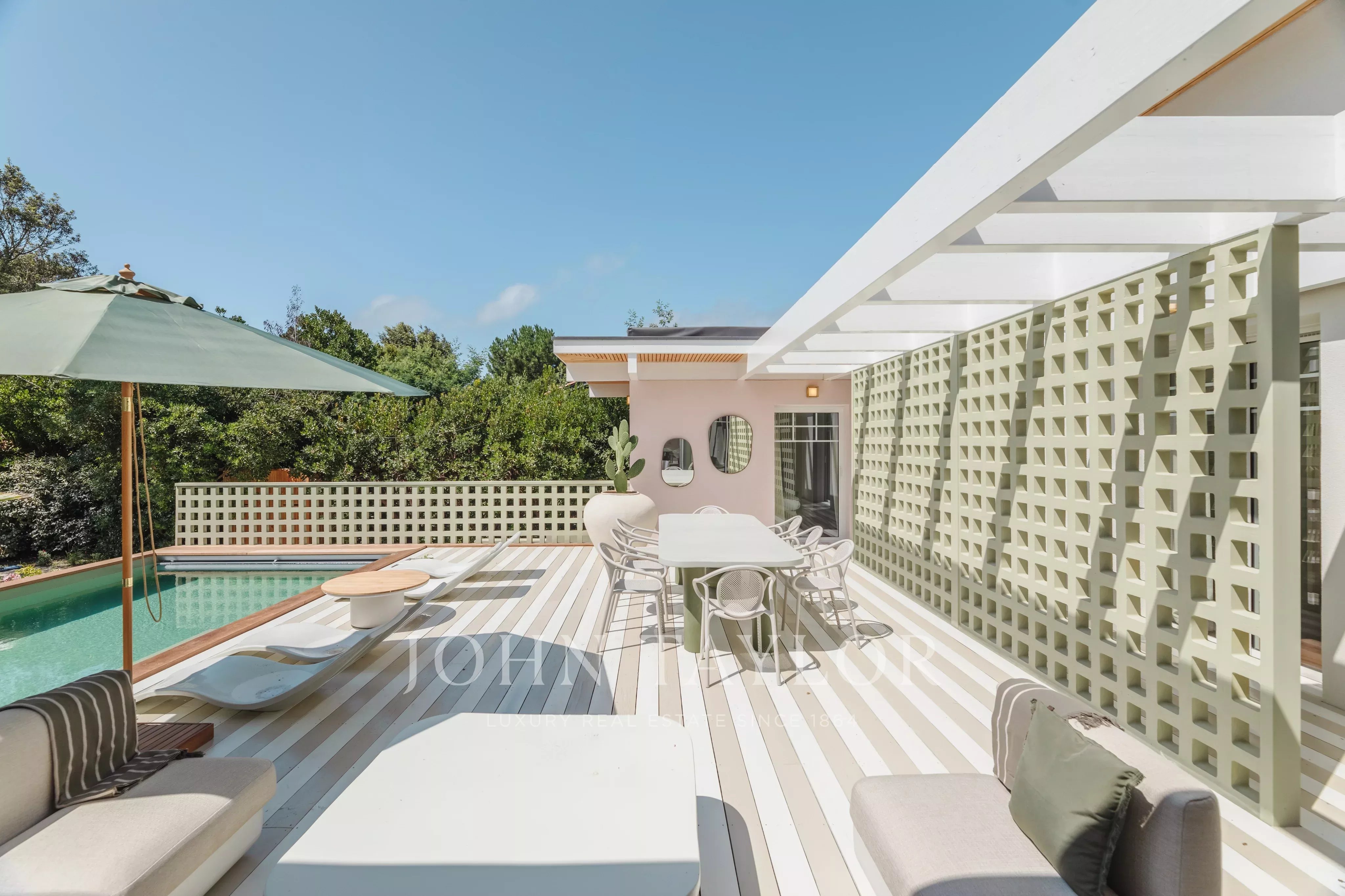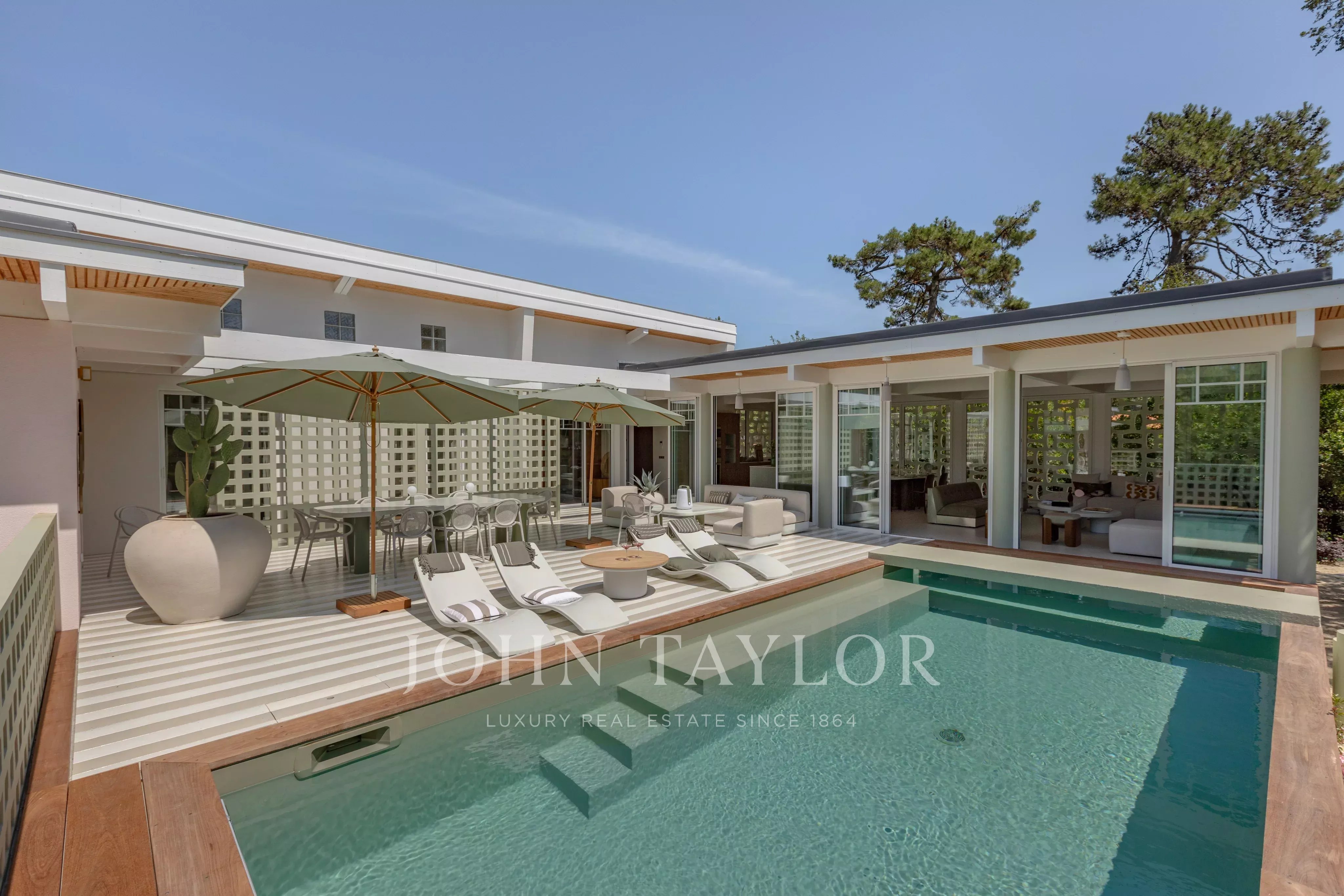 Nestled in the heart of the sought-after village of Cap-Ferret, Villa Mimosa is an exceptional property that invites a true journey through time. Inspired by the iconic 1950s Palm Springs style, this unique villa captivates with its retro-chic atmosphere and refined modernism.