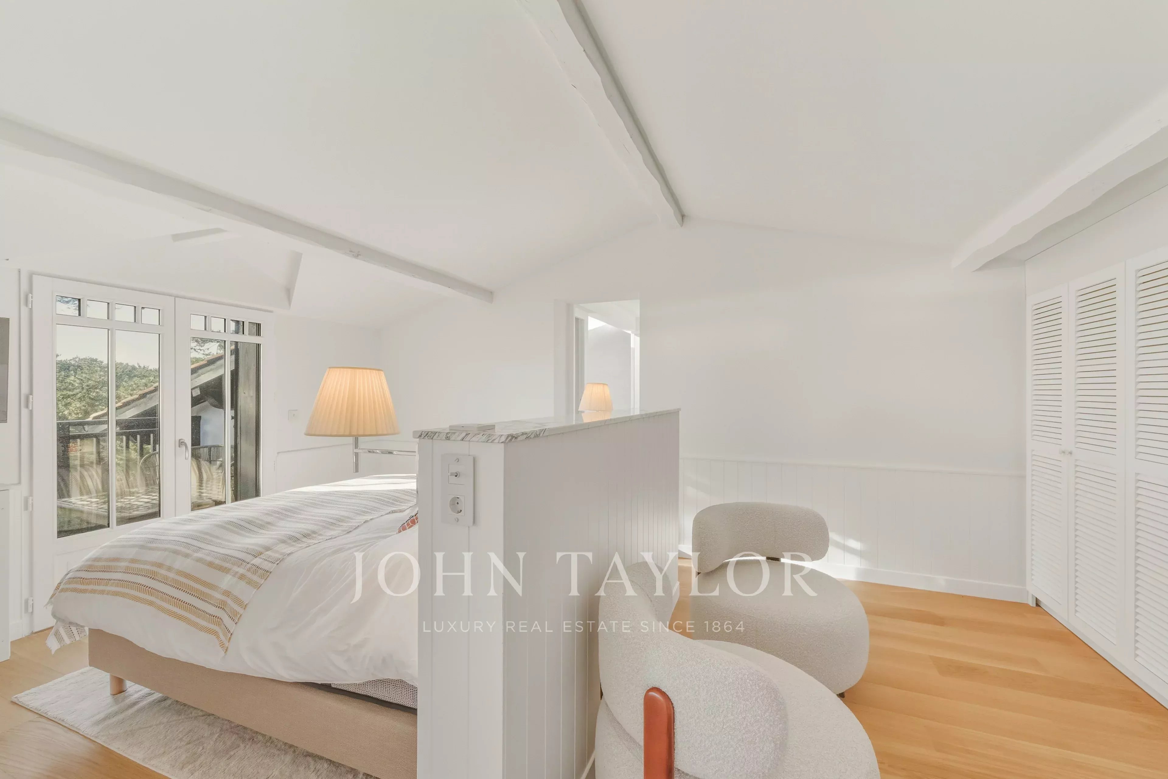 From the moment you arrive, your attention is immediately drawn to the unobstructed view of the basin, a living tableau that changes with the tides. The villa, perfectly integrated into its environment, is charming due to the quality of its amenities and the soothing atmosphere it exudes. The interior spaces, bathed in natural light, open generously to the outside, creating a harmonious continuity between indoors and outdoors.