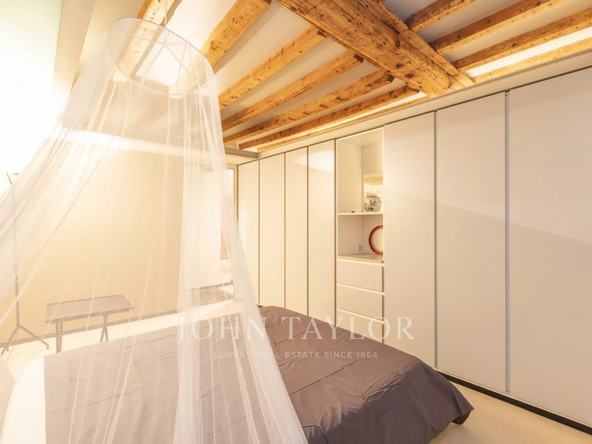 In an elegant building of great historical value with full time concierge, splendid loft of approximately 105 sqm. of great charm and with splendid finishes. Apartment composed of entrance hall, living room with dining room, kitchen area, two bedrooms and 2 bathrooms. Finely furnished with designer furniture. Class G. €2.400 per month