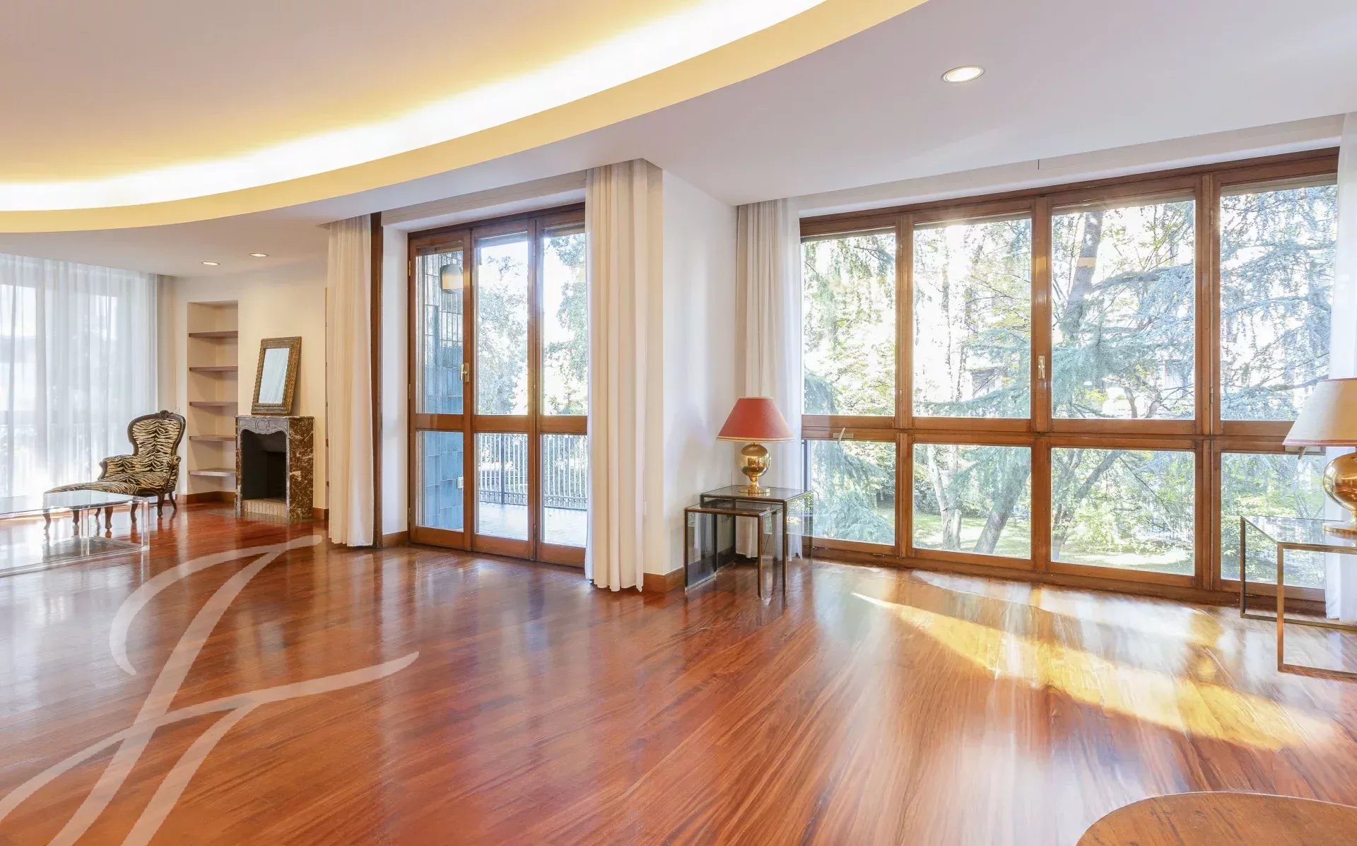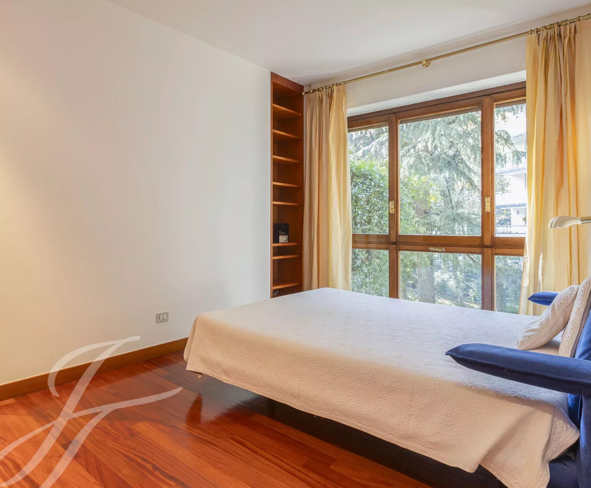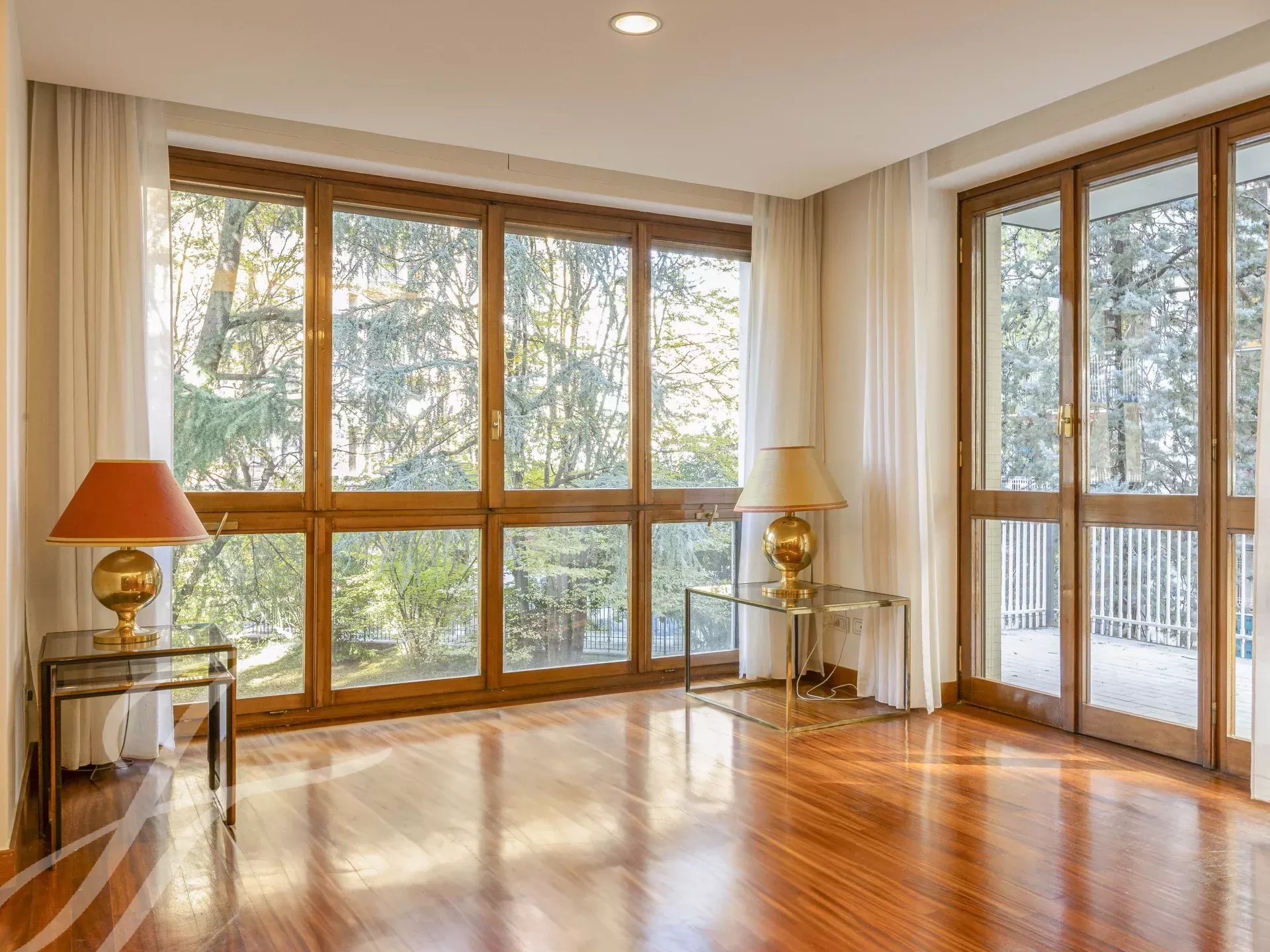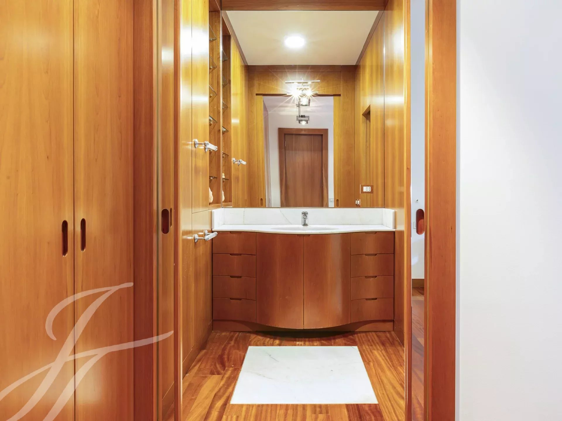 In an exclusive context with a large condominium park and concierge service all day, an elegant 220 sqm apartment, very bright and quiet with splendid exposure. Excellently arranged residence with large surrounding terraces consisting of: large entrance hall, a triple living room, dining room, large eat-in kitchen, three bright bedrooms and large study, triple bathrooms and storage closets. Partially furnished with precious custom-made furniture € 4,900,000 The property includes the possibility of a large garage.