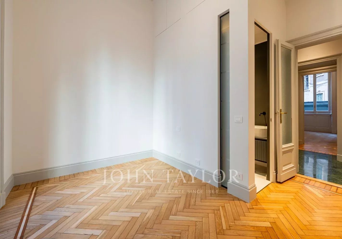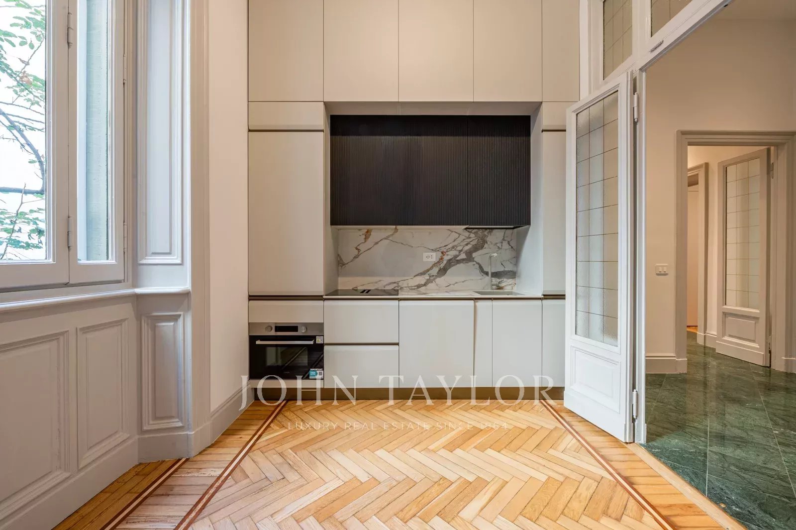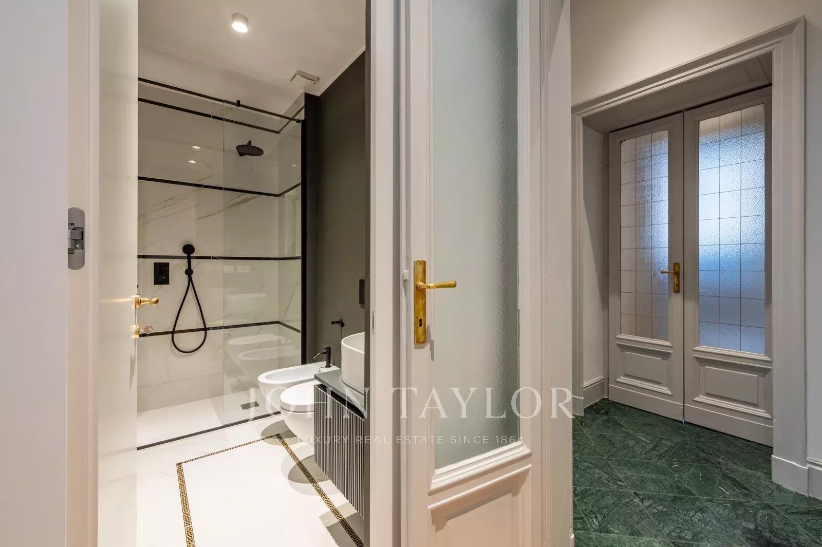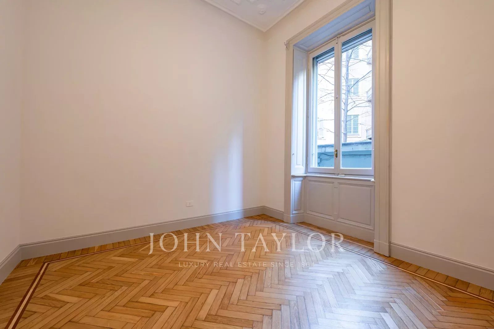 EXCLUSIVE TO JOHN TAYLOR in one of the most exclusive and prestigious areas of Milan, a splendid residence in an elegant period building with full-day concierge service. The apartment, completely new and never lived in, is characterized by unique high-end finishes and furnishings, custom-made with top-quality materials. The property, approximately 110 sqm, stands out for its great charm, brightness, quietness, and charming views. It consists of a large entrance hall, living room, eat-in kitchen, two double bedrooms, two bathrooms, ironing/laundry room, and a balcony. A dwelling of rare quality, ideal for those seeking elegance, privacy, and comfort in a historic setting of great charm.