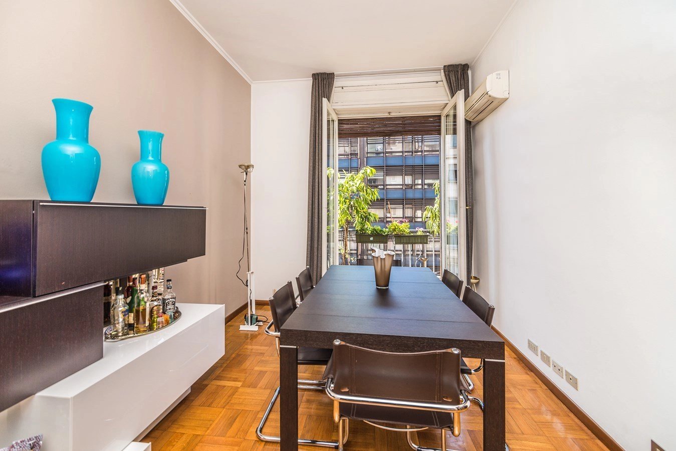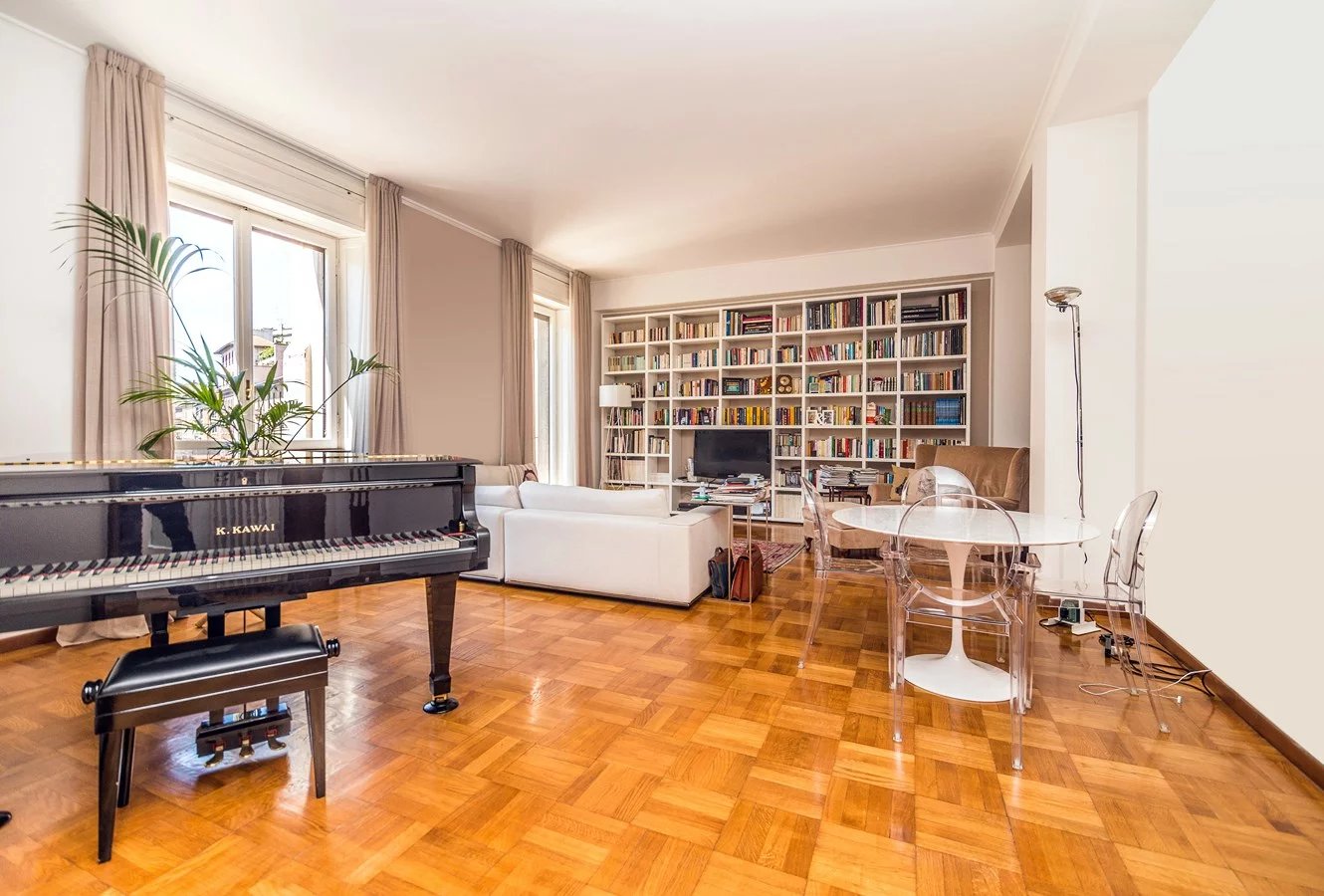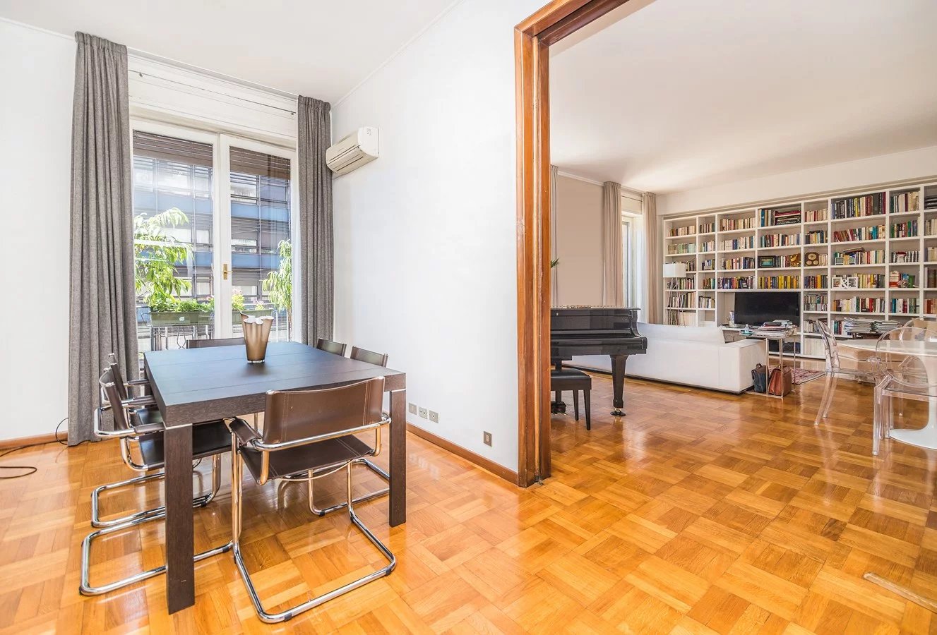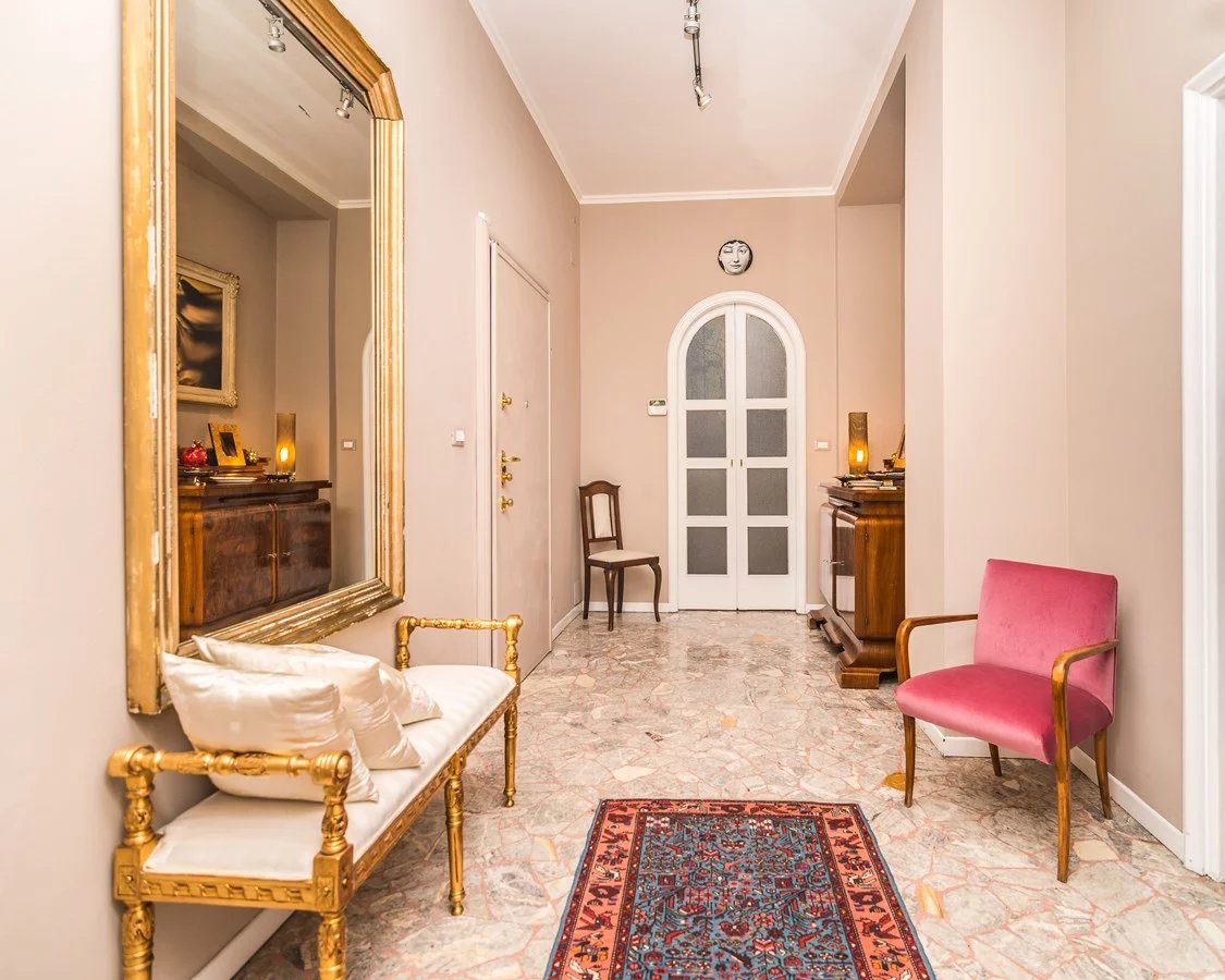 In elegant building, high floor, elegant apartment of great charm, bright and silent, renovated with high quality finishes, sqm. 230 approx. composed of: two entrances, double living room, kitchen, five bedrooms, three bathrooms. Large terrace sqm. 38 approx. with plants and furnished.