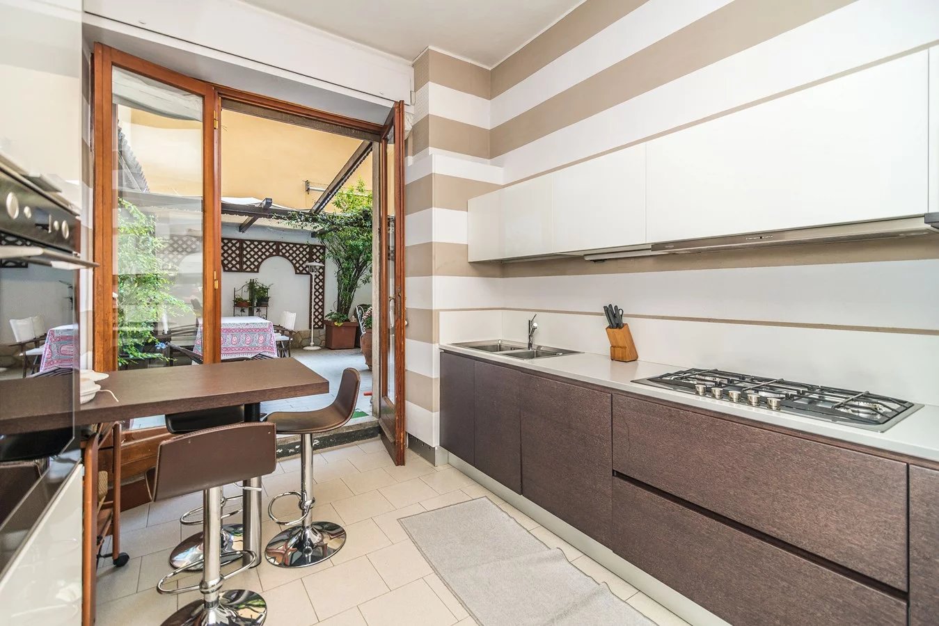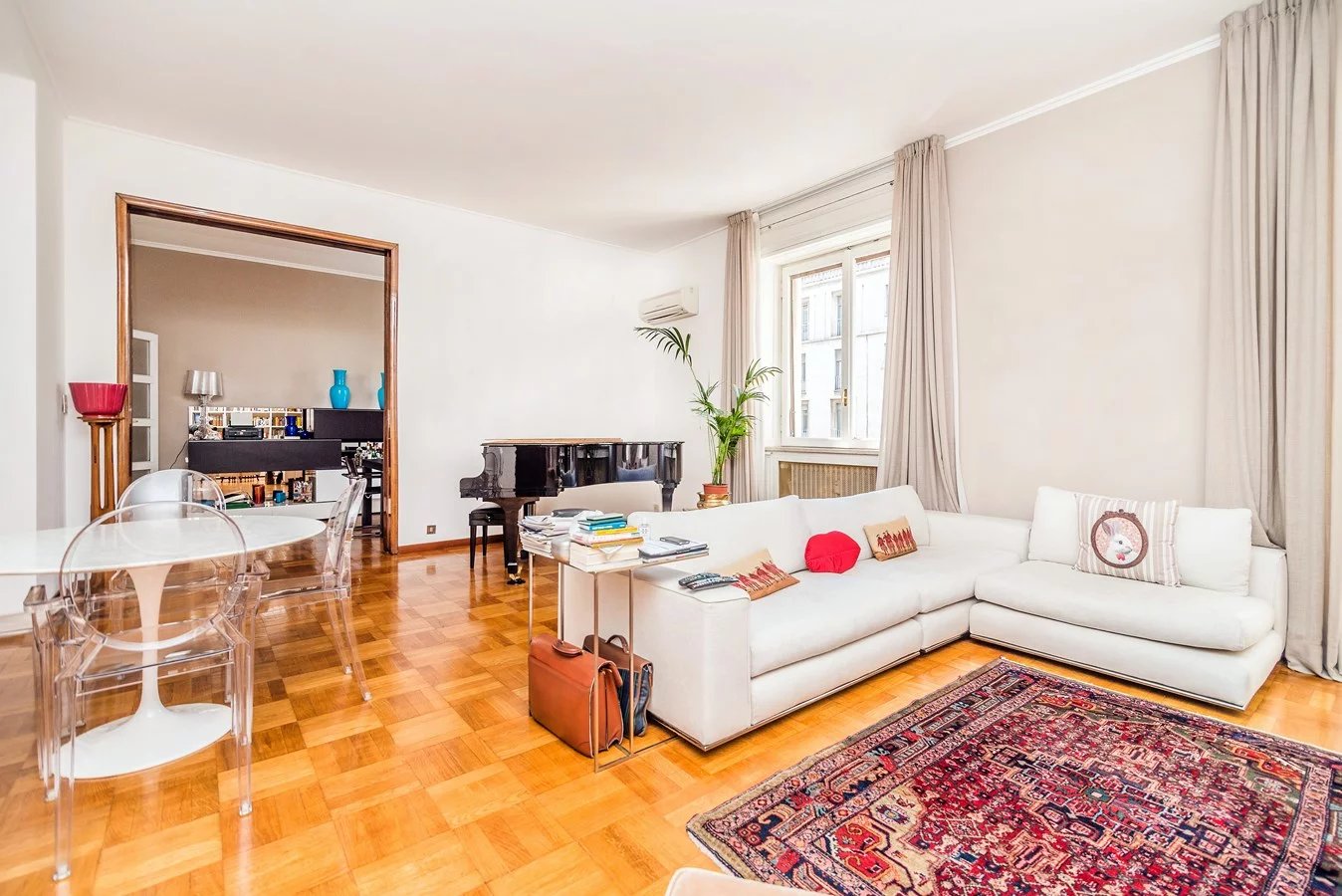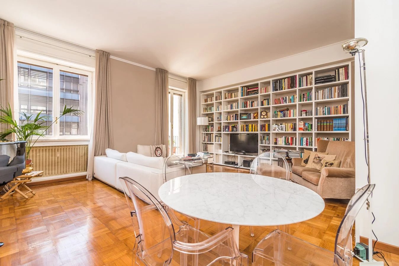 In elegant building, high floor, elegant apartment of great charm, bright and silent, renovated with high quality finishes, sqm. 230 approx. composed of: two entrances, double living room, kitchen, five bedrooms, three bathrooms. Large terrace sqm. 38 approx. with plants and furnished.