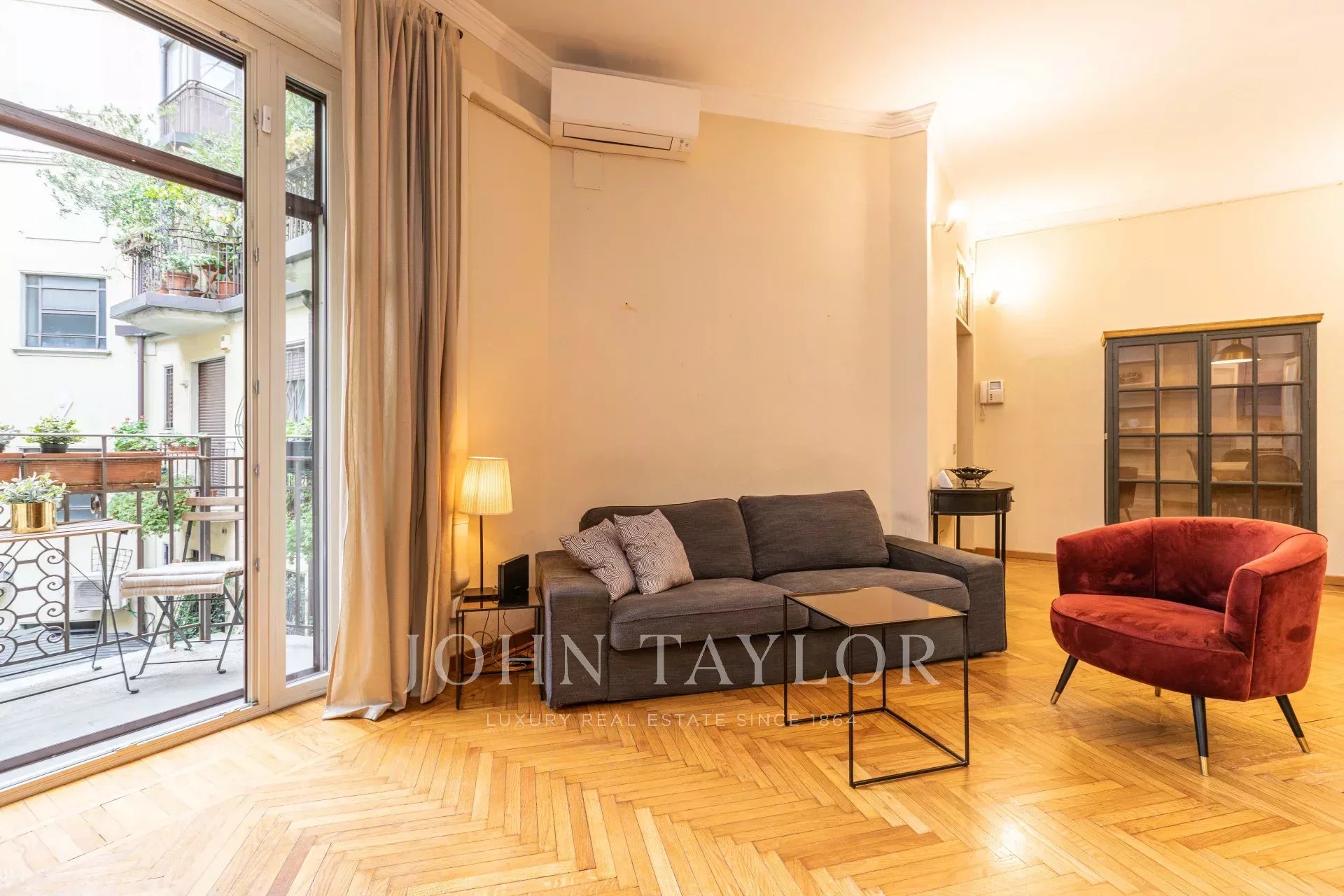 In an elegant context in the heart of Brera, a few steps from Piazza Castello, a refined, very bright and quiet residence of approx. 100 sqm with a splendid furnished internal balcony, a very charming apartment with a large double living room, kitchen, 2 bedrooms and a large bathroom. Completely and finely furnished. Possibility of complete equipment. Every comfort. Large cellar € 5,000 per month