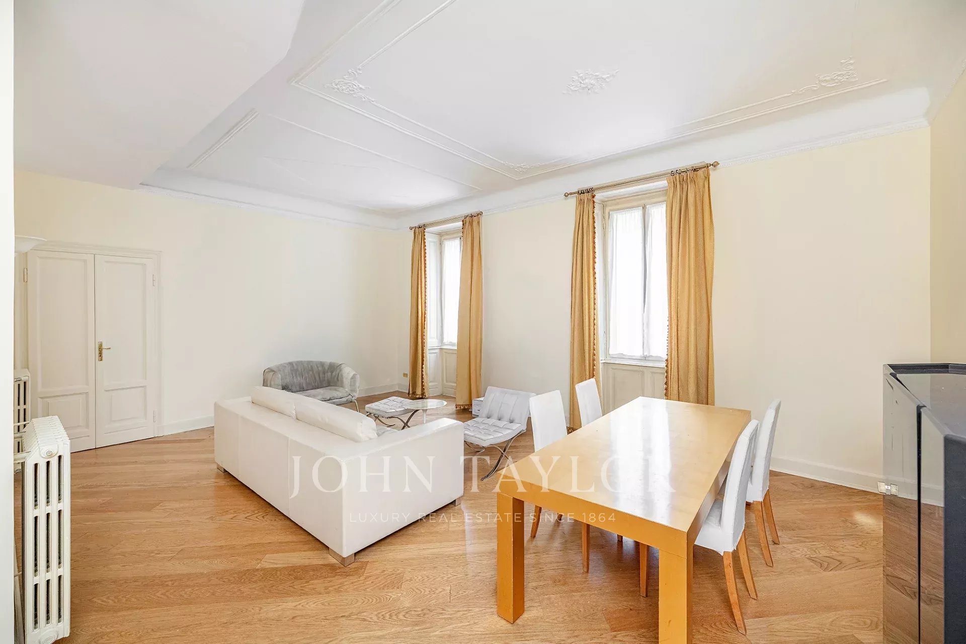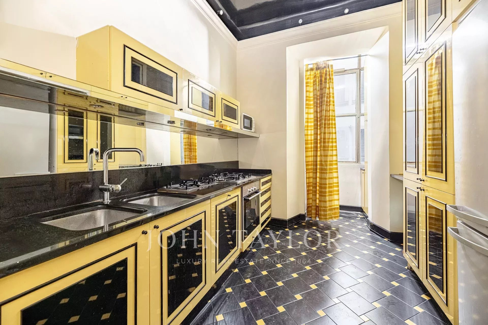 In an elegant 19th-century setting, a very quiet, furnished apartment, approx. 130 sqm. composed of an entrance hall, double living room, eat-in kitchen, two bedrooms, two bathrooms, two balconies, cellar, and attic. €2.500 per month. Energy class F