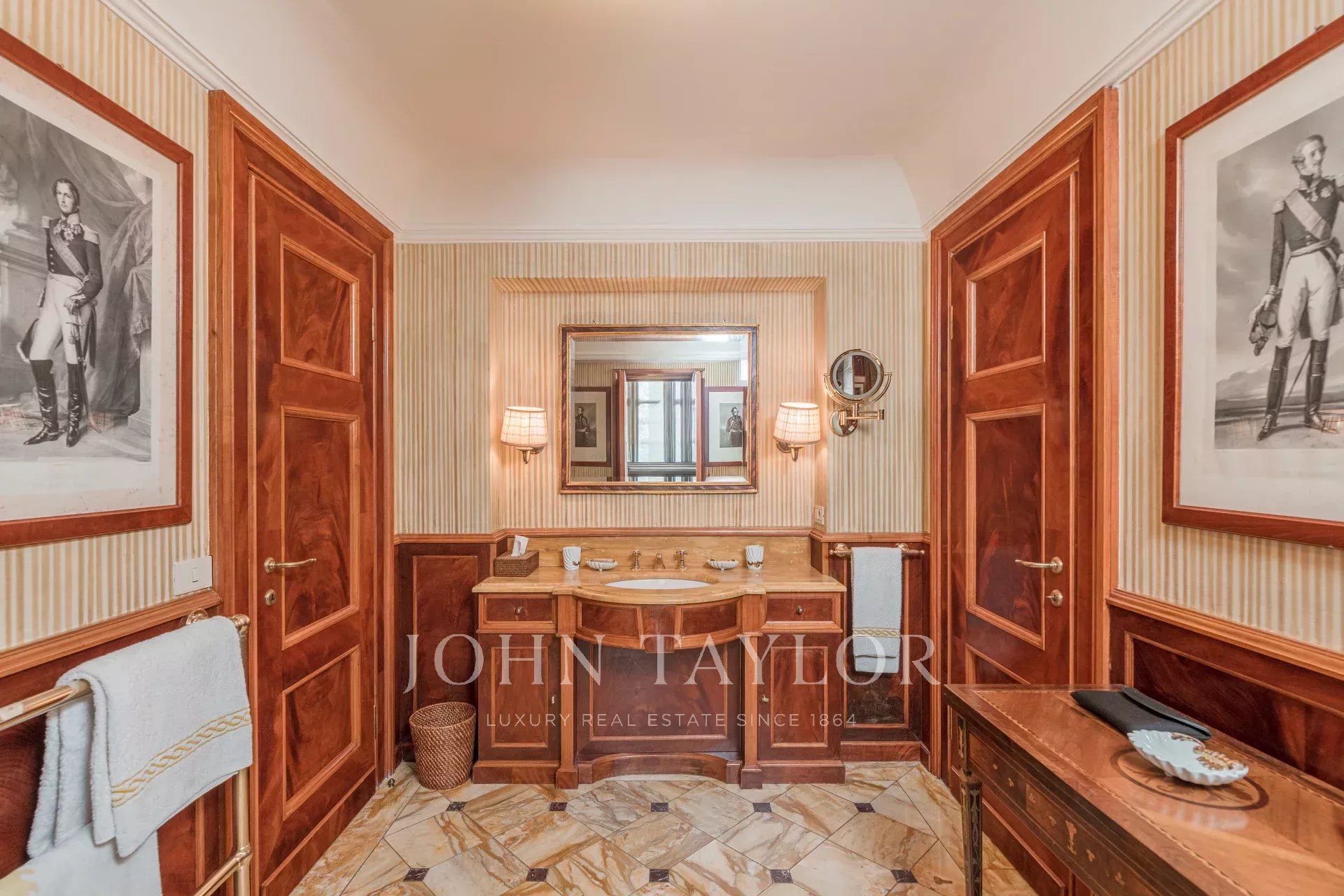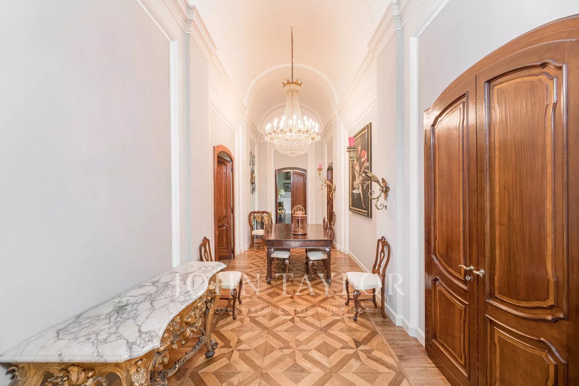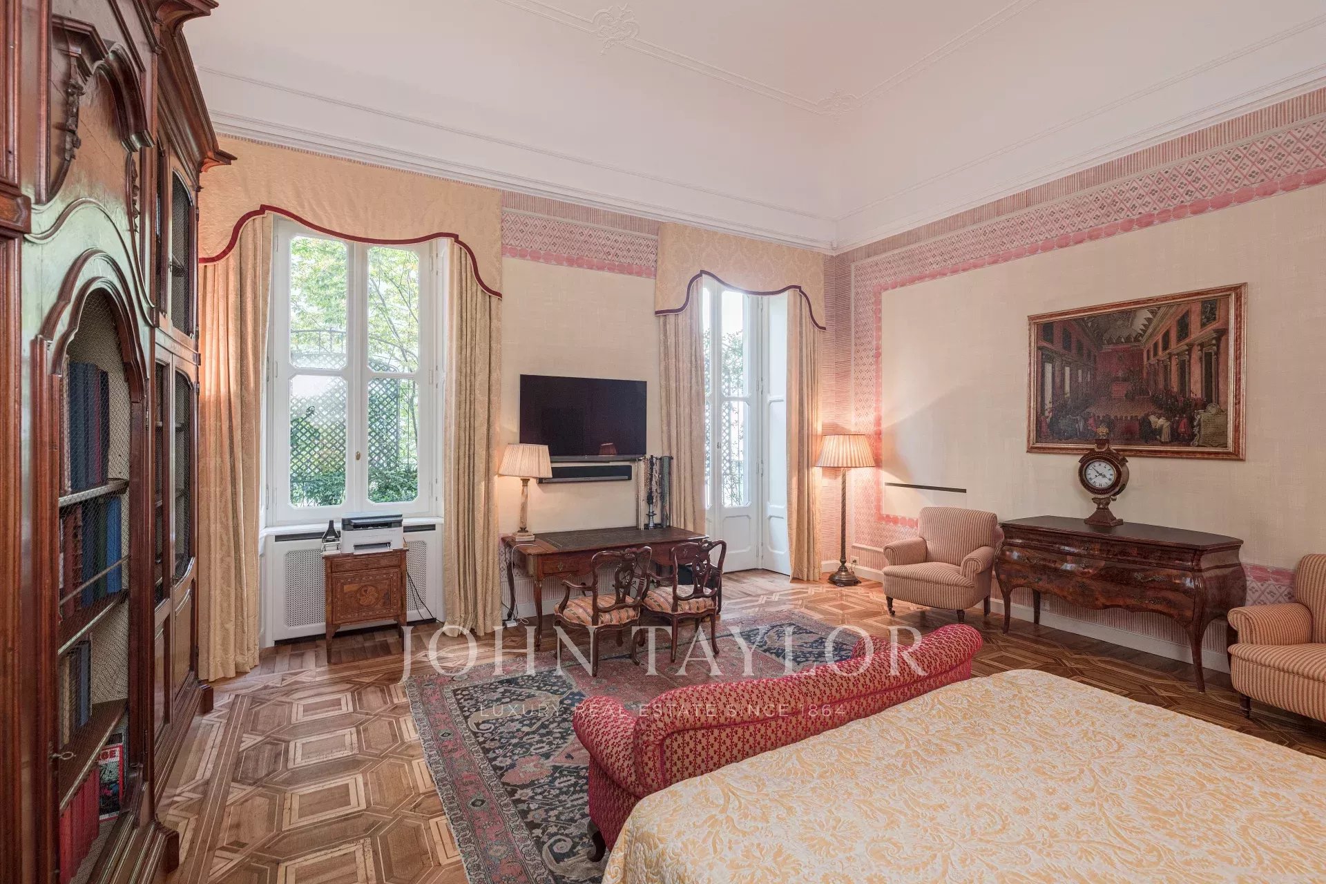 In one of the most exclusive contexts of the city, inside an elegant 1930 period building with full-time concierge service, we offer for sale a unique residence of approx. 500 sqm, arranged on two levels, with internal elevator. The main floor welcomes with a large representative living room with fireplace, a study with antique library, a refined dining room in the large hallway, a TV room with fireplace, and a guest bathroom. The sleeping area includes a master suite with private bathroom and walk-in closet, two further double bedrooms with en-suite bathrooms and walk-in closets, as well as a single bedroom with dedicated bathroom. The mezzanine floor hosts the service area, consisting of laundry, wardrobe, and service room with bathroom. On the ground floor develops the large eat-in kitchen with direct access to the private garden, the garage, and a spacious cellar/pantry. The property is completed by a single garage with the possibility of parking a second car in front. A prestigious residence, perfect for those seeking large spaces, period charm, and a position of absolute value, in the heart of Milan and facing the Indro Montanelli Gardens.