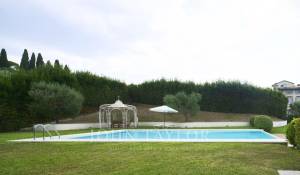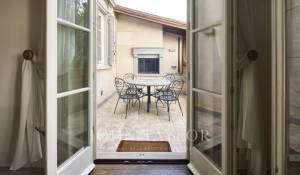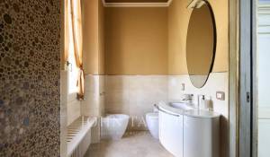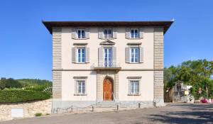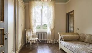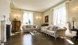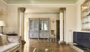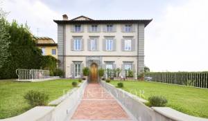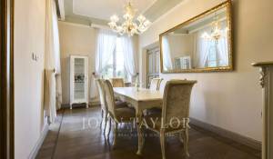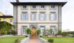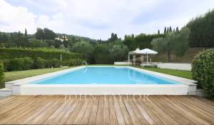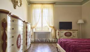 This renovated first-floor apartment in a 16th-century Medici Villa offers 250 sqm of elegant living space with communal garden, swimming pool, double garage, and cellar.