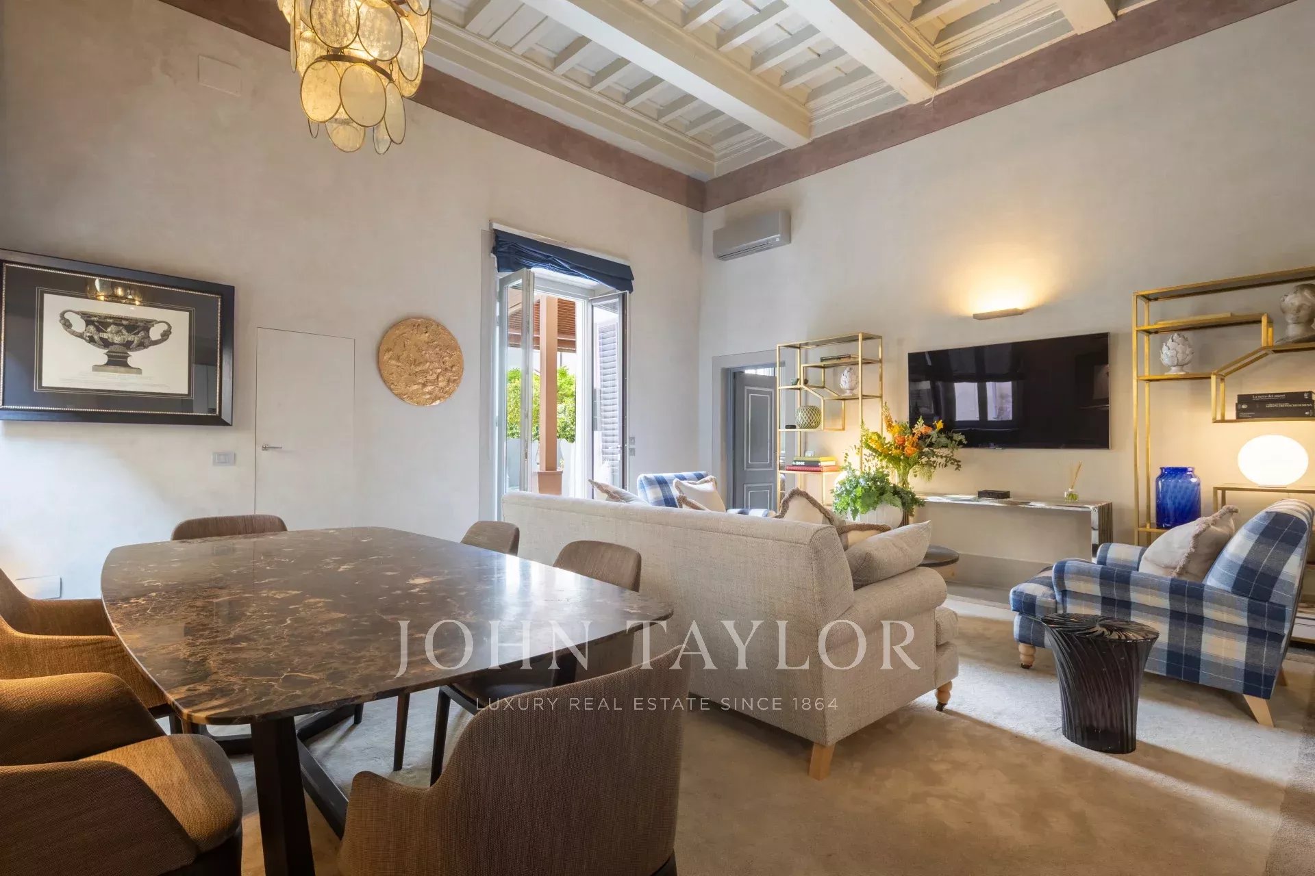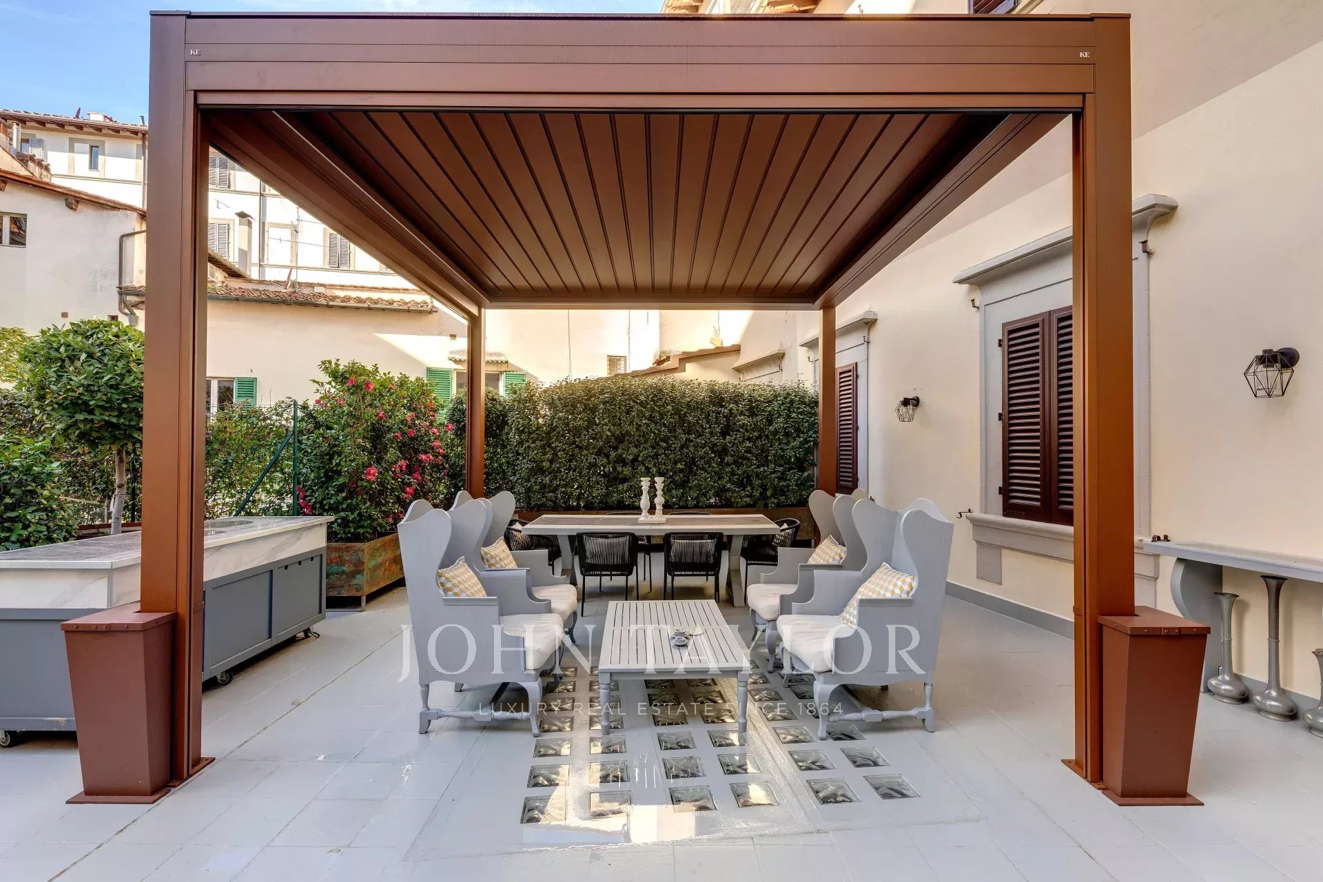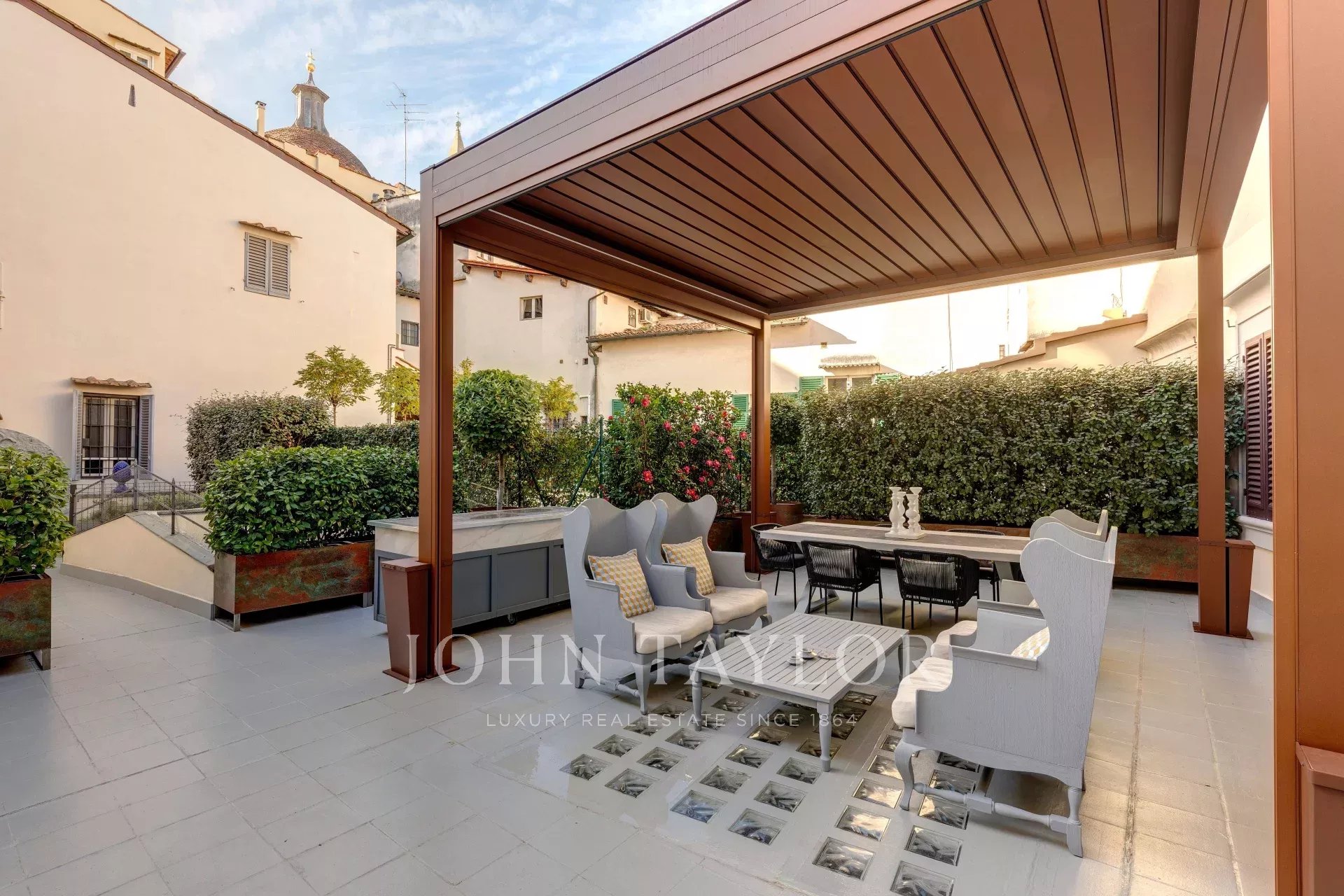 A magnificent 160 sqm terrace, fully equipped for year-round use, provides a private oasis in the heart of Florence.