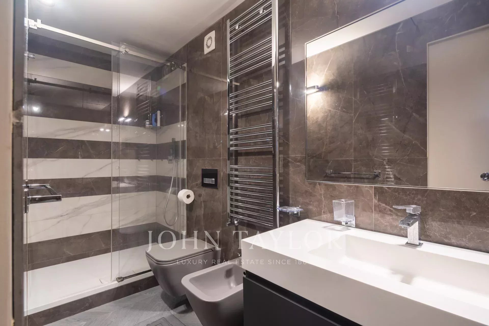 It includes a walk-in closet, a storage area, and an en suite bathroom for ultimate privacy. Two additional bedrooms complete the apartment, one of which with its own en suite bathroom.