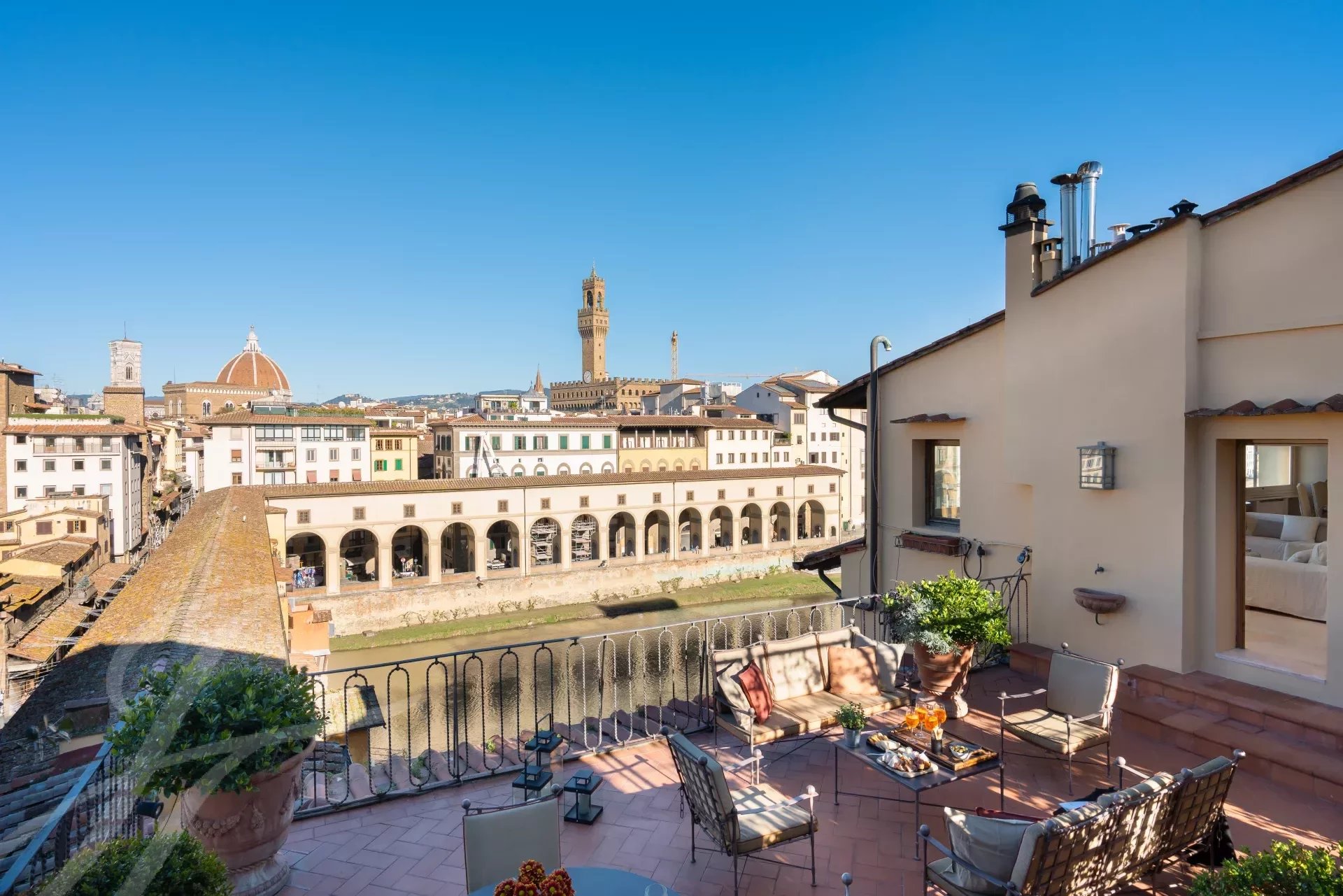 Located at Ponte Vecchio, this penthouse provides a mesmerizing panorama of the Arno River and Florence's architectural marvels. The historical tower adds a unique charm to this prime location.