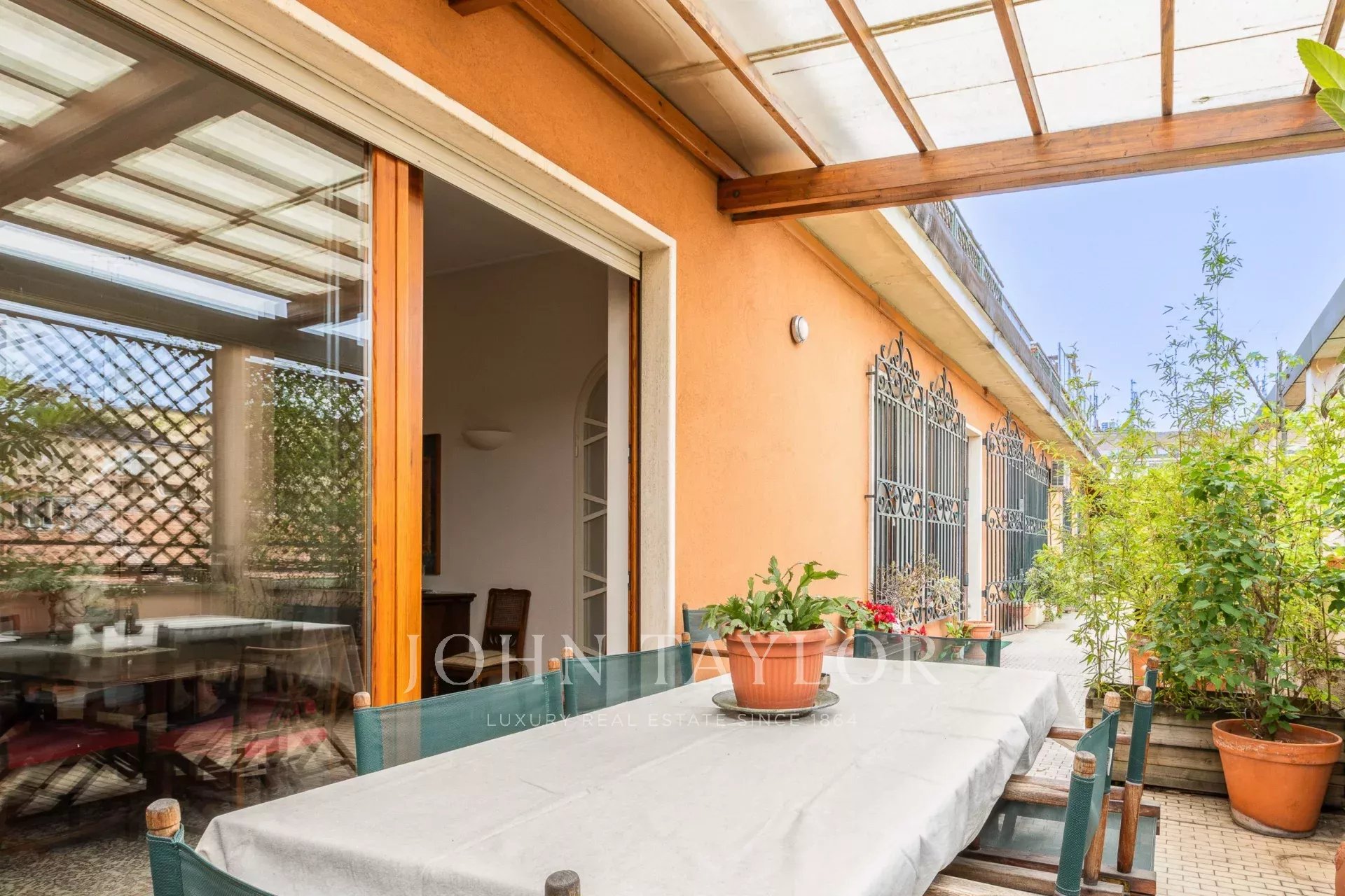 In an elegant setting with full time concierge service, very bright and quiet apartment, 240 sqm. approx. high floor level, with a splendid surrounding terrace, the apartment has 2 entrances, and is composed of, entrance hall, splendid double living room embellished with large windows, large dining room and study area, habitable kitchen, 4 bedrooms, 3 bathrooms, walk-in closet. Optimal internal distribution. The property includes a large garage. Energy class G