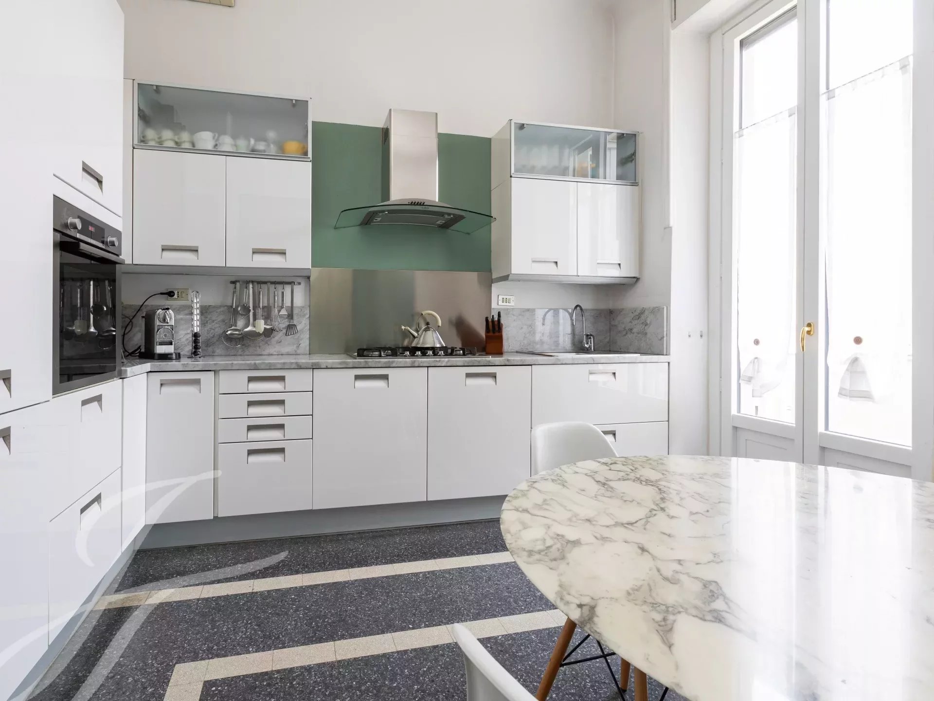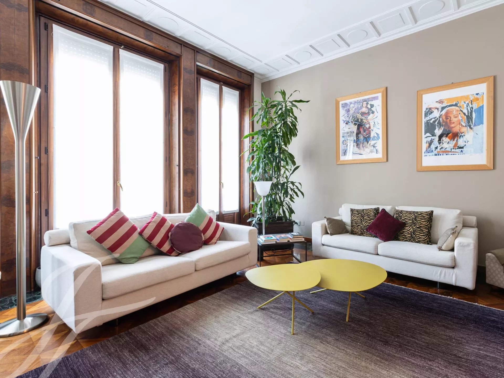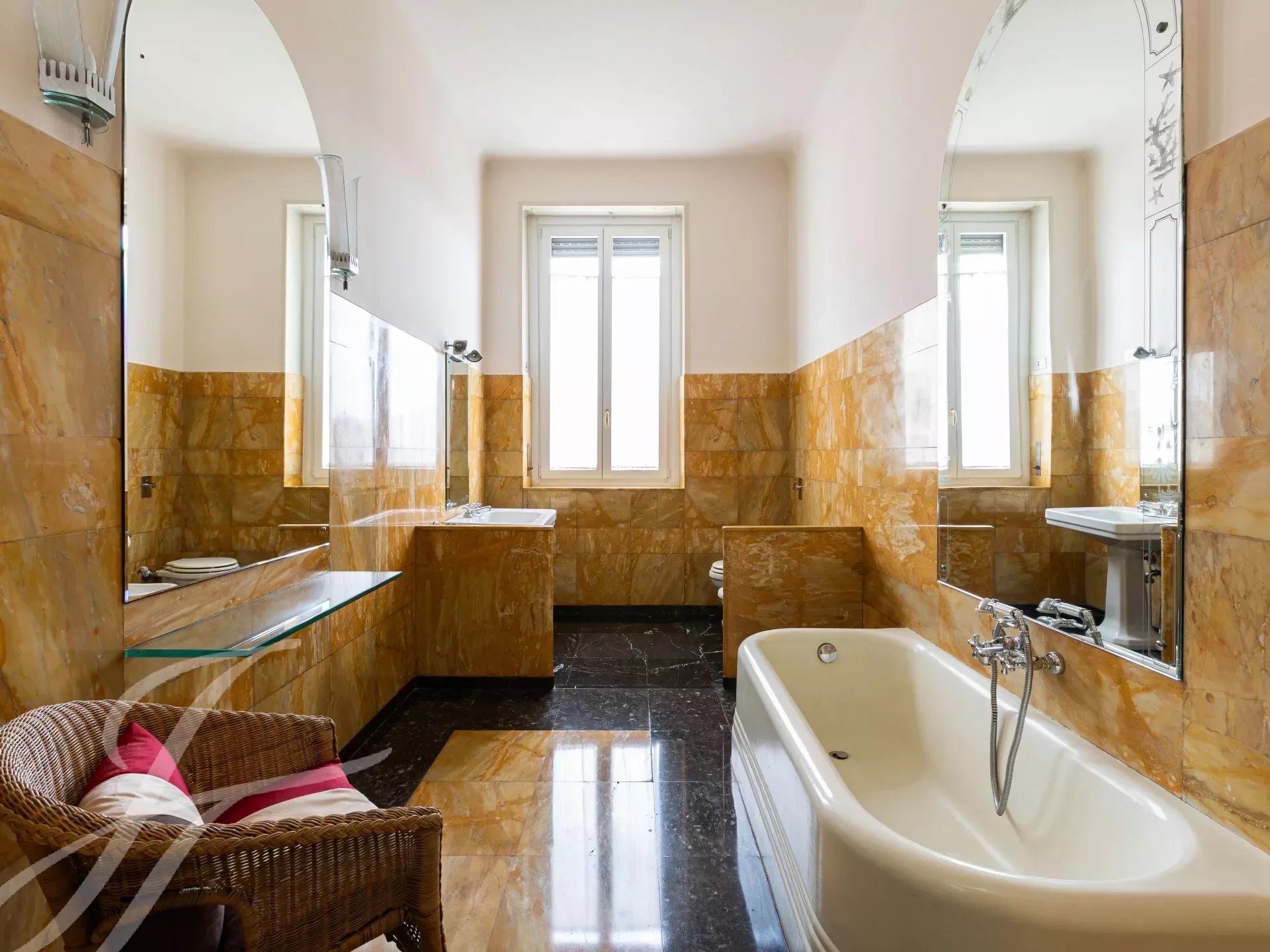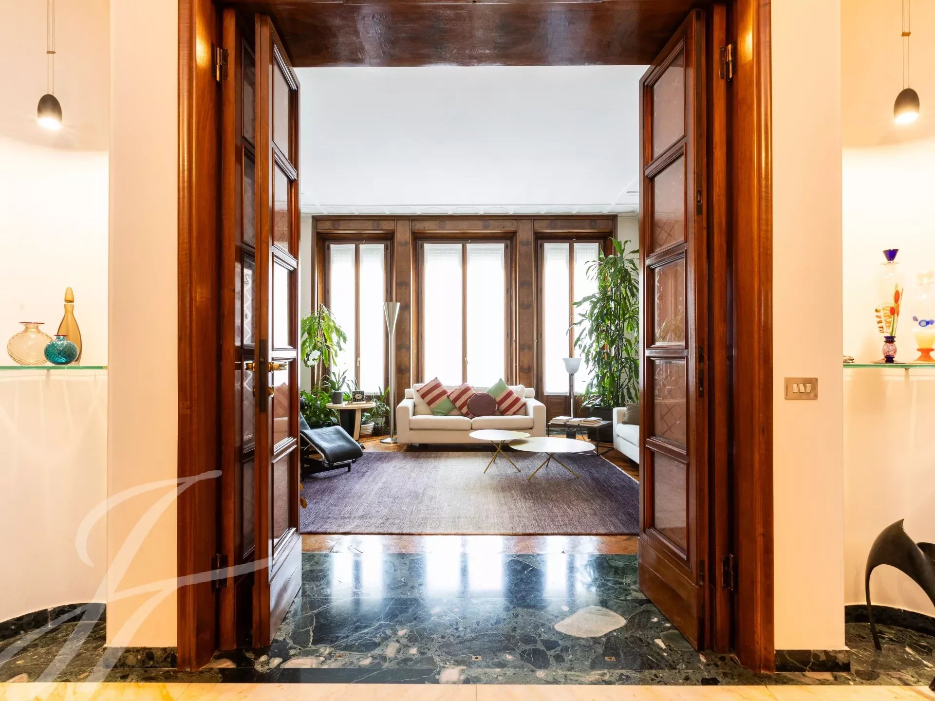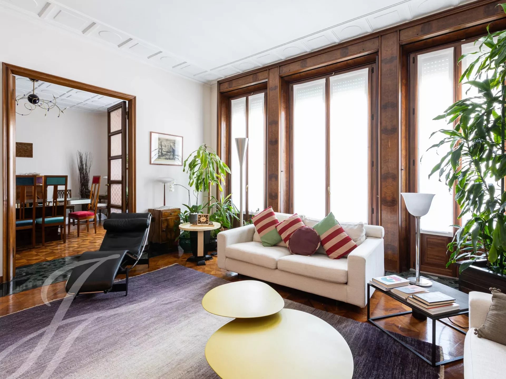 In elegant prestigious period context with all day concierge service, elegant high floor apartment, very bright and quiet, of great charm with splendid and precious original finishes with high ceilings, very well laid out, composed of: two entrances, large entrance hall, spacious kitchen, triple living room, dining room, 4 bedrooms, closets and 2 bathrooms. 5 balconies. Attic for storage. €1,795,000 Possibility garage with separate cost.