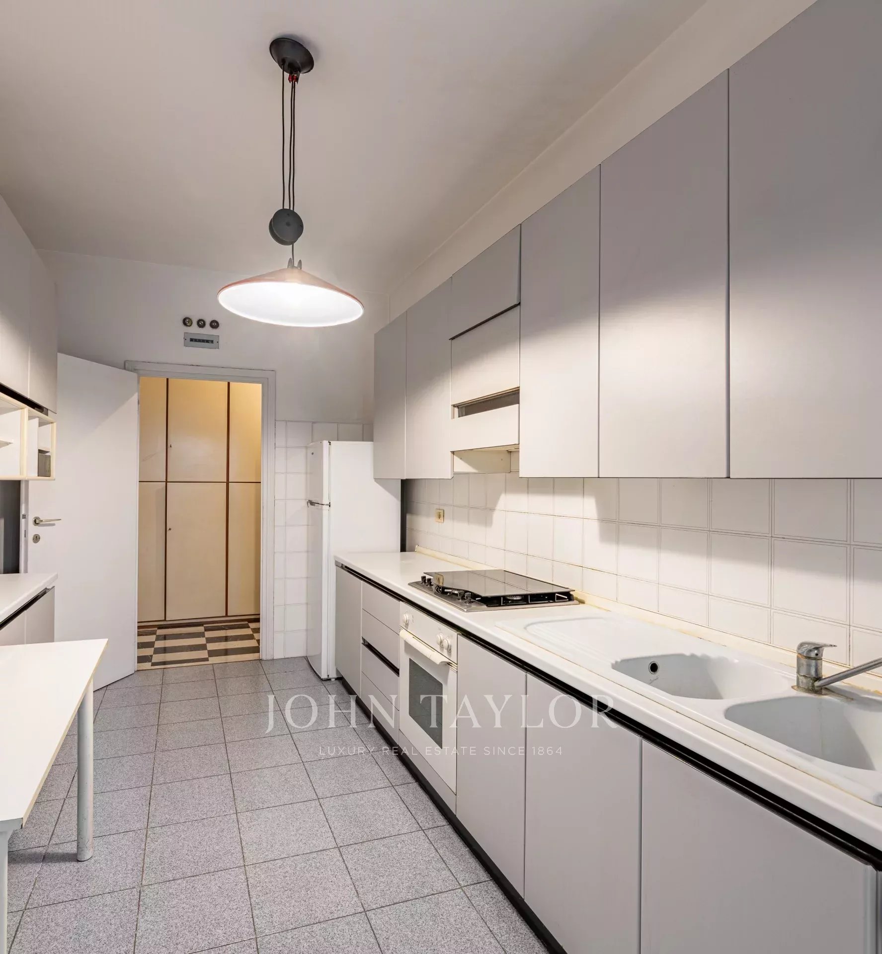 In elegant high floor context, very elegant apartment with terrace, well laid out, very bright and quiet of approx. 160 sqm, with double access, consisting of large entrance hall, triple living room, spacious eat-in kitchen, 3 bedrooms, 2 bathrooms, closet, balcony and habitable terrace on the floor. Cellar.