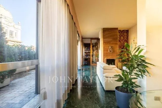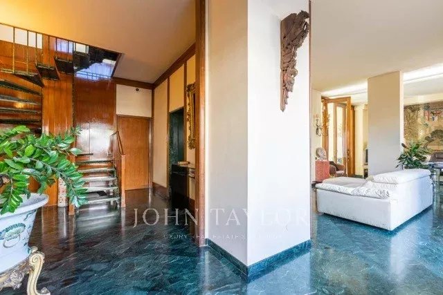 BARE PROPERTY In an elegant context of 340 sqm. approx., penthouse very bright and quiet with splendid furnished terraces on same level of approx. 50 sqm. Composed of three entrances, large living room, dining room, kitchen, annex cupboard space, 3 bedrooms, large study, 3 bathrooms. cellar. The property includes a large double garage in the building