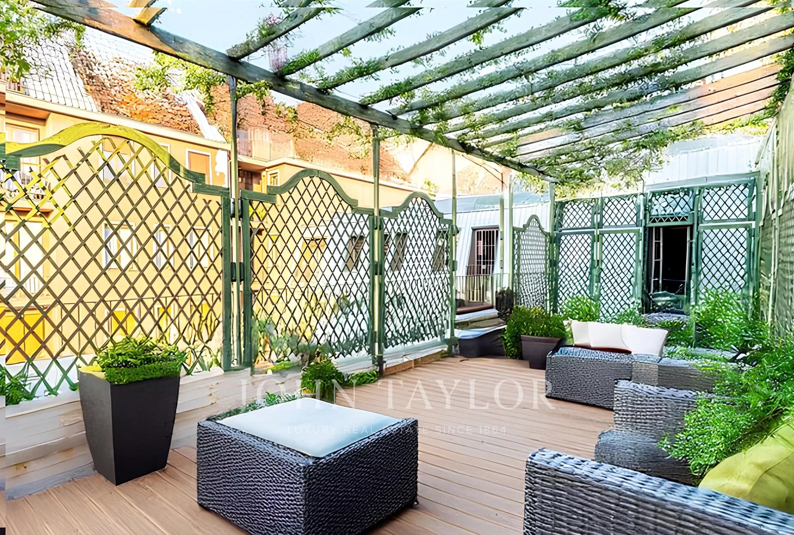 Available, top-floor residence in an elegant and prestigious setting with full-day concierge service, we offer an exclusive residence of exceptional charm, distinguished by maximum privacy. The property, measuring approximately 250 sqm, is the result of a significant architectural project designed by a renowned Italian architect and features finishes of the highest standard throughout. The spacious and light-filled interiors include a frescoed grand living room, a formal dining room adorned with bas-relief details, two master bedrooms, a study, a large eat-in kitchen, and two bathrooms. The residence is offered fully furnished with unique, historically valuable pieces, meticulously selected with exceptional care. The property is further enhanced by a magnificent, expansive terrace on the same level, beautifully landscaped and furnished, making this home a residence of truly rare distinction. Confidential negotiations.