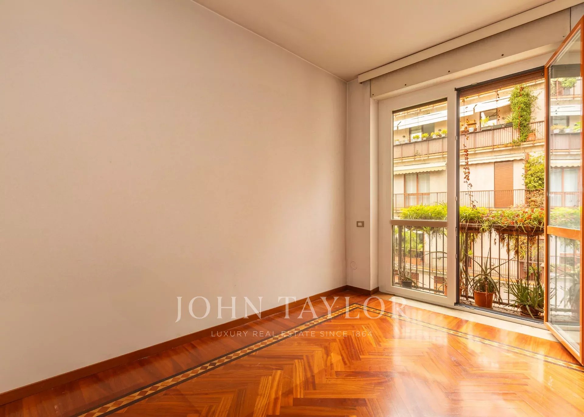 John Taylor Exclusive - Available, in the most exclusive area of central Milan, within an elegant and prestigious residential building featuring full-day concierge service, we offer an elegant luxury residence of approximately 165 sqm, enhanced by a large terrace on a high floor. The residence is exceptionally bright and quiet and comprises a spacious entrance hall, a triple living room with dining area, a separate eat-in kitchen, two bedrooms, a study, two large bathrooms, and a magnificent, well-exposed habitable terrace. The property is completed by a cellar. Garage available upon request. Confidential negotiation.
