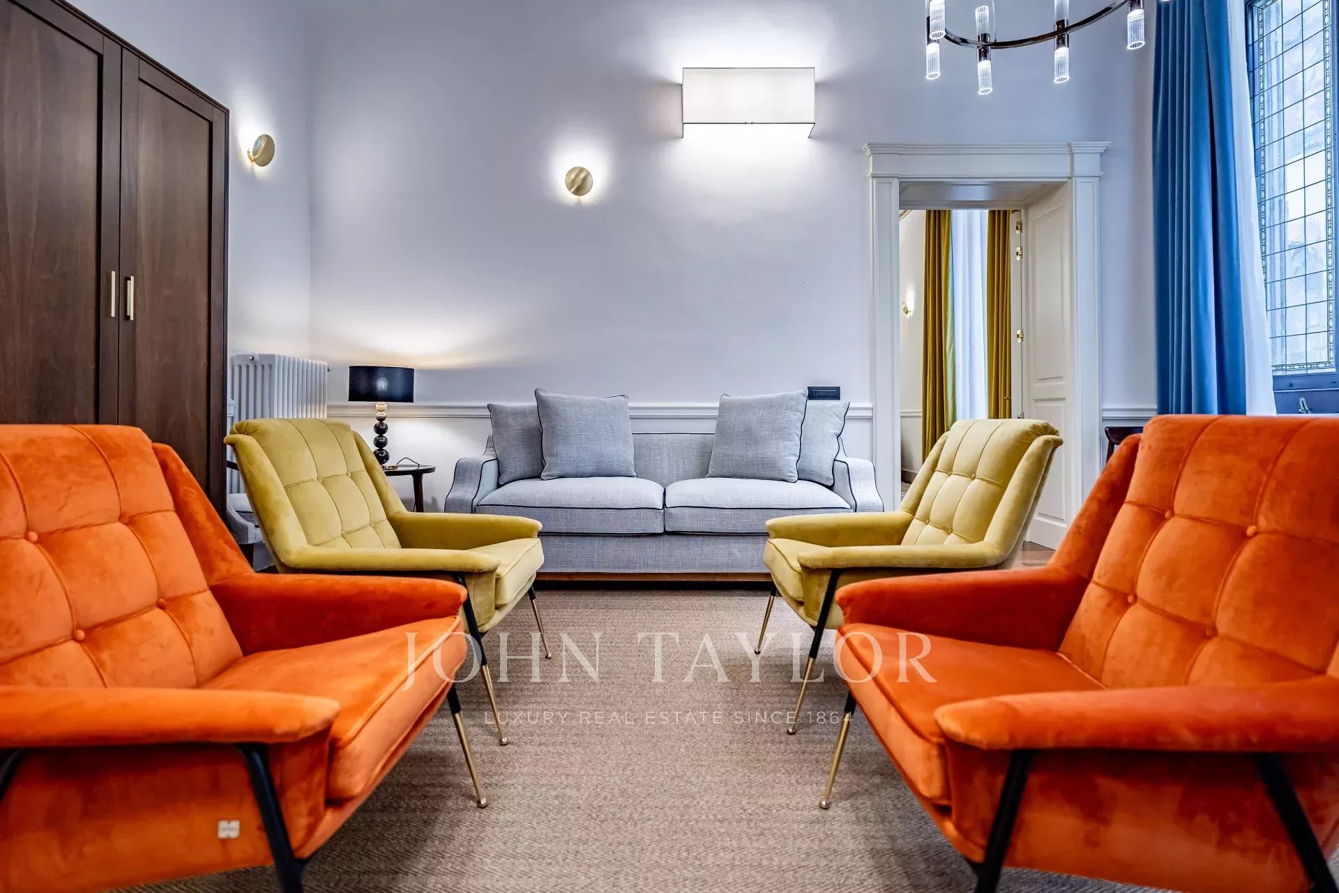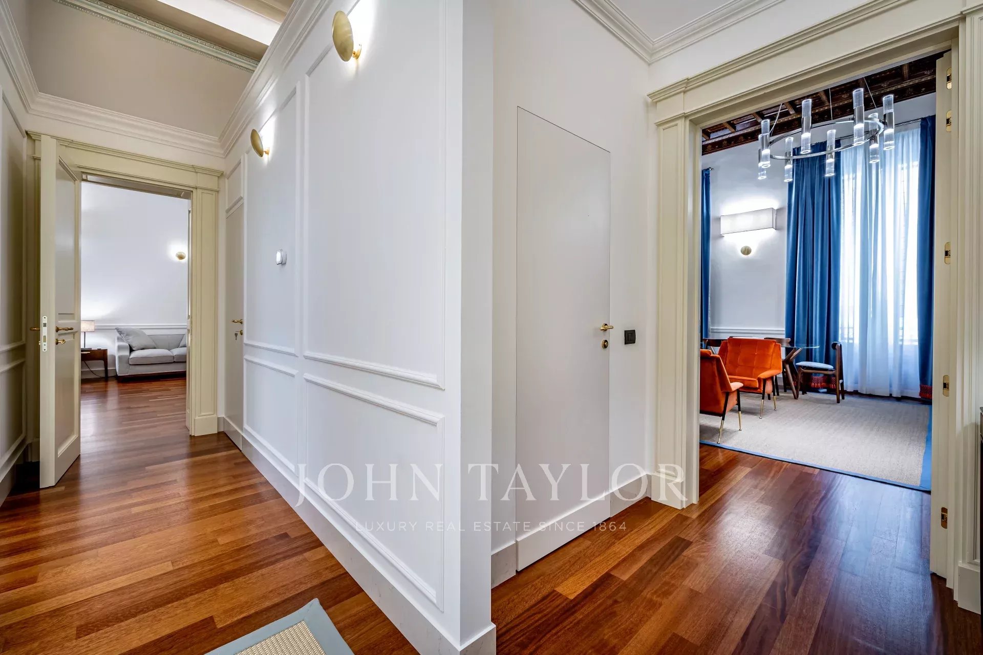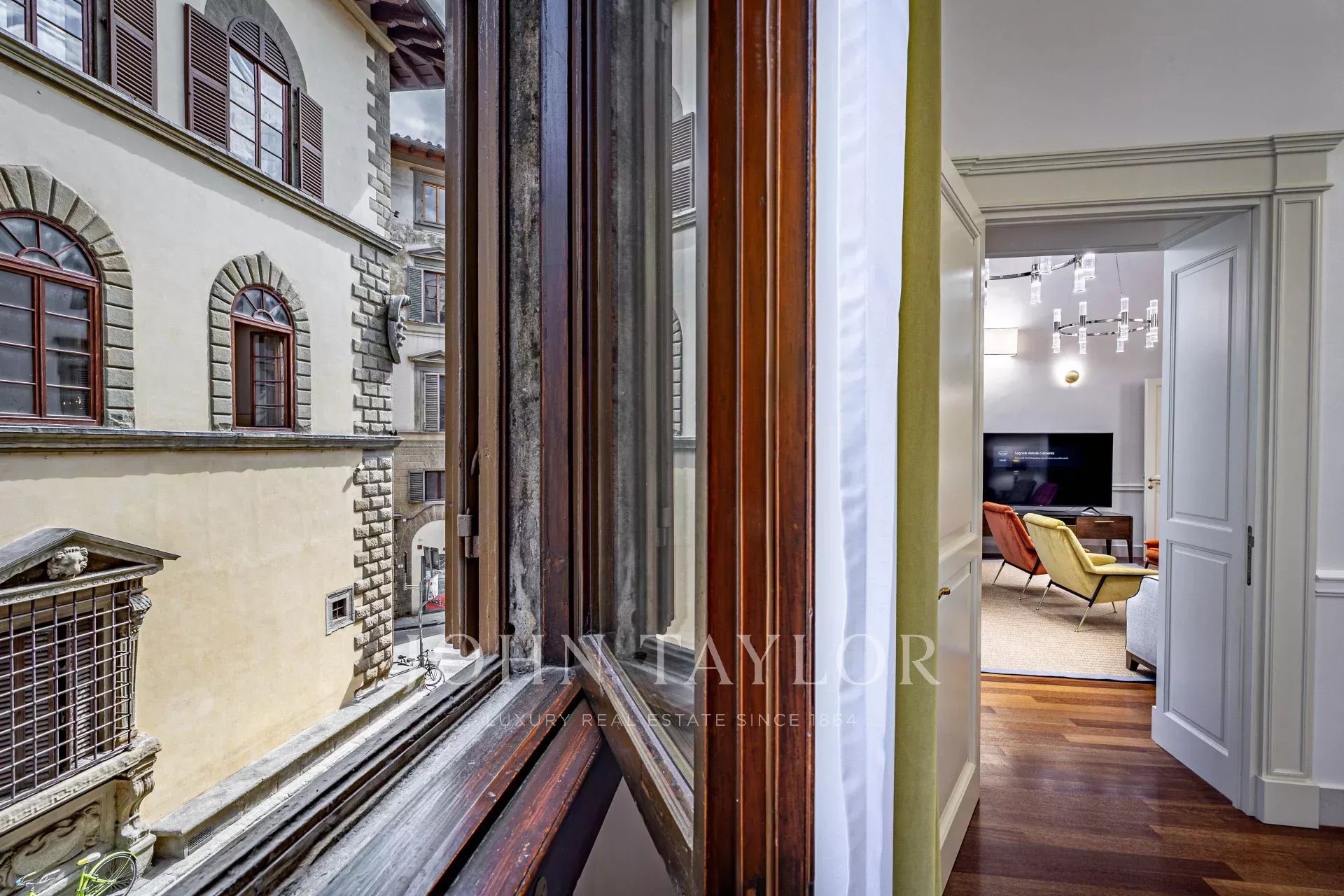 Discover this exceptional 210 m² luxury apartment for sale near the Florence Duomo, nestled in one of the city's most prestigious historic buildings of the city centre. Recently renovated, this residence on the noble floor features two balconies offering stunning views of the Duomo—the only ones on the street with such a view.