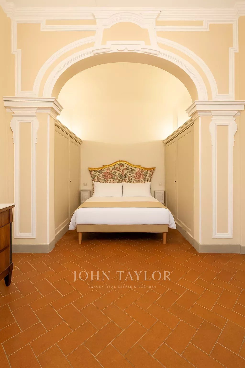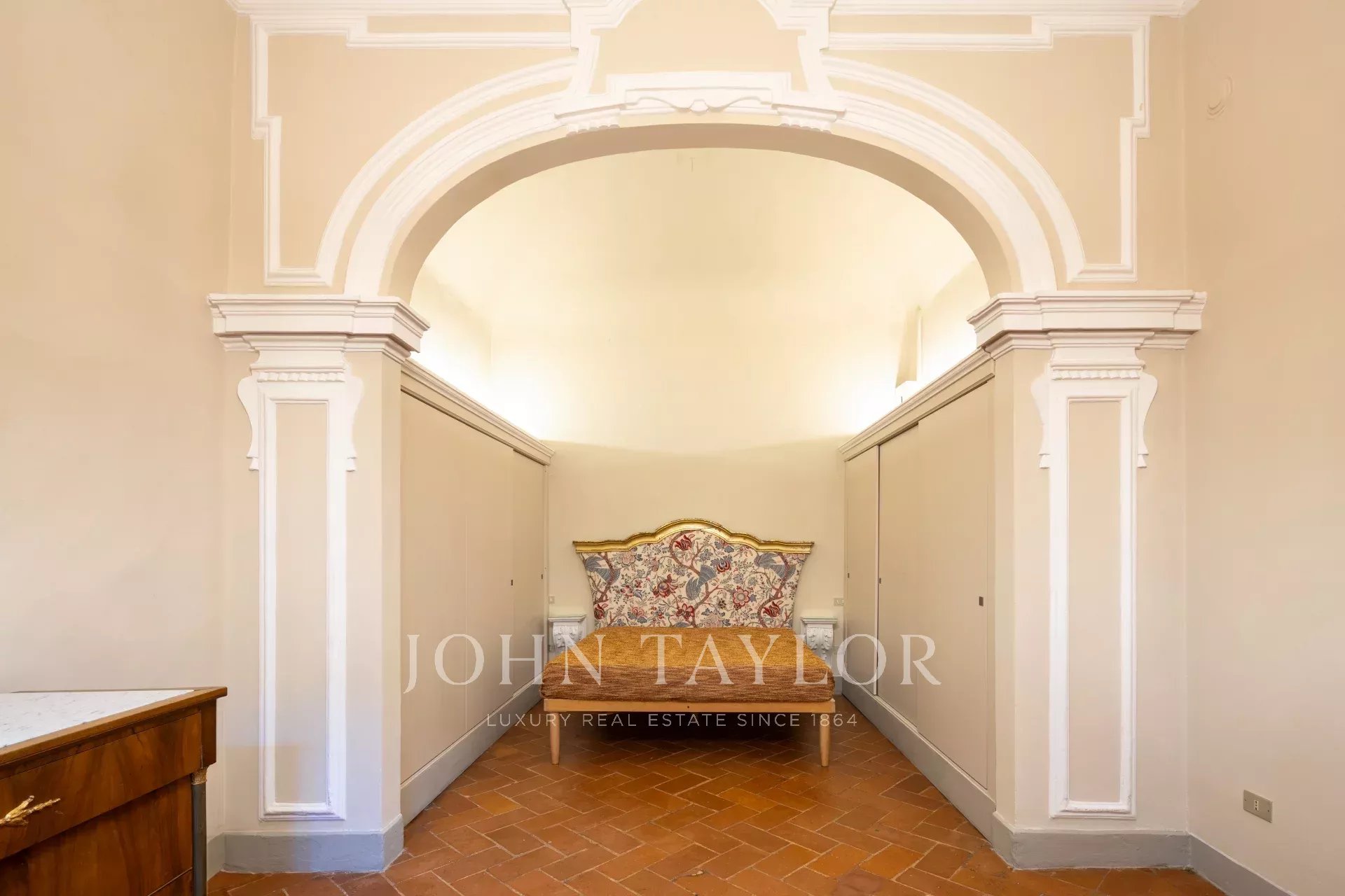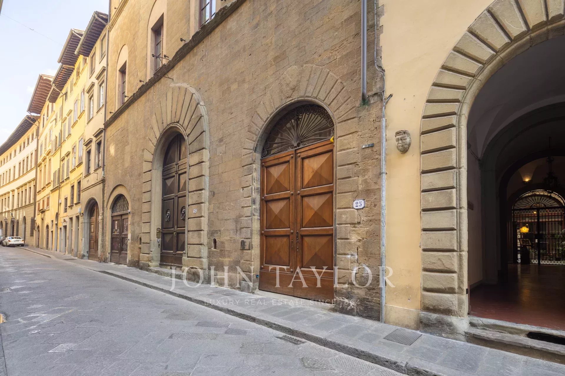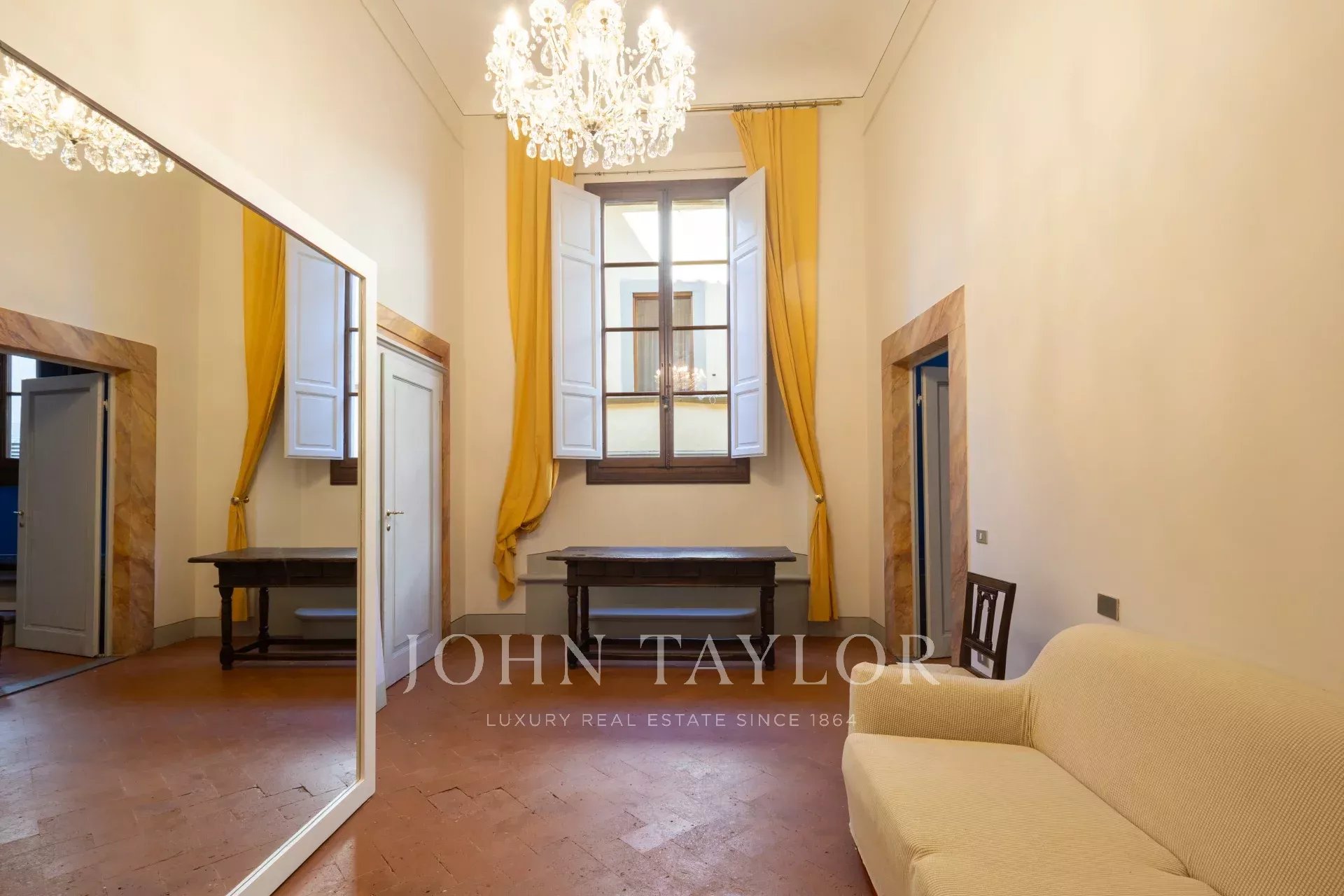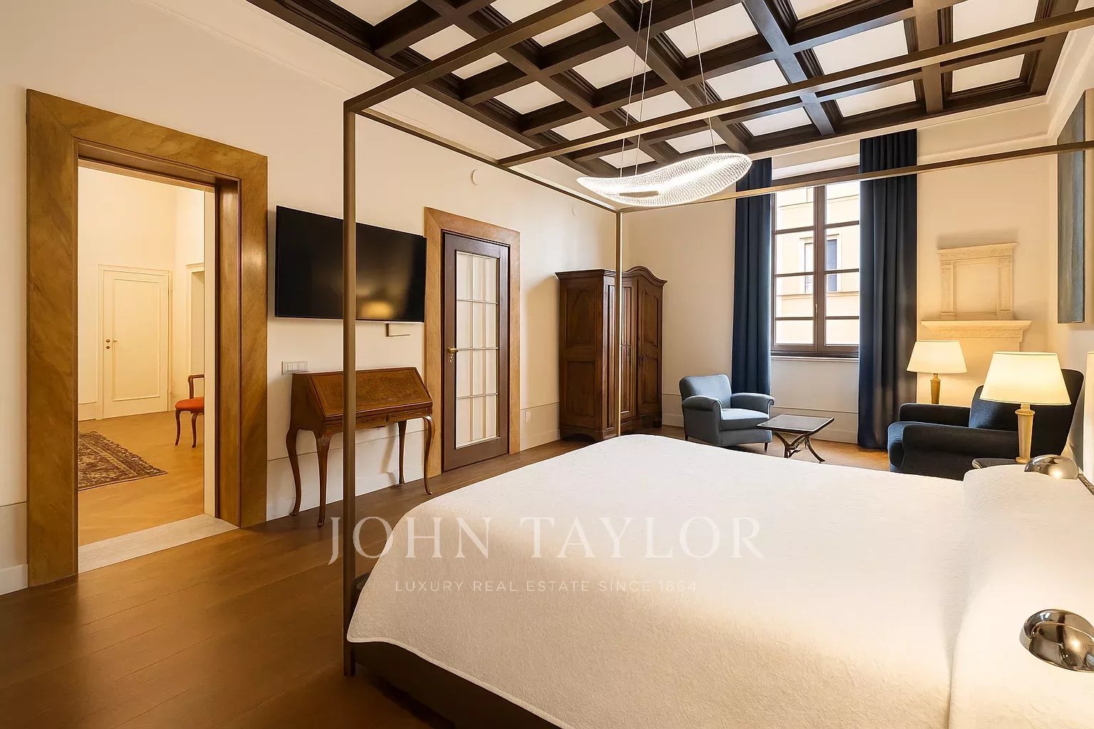 The apartment, partially furnished, is fully air-conditioned, and consists of a large reception hall from which one enters a spacious a living room with an antique fireplace and overlooking a courtyard, the dining room has large windows overlooking Via Santo Spirito.