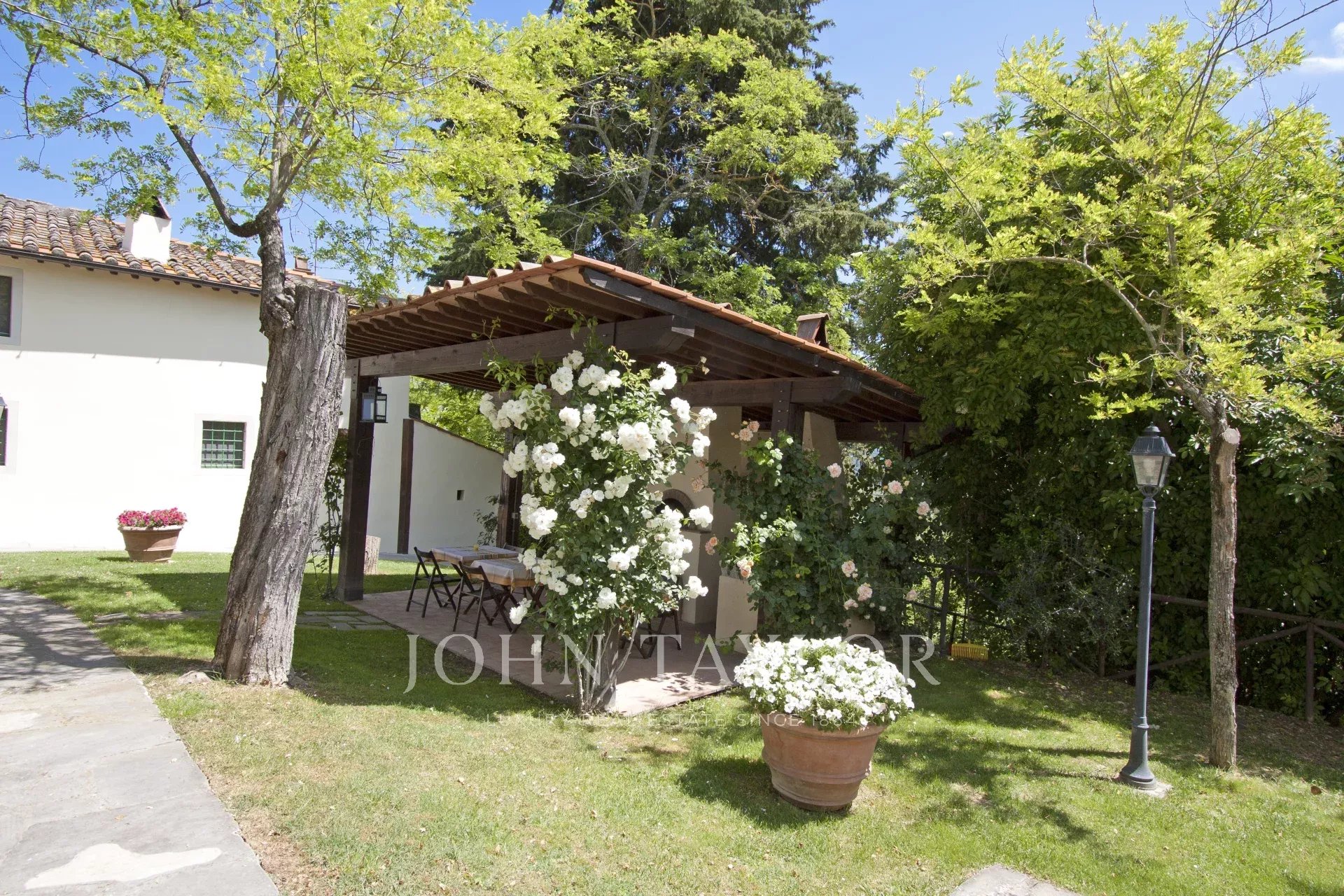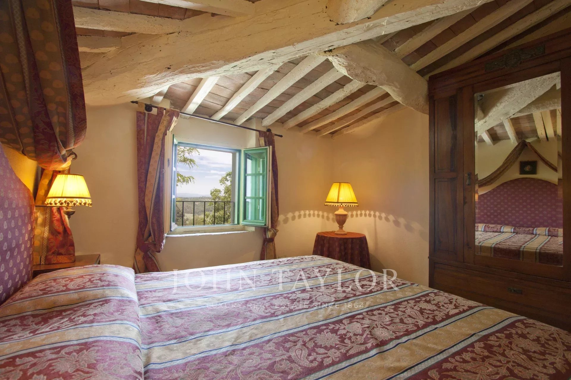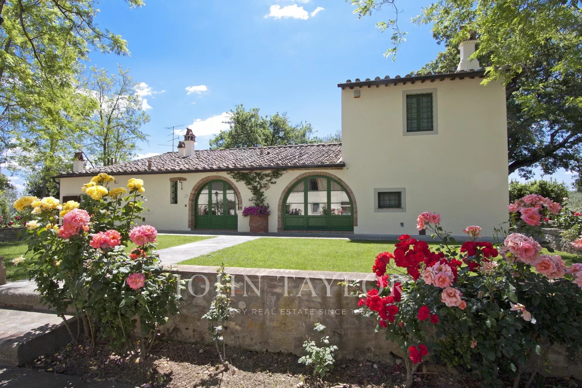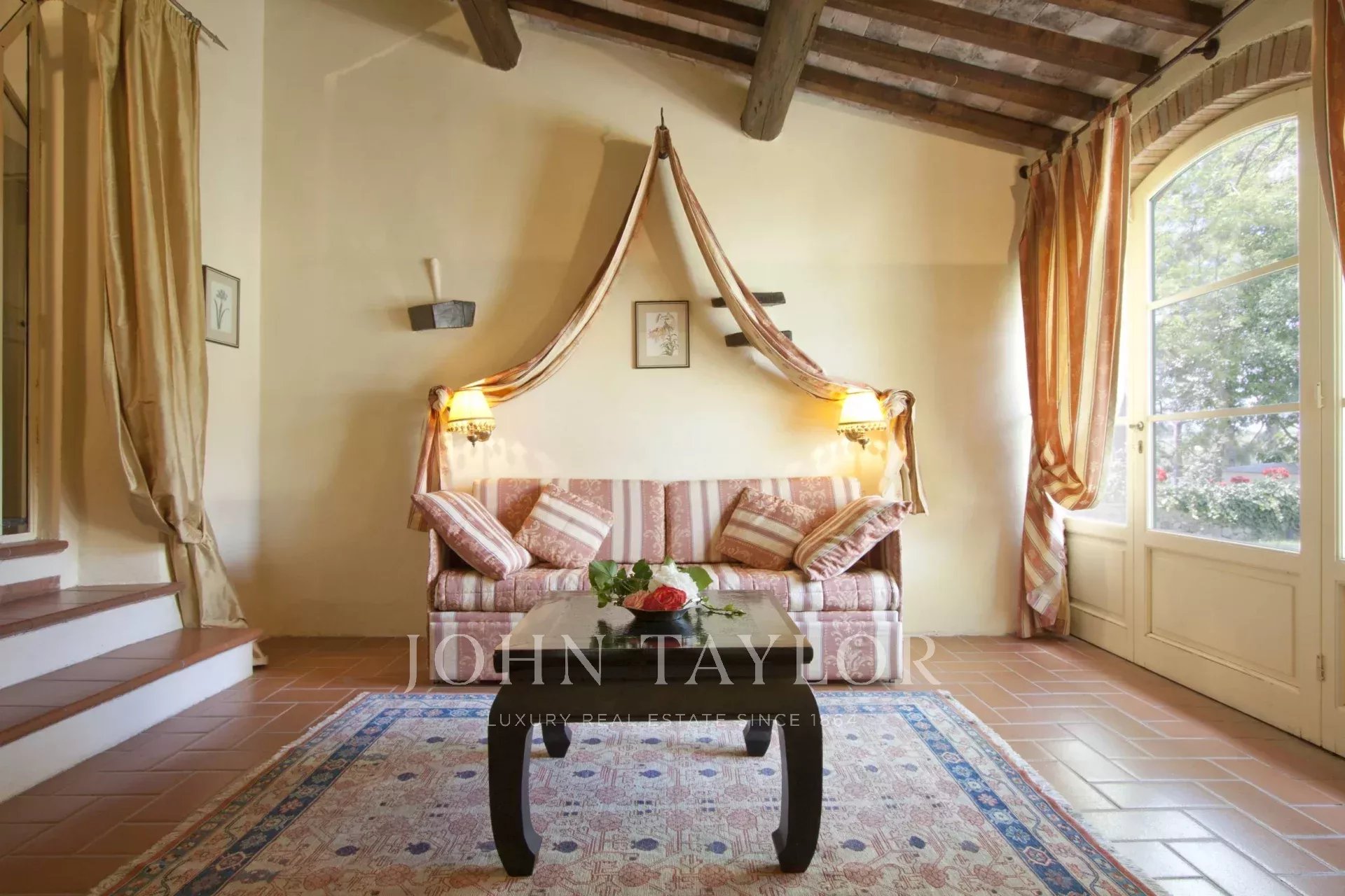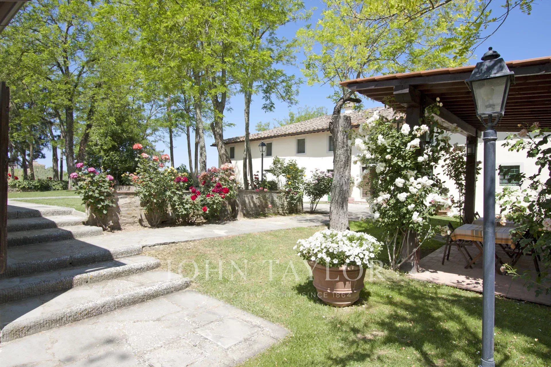 Located halfway between Florence and San Gimignano, on the road to Siena, the property is reached via approximately 1.5 km of a well-maintained gravel road. The estate extends over 13 hectares of fields and woodland, including a beautifully maintained garden of about 1,000 sqm with a swimming pool and a one-hectare vineyard.