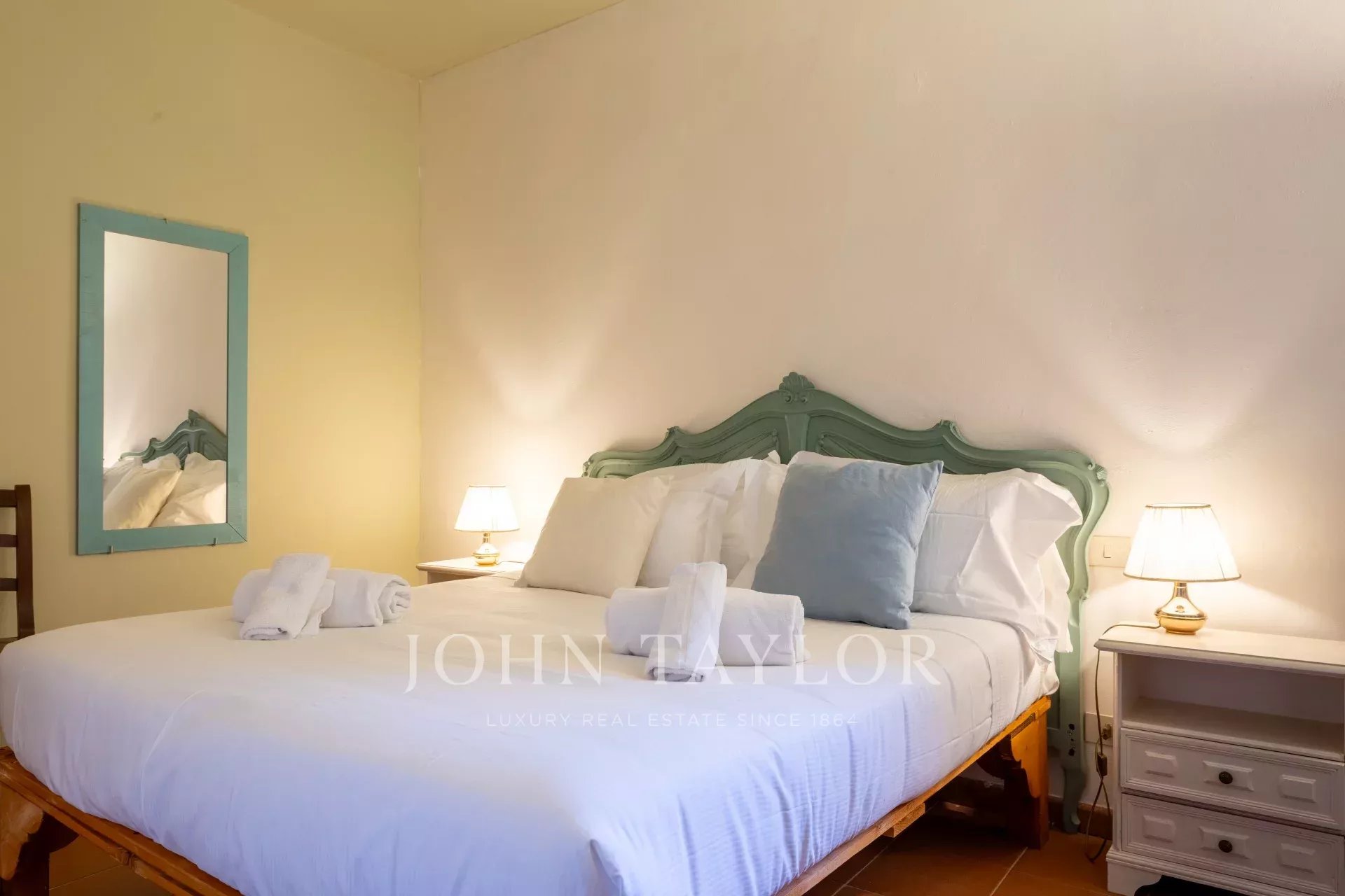 The villa offers breathtaking views of the valley, surrounded by olive groves and fruit trees. The interior features tasteful furnishings with valuable artworks and objects, providing a perfect blend of comfort and elegance for families and nature lovers.