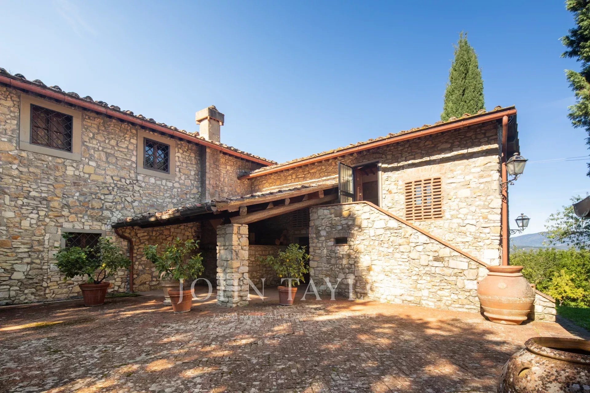 Immersed in the greenery of the Florentine hills, just a short distance from Florence, this elegant Tuscan farmhouse embodies all the charm and character of the local countryside. Surrounded by vineyards and olive groves, it offers an atmosphere of absolute peace and beauty, with panoramic views stretching across the surrounding landscape.