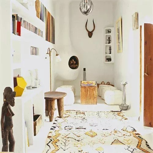 Boasting a 70 sqm footprint including, the Riad comprises on the ground floor a library connecting to a chill out room with fire place. Out in the courtyard is a rest area. The first floor comes with an open plan fitted kitchen/diner, a living space and a moulded bedroom with wetroom towards the back. The second floor features 2 double bedrooms sharing a large curved wetroom with skylight as well as a first roof-terrace with shaded dining. On the upper level is a bedroom with glass fronted doors folding out onto a private terrace.