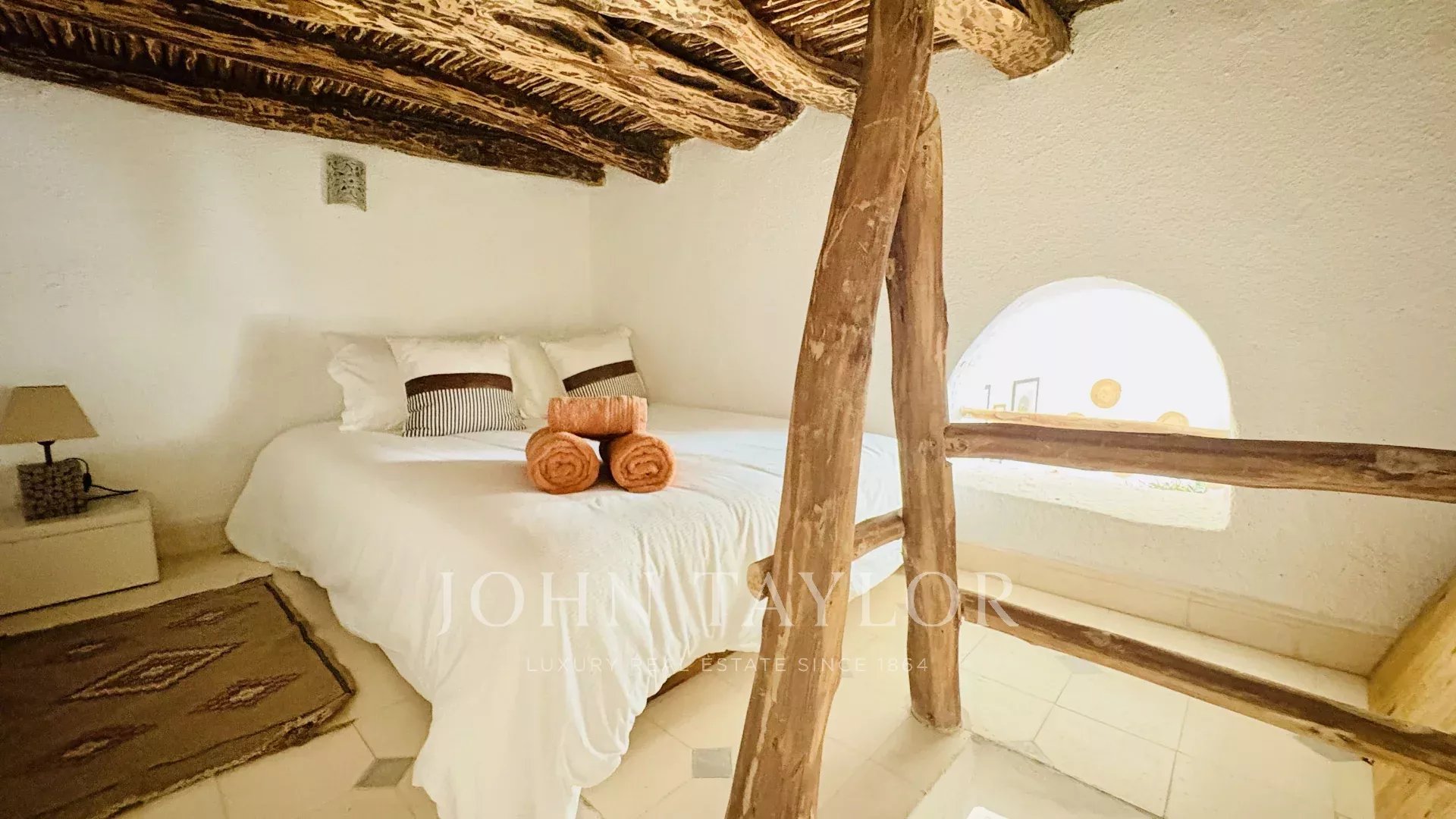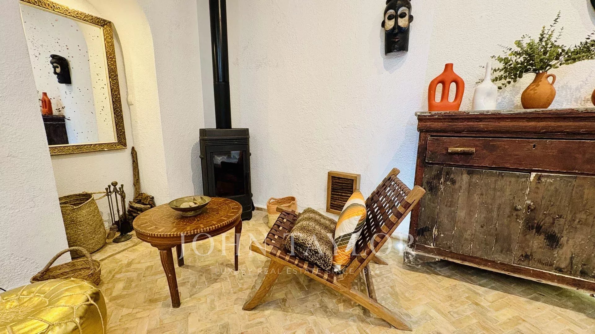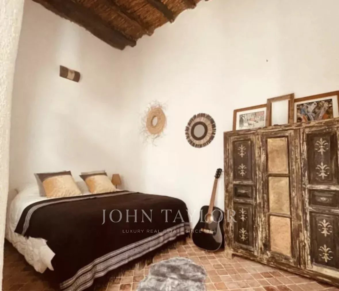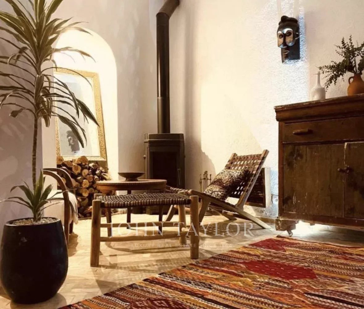 Boasting a 105 sqm footprint, it comprises on the ground floor around a lovely courtyard: a small kitchen, a lounge, a dining area with library as well as a 17 sqm studio and a bathroom. The first and second floors each come with 3 ensuite bedrooms.