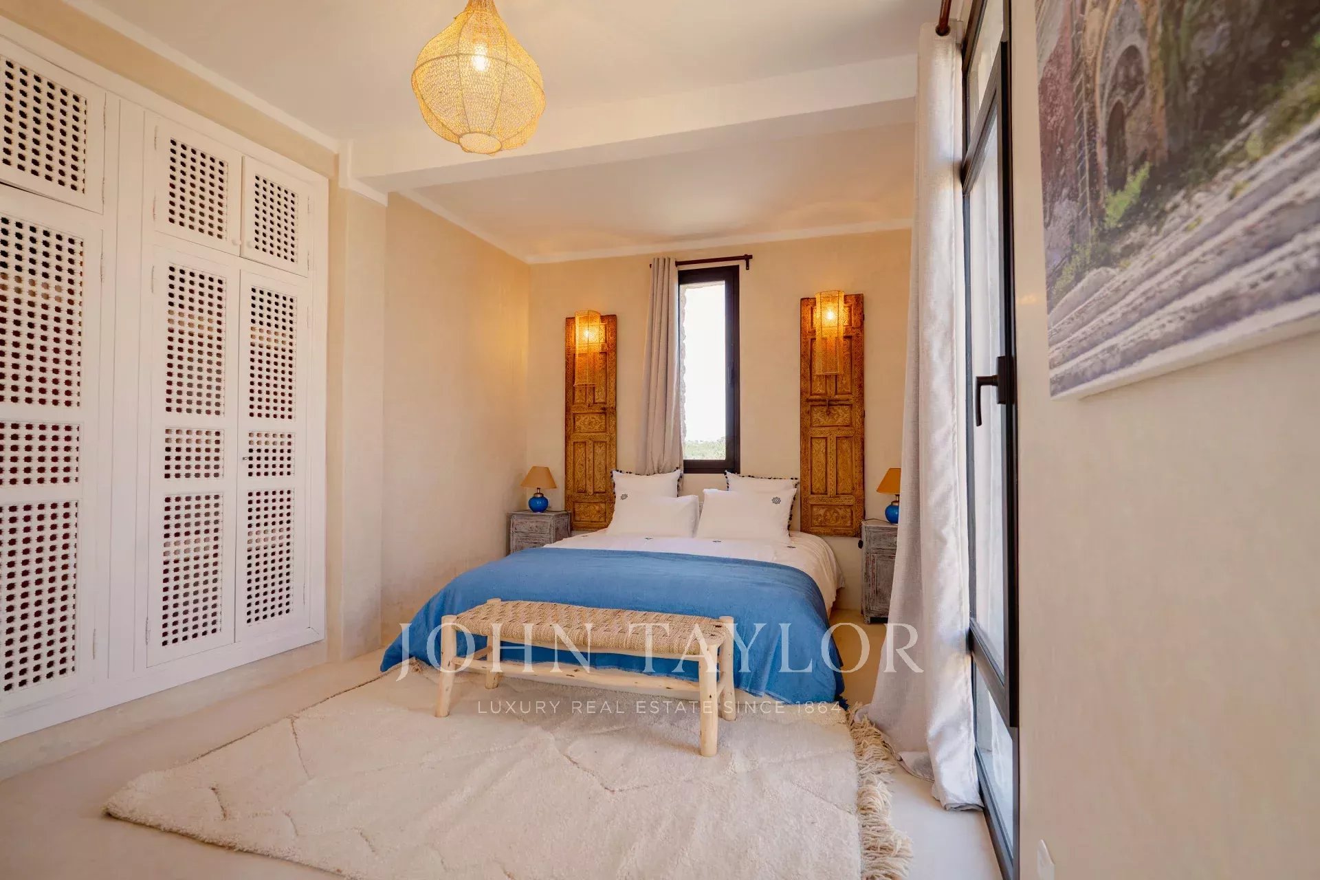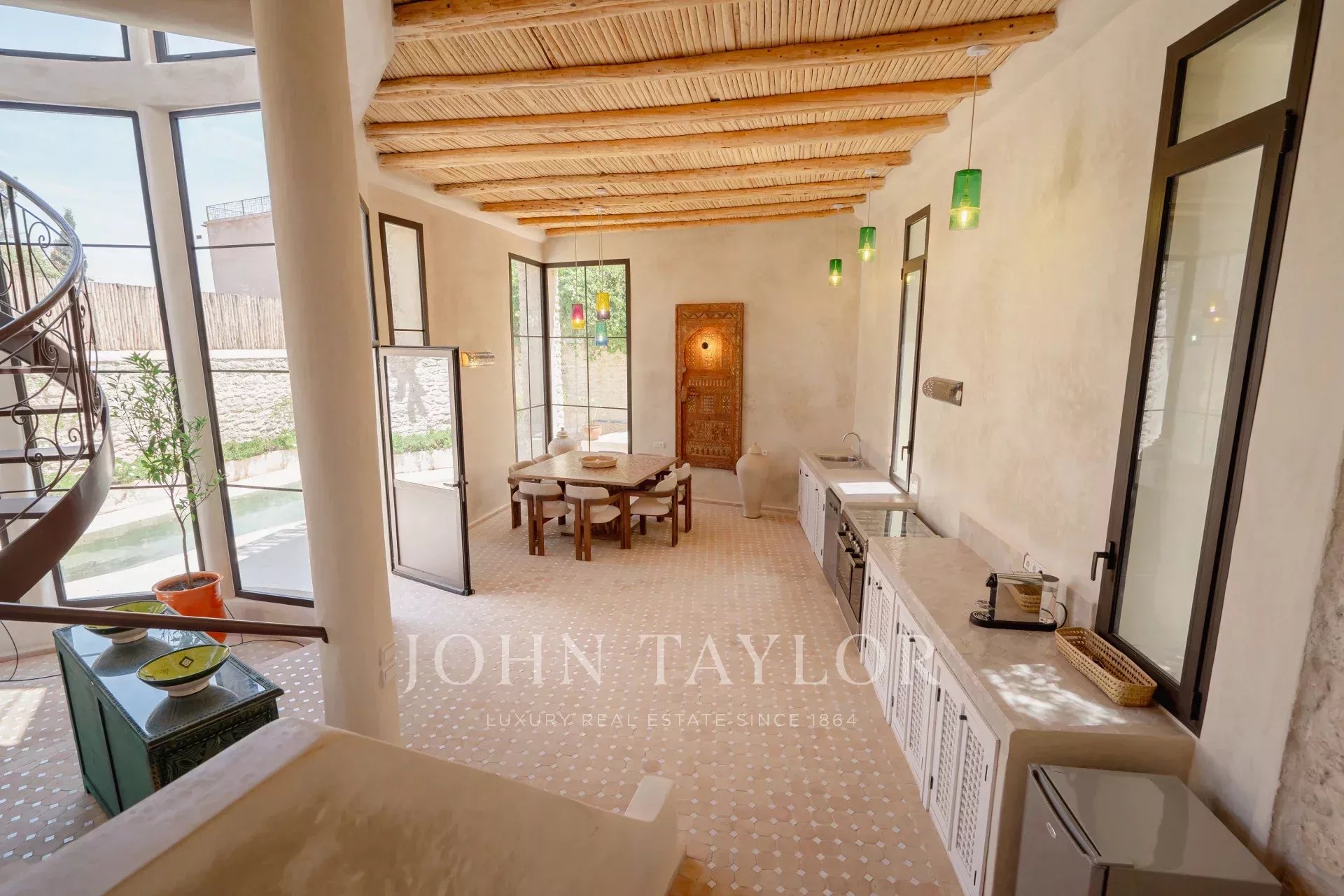 Located in a sought-after residential environment in Ghazoua, a mere 15 minutes from downtown Essaouira and 10 minutes from beaches, this elegant 4 bedroom villa combines modern comfort, space and serenity. Located on a plot of 452 m2, it is in an urban area which is a major asset for foreign buyers: the VNA is not required.