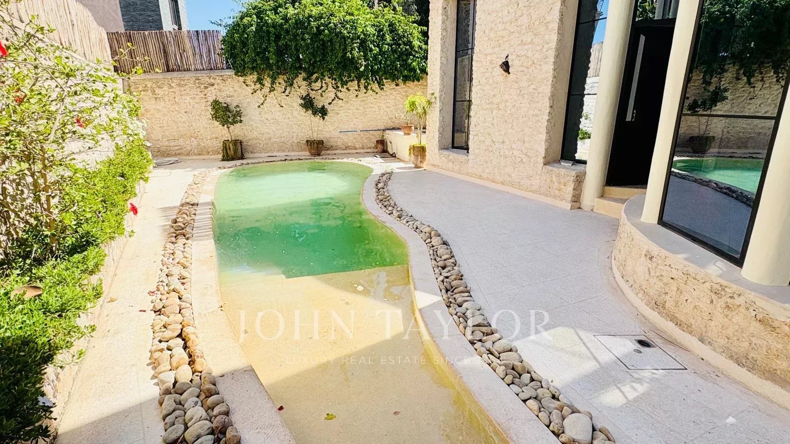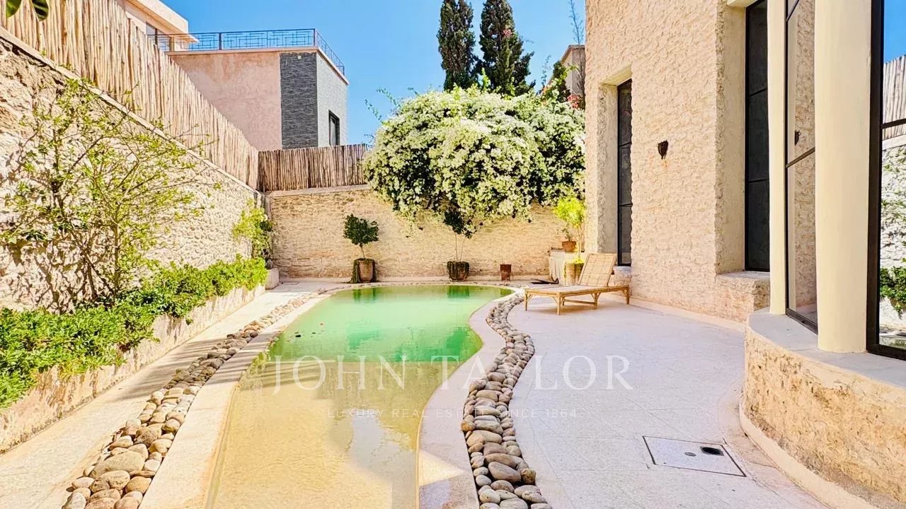 The landscaped garden hosts a private pool and its pool-house, offering a harmonious living environment, blending refined interior and friendly exterior.