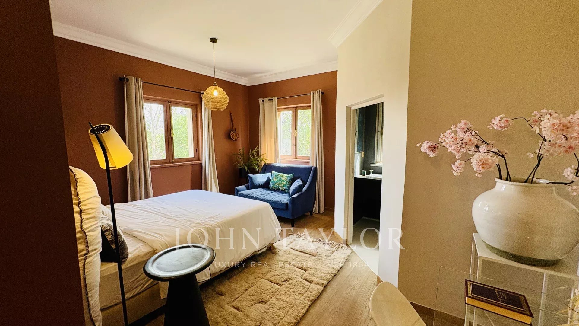 The main house built with stones comprises over 2 levels: large living areas, a veranda with bar and fireplace, a fitted kitchen and 5 ensuite bedrooms one of them a master with superb views.