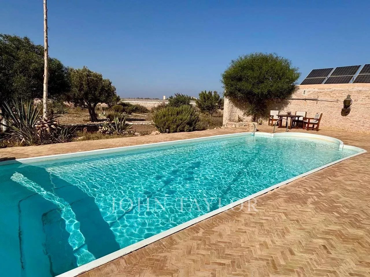 Built on a nicely landscaped 11 000 sqm garden hosting a swimming-pool, it boasts a 340 sqm internal size combining the main house, a bungalow and an outbuilding.