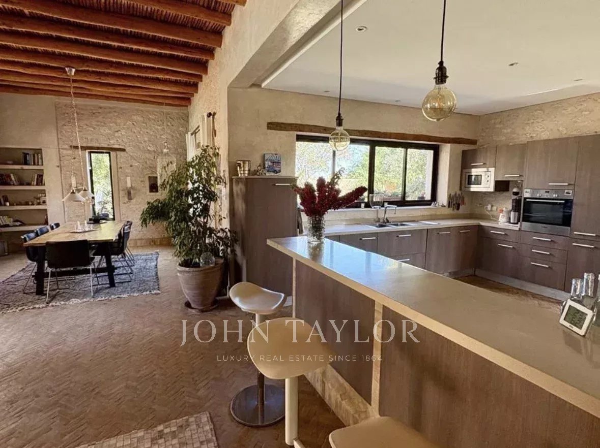 The house comprises on the ground floor: a large and airy living-room with fireplace opening onto the pool, a dining area, a modern fitted kitchen, a guest loo and a first ensuite bedroom. The first floor comes with 2 other ensuite bedrooms.