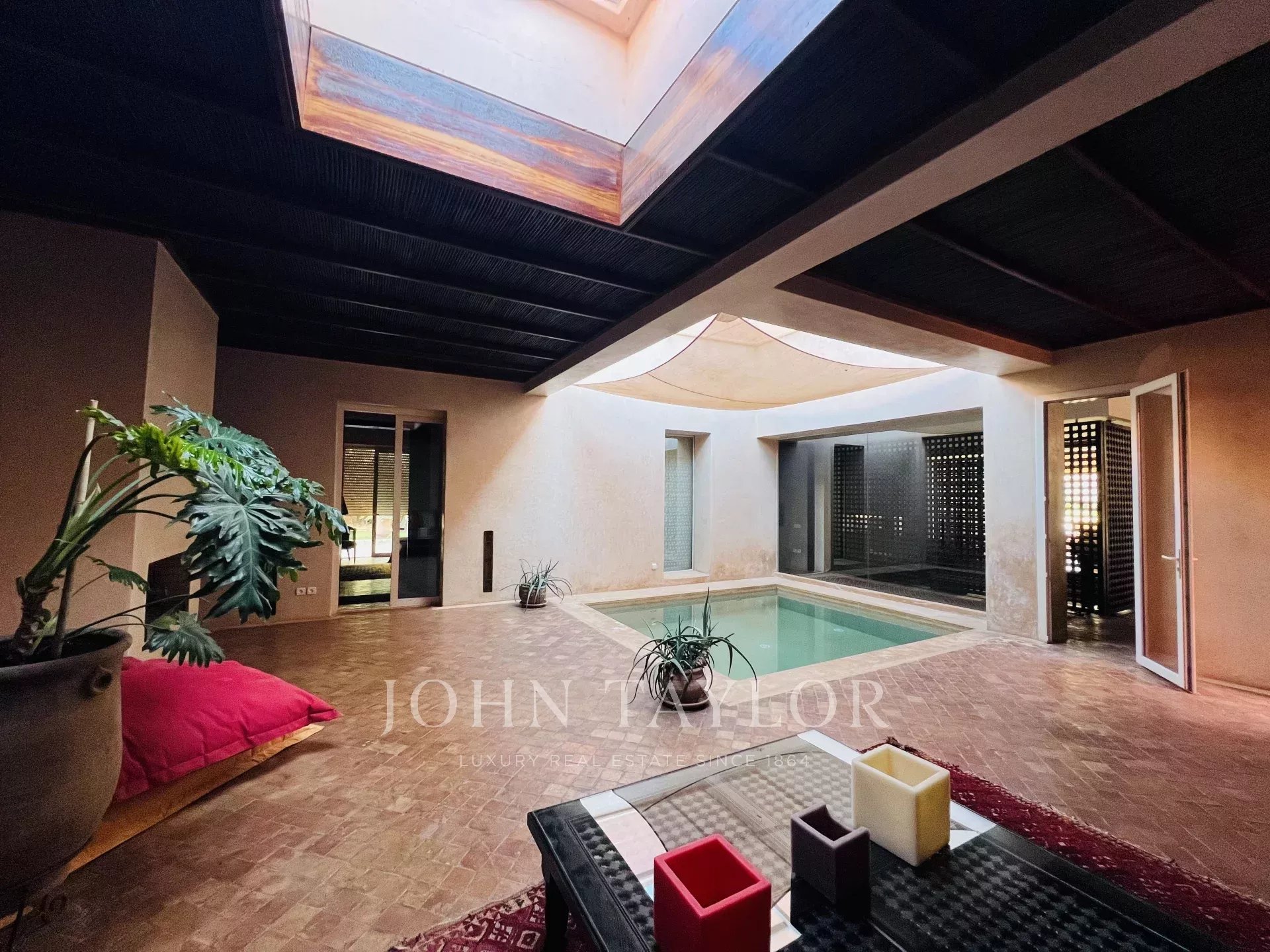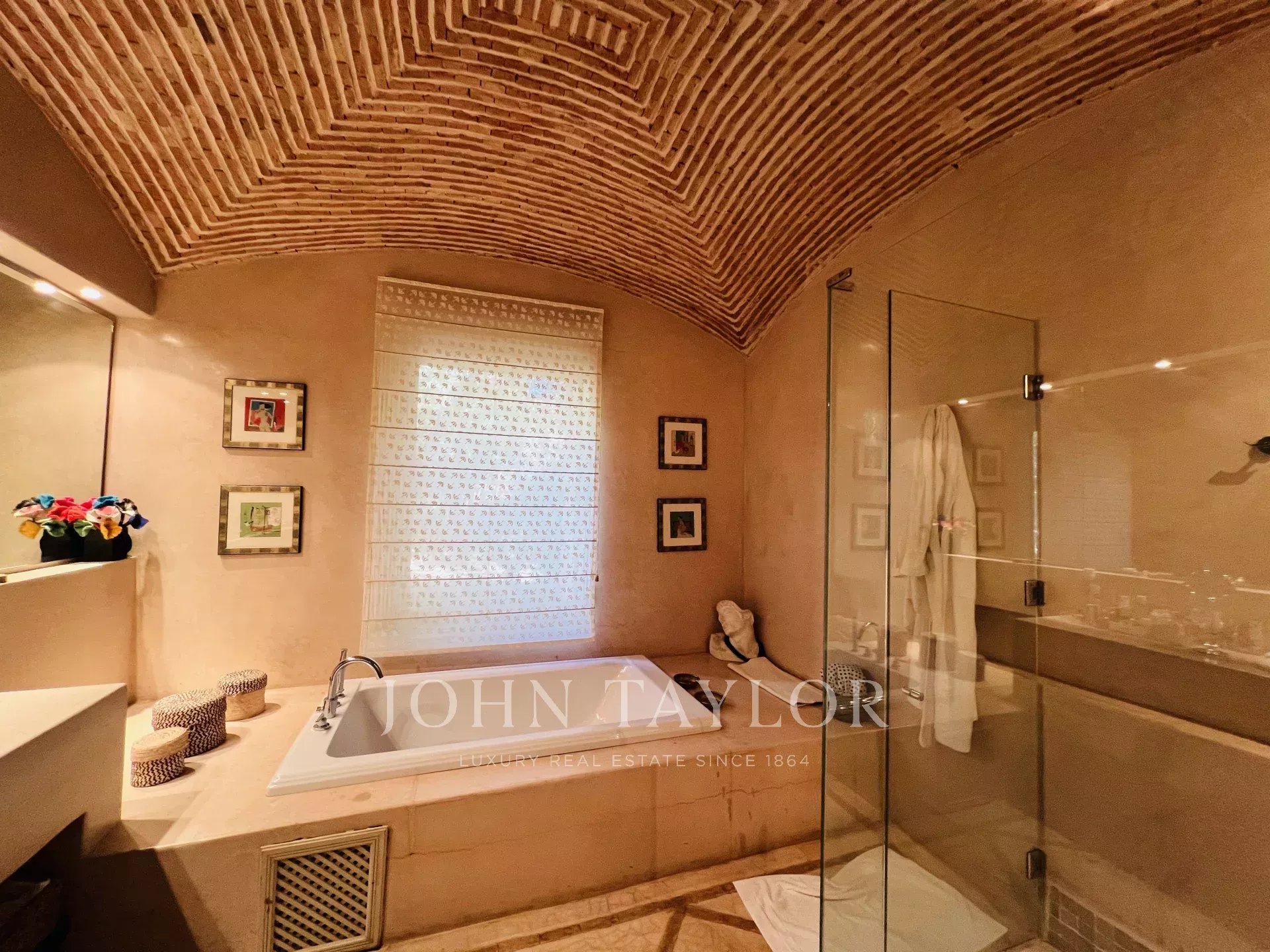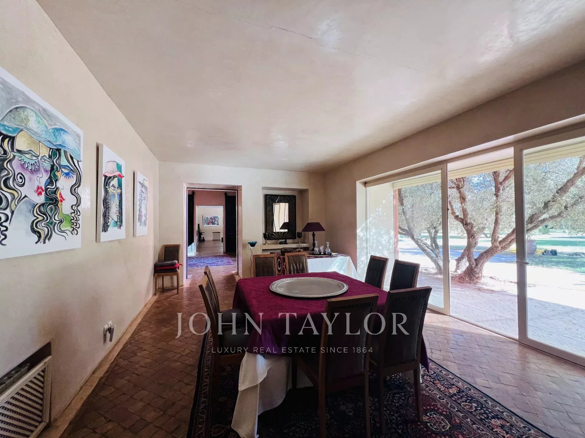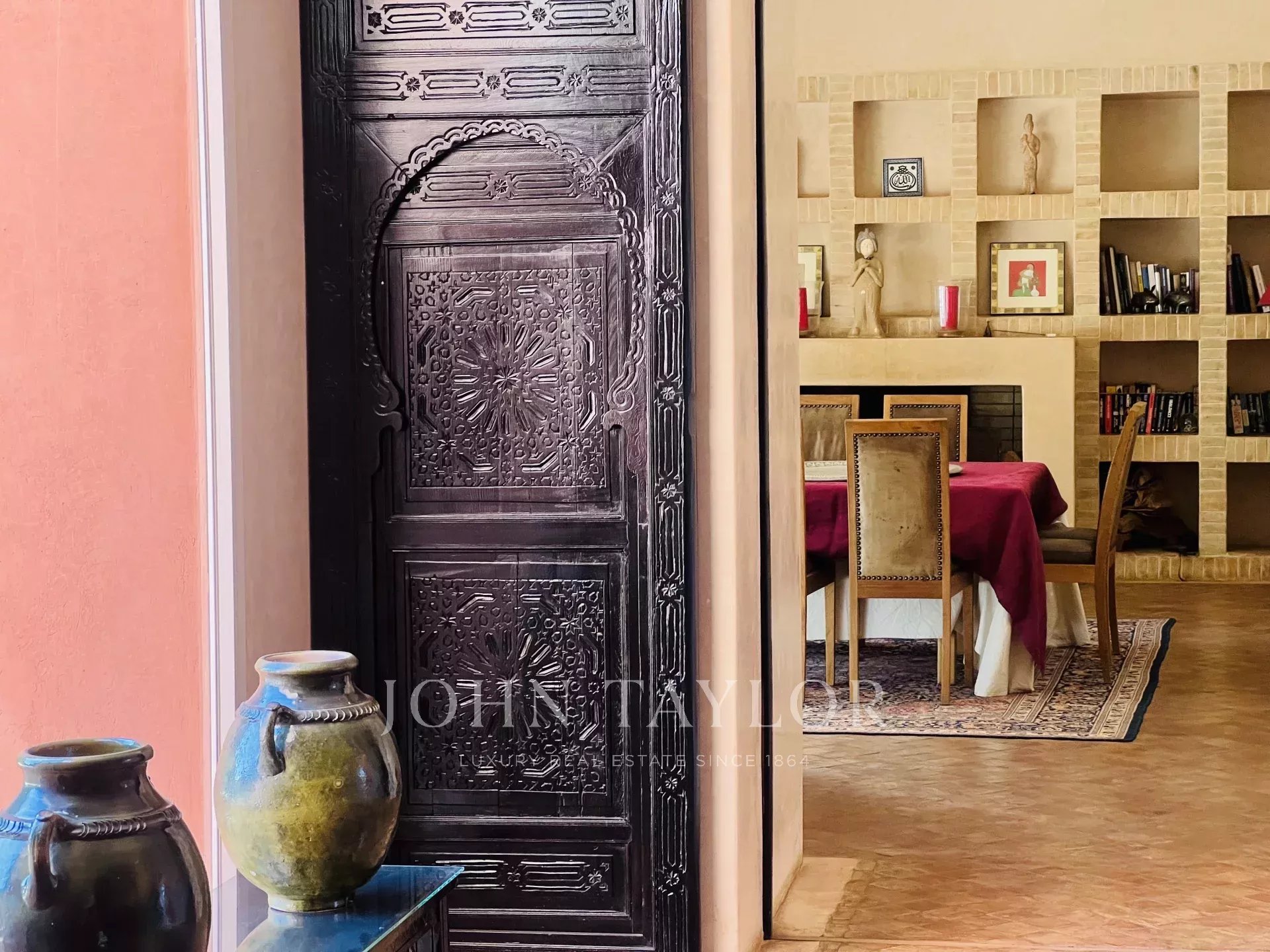 This property nestled among olive trees is enviably located a mere 10km from downtown Marrakech. The views of the Atlas Mountains are a spectacular backdrop, seen from rooms, garden and terrace.
