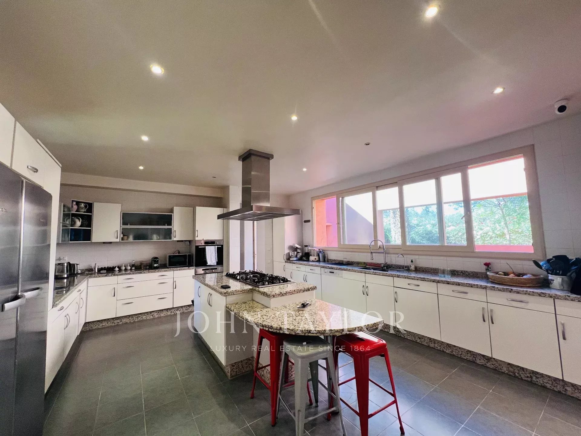 Set in a 6 000 sqm nicely manicured park hosting a caretaker’s house, a substantial 25 meters swimming-pool and a shaded parking, the villa boasts an impressive 950 sqm living area.