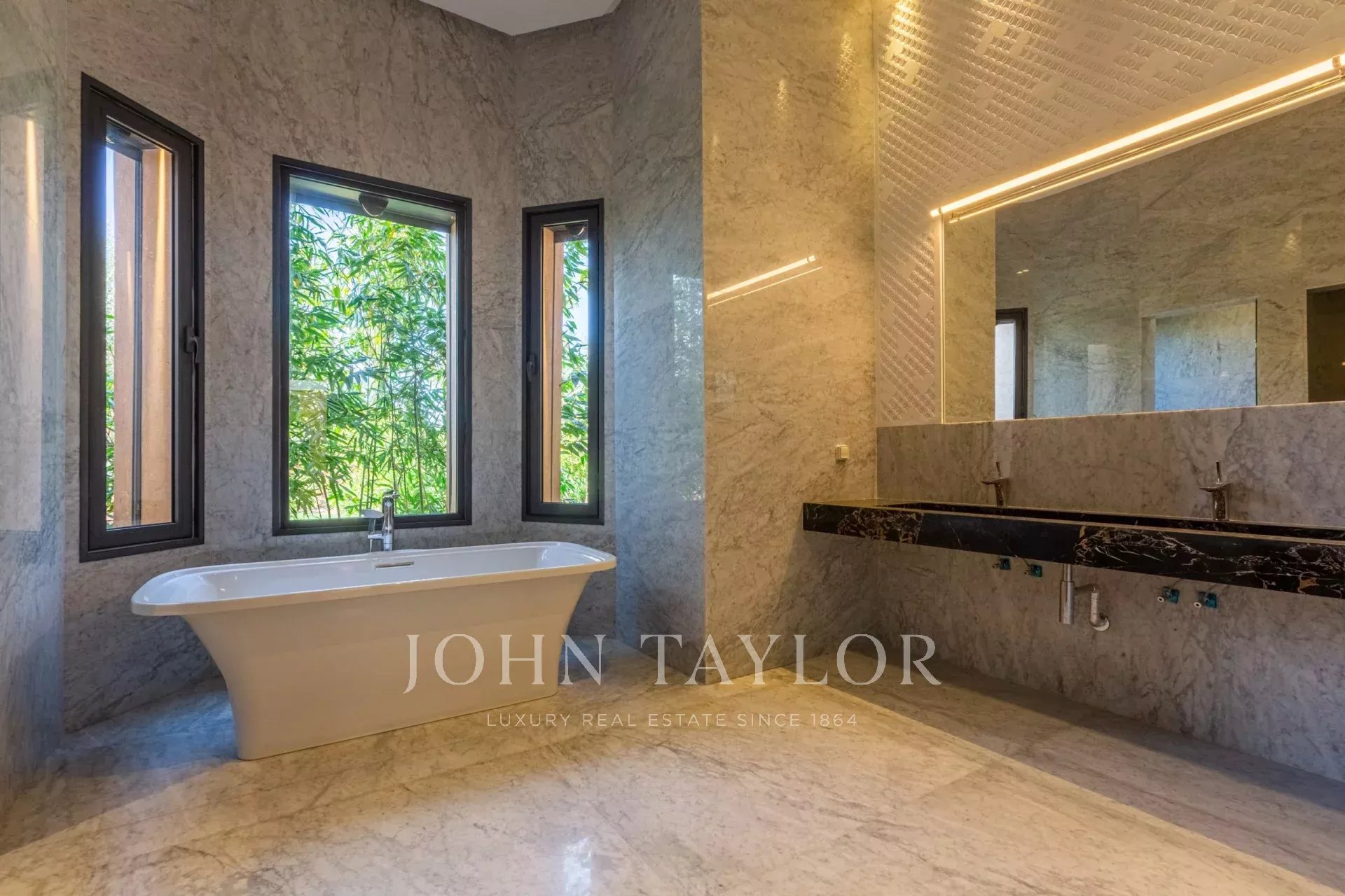 Set on a beautifully landscaped 5 700 sqm plot, the grounds include the villa with modern lines recently completed, a substantial swimming-pool as well as a full spa combining a hammam, a fitness and a room for treatments.