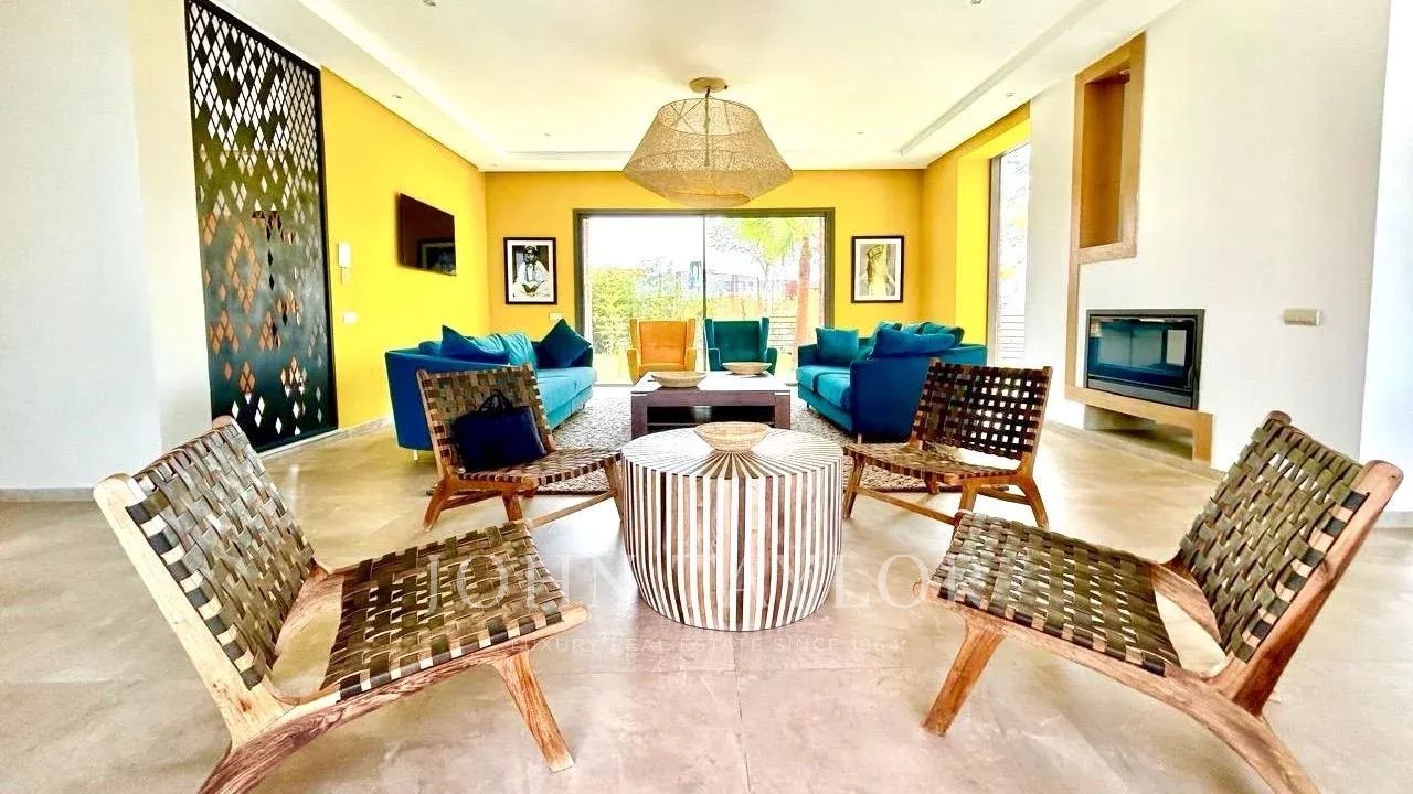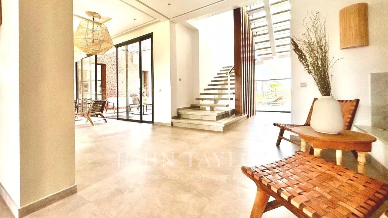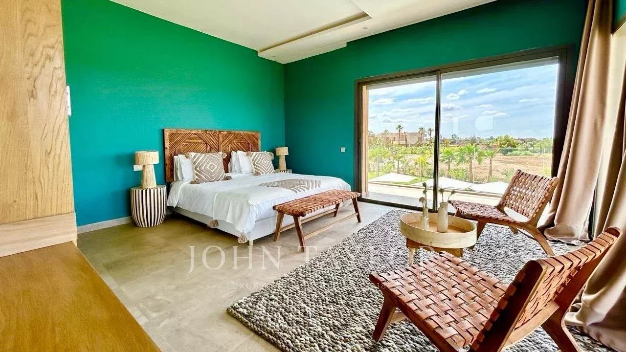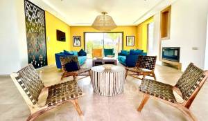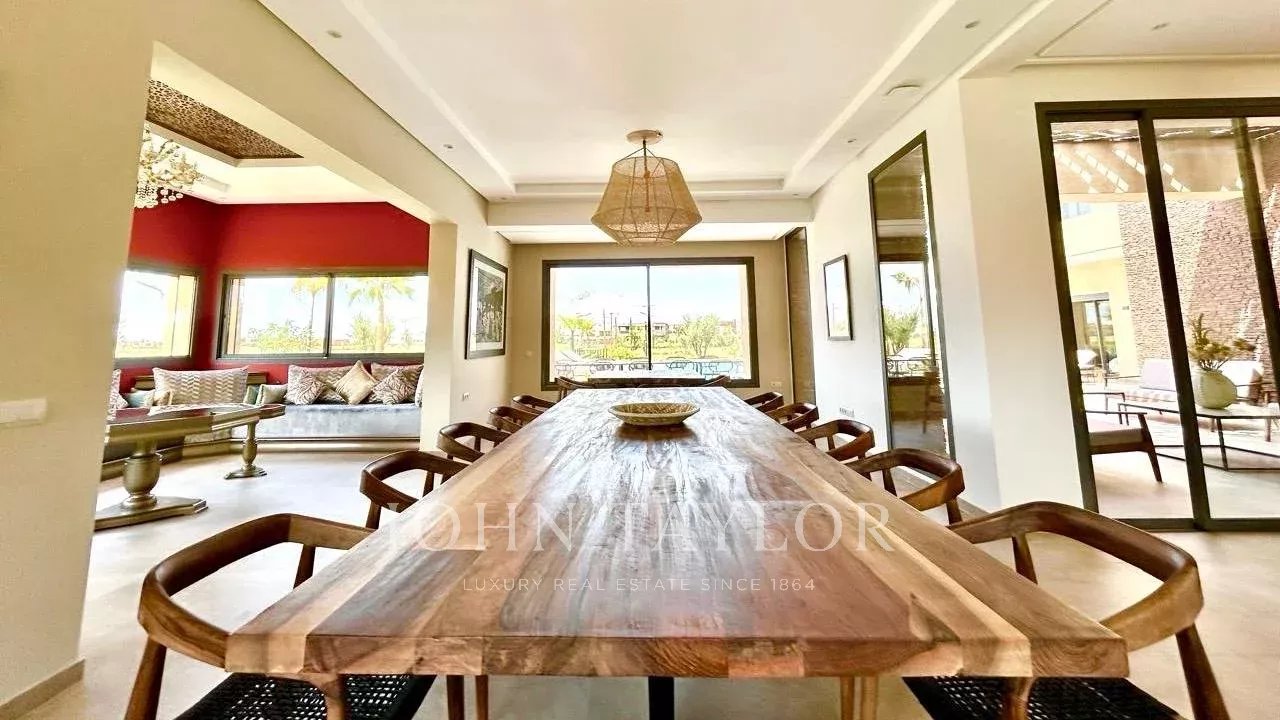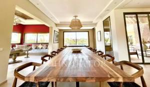 The 2 floors come with reception areas including an entrance with guest loo, a dining-room and 2 lounges, 7 ensuite bedrooms including a master as well as a kitchen. The terrace delights with superb views over the golf course and the Atlas mountains.