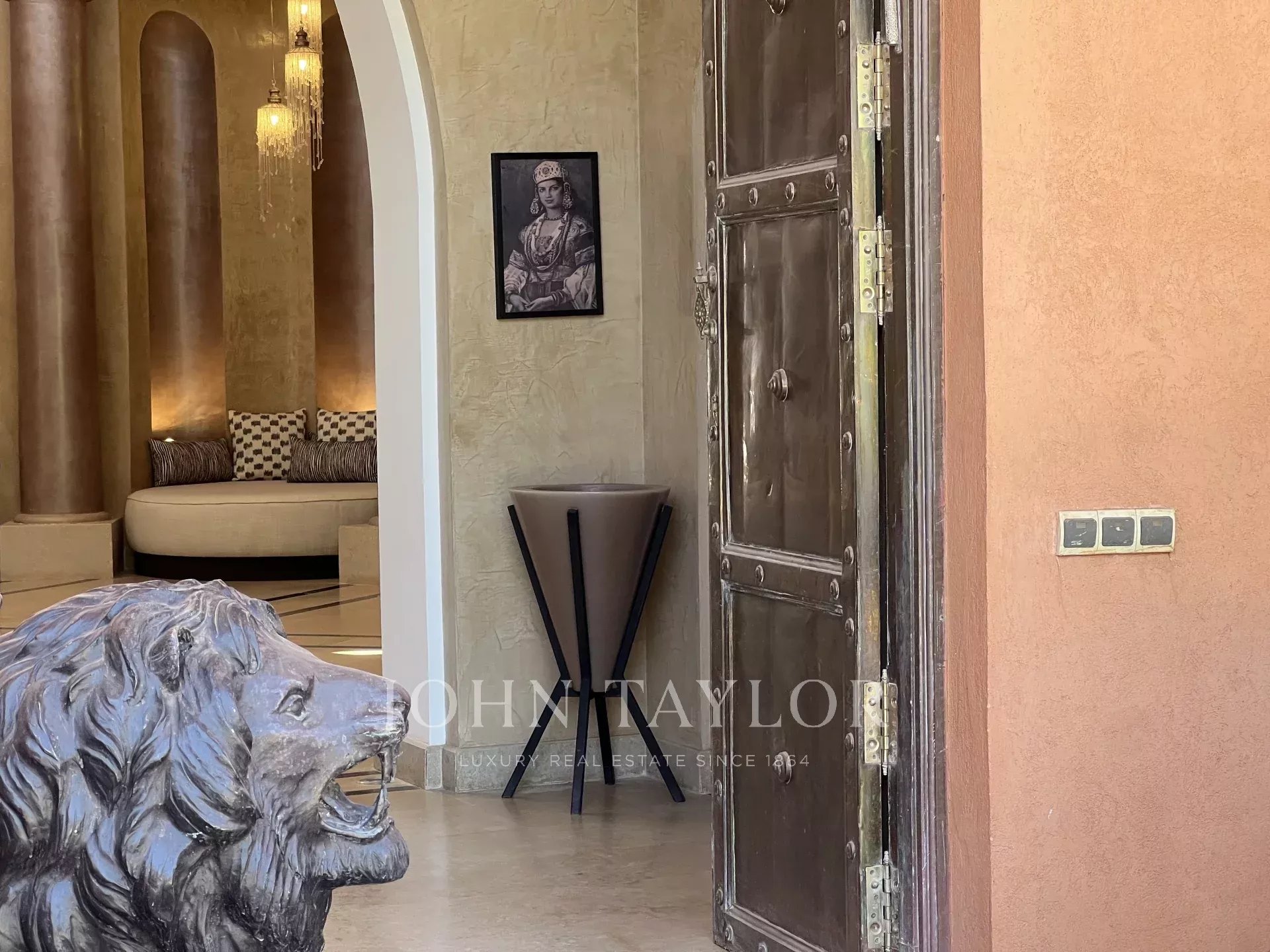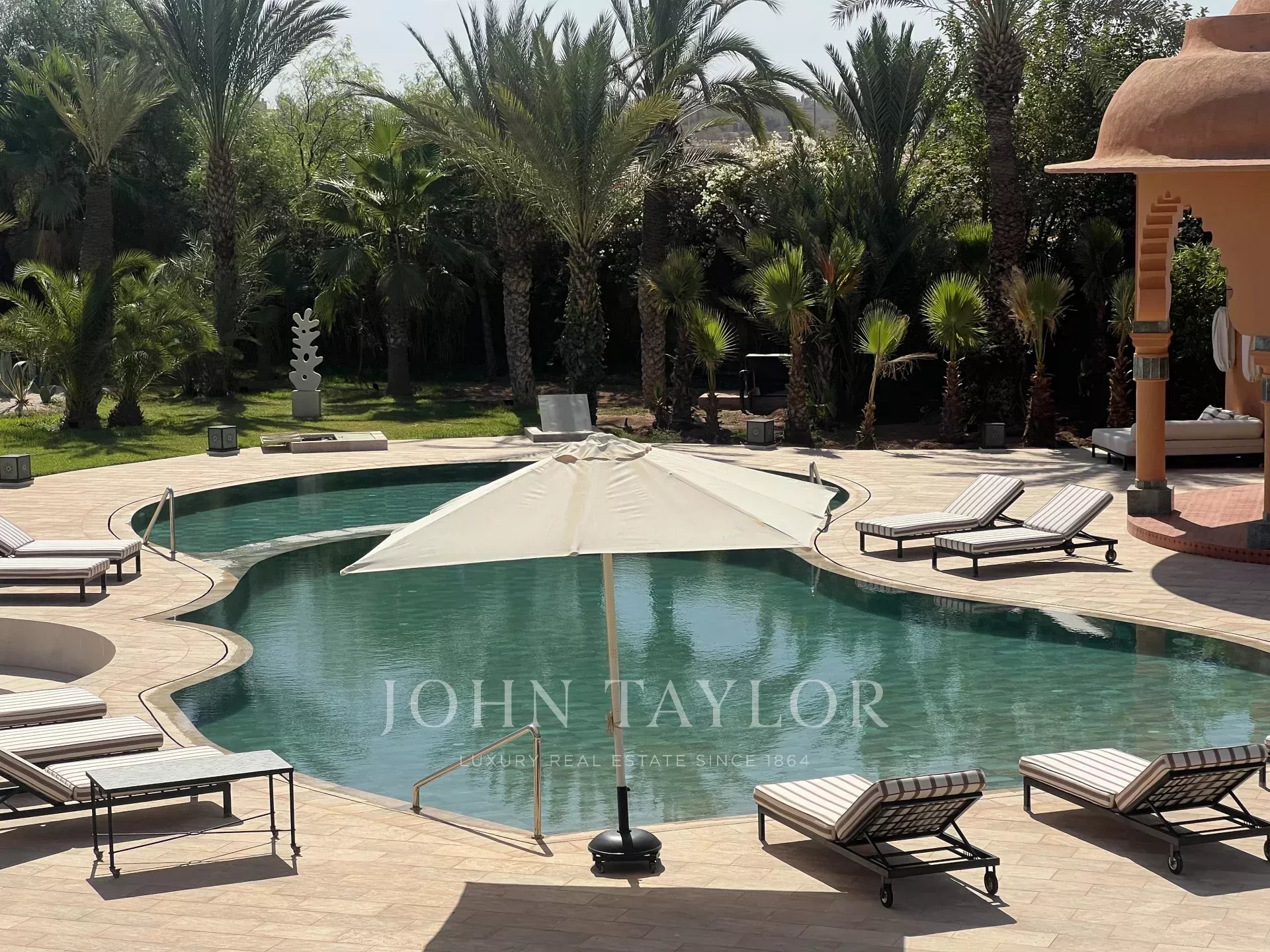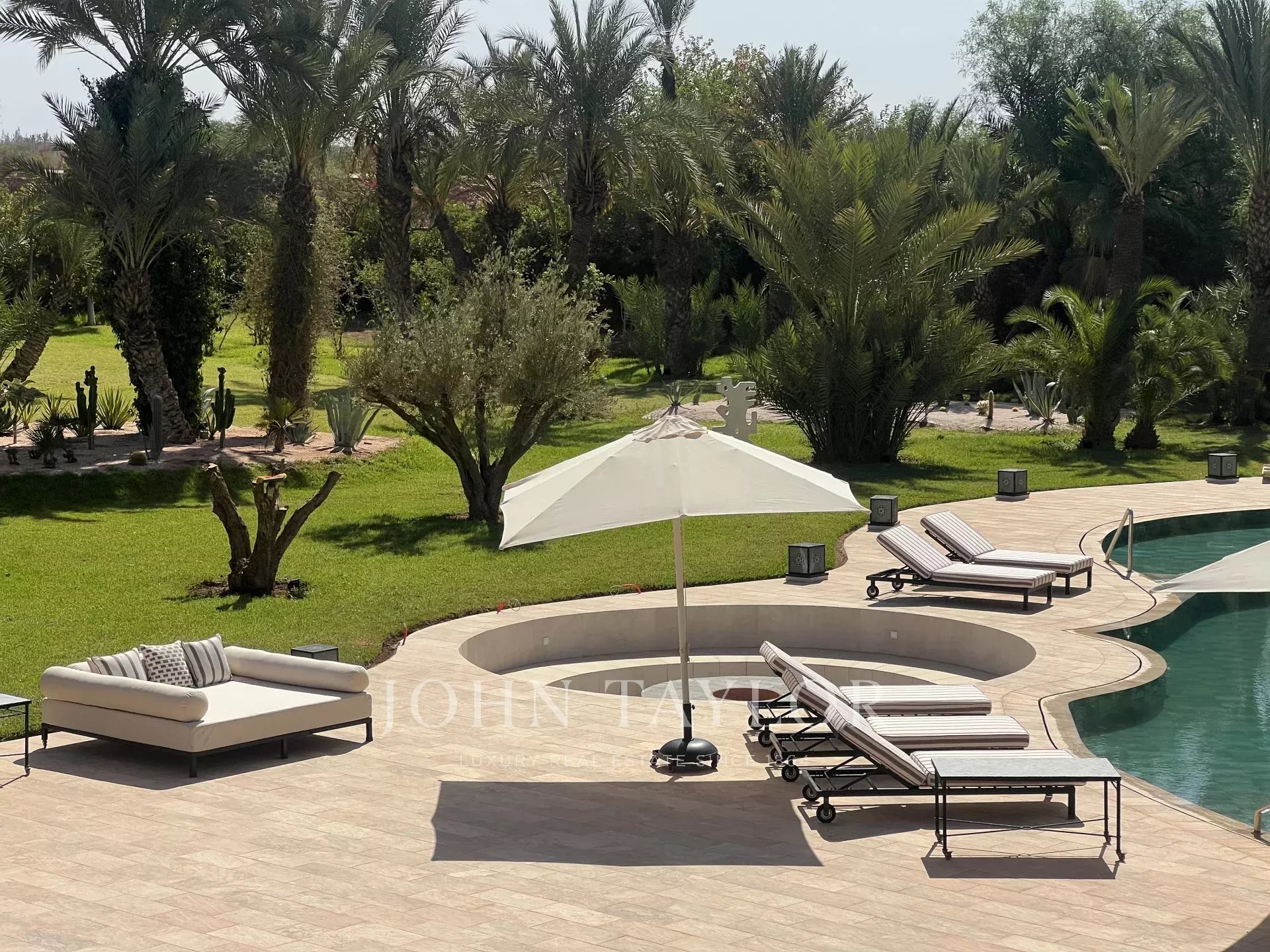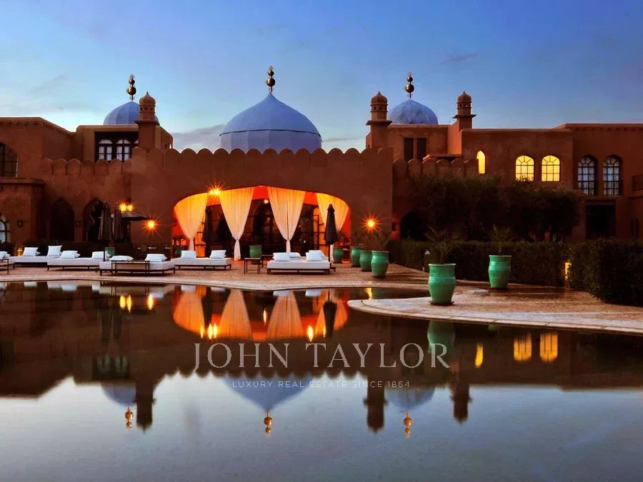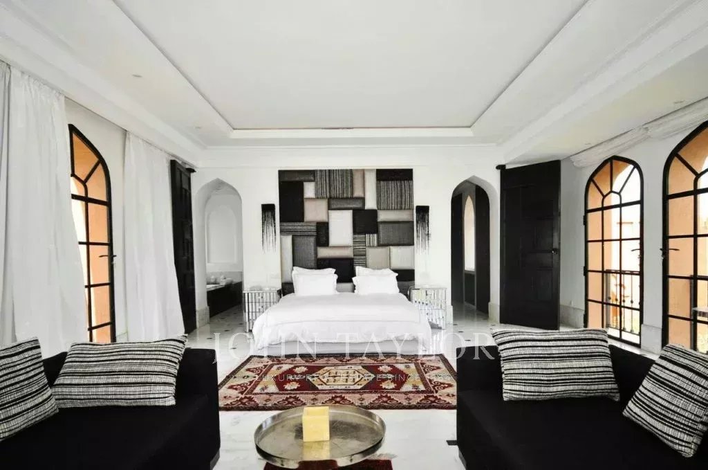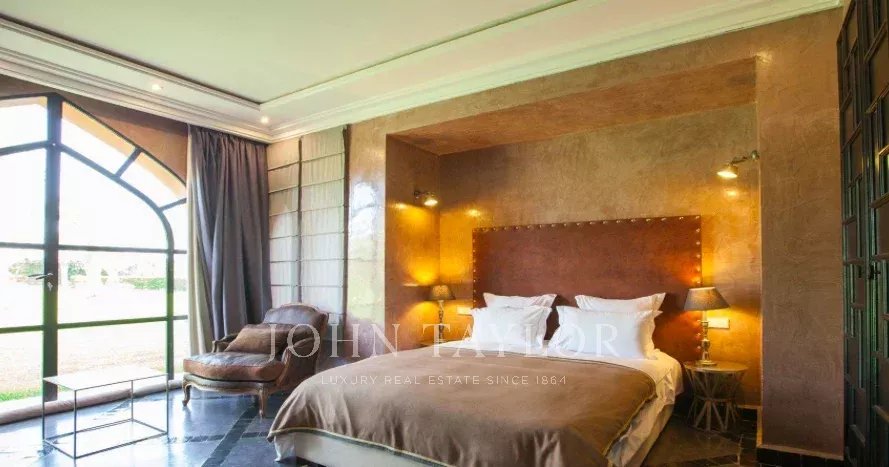 This prestigious, light-filled property is set in 1 ha of splendid landscaped grounds in a sought-after area of the Palmeraie, 20 minutes from downtown Marrakech.