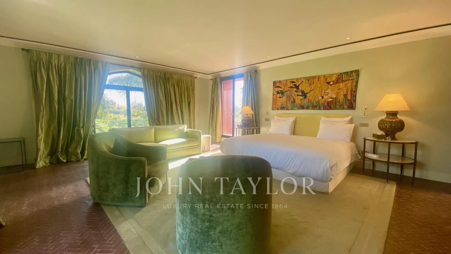 This property is enviably located in an exclusive gated community with golf course less than 15 minutes from downtown Marrakech.